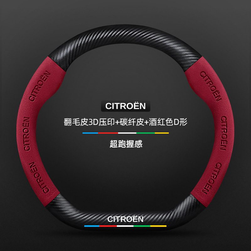 • 스웨이드 3D 엠보싱 + 탄소섬유 가죽 + 버건디 D자형 + 라벨 없음 [뉴 D자형] [시트로]