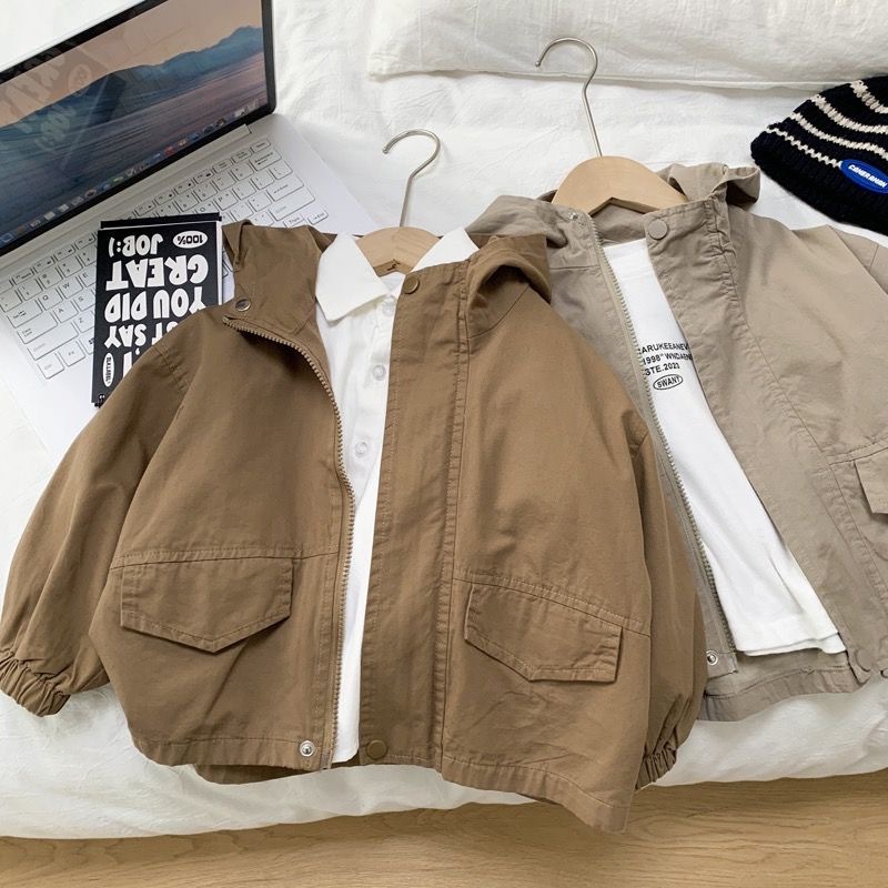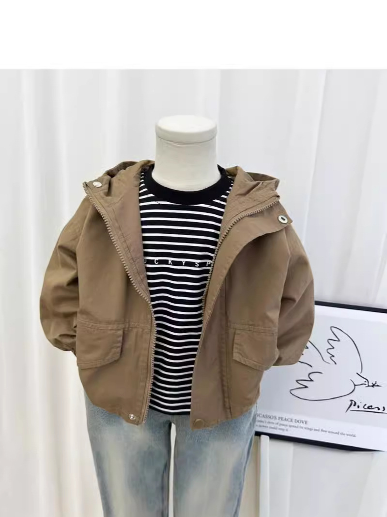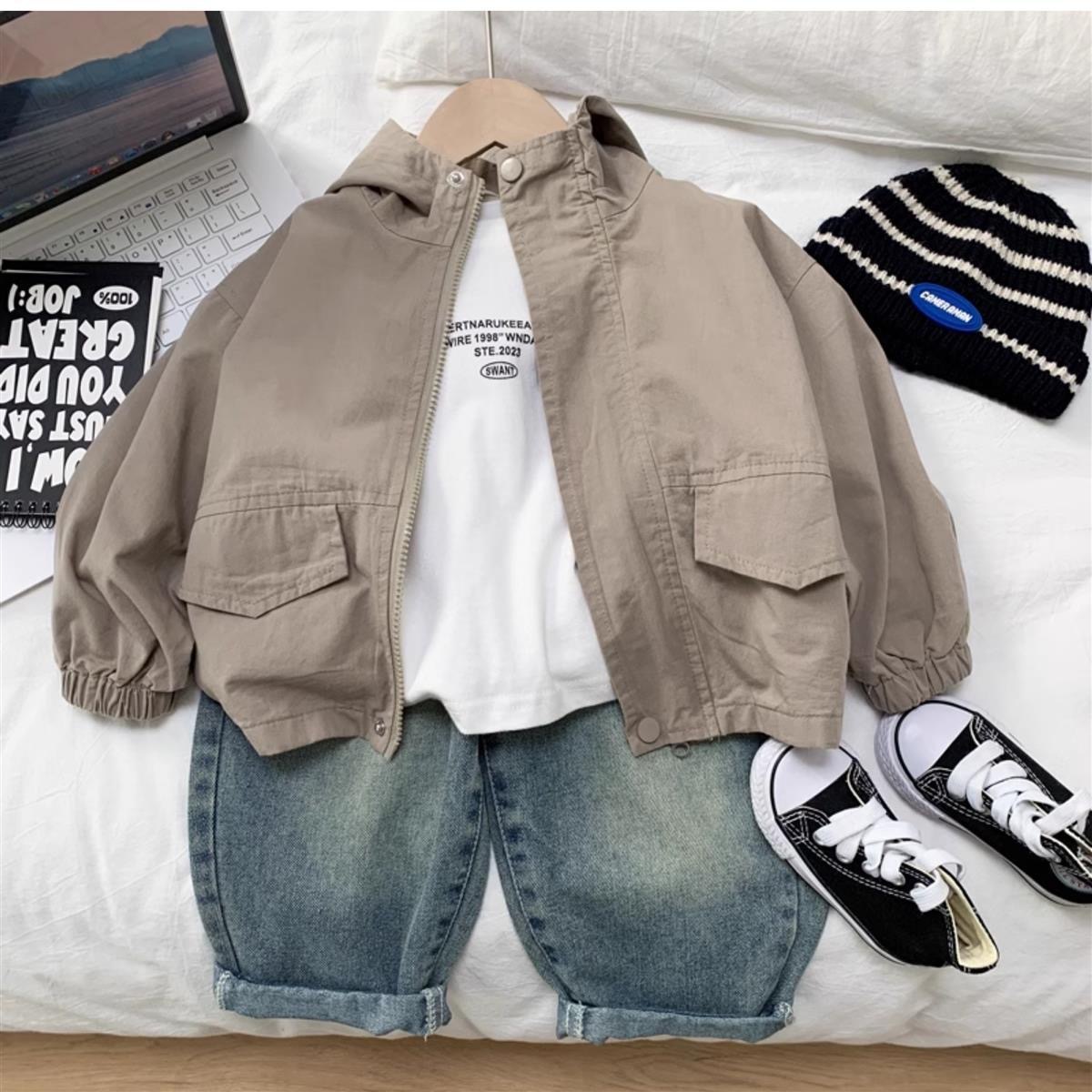 소년 '후드코트 봄과 가을 코트 2024 새로운 한국 스타일 아동면 단색 캐주얼 탑 카디건 서양식스토어 가기