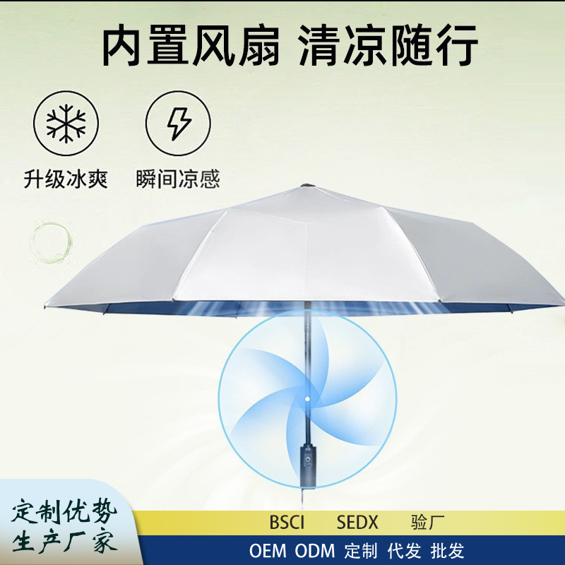 팬이 있는 우산, 충전식, 접이식, 휴대용, 차양, 자외선 차단, 냉각, 자외선 차단, 맞춤형 로고가 있는 태양 우산스토어 가기
