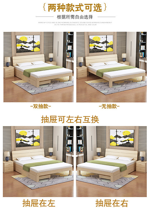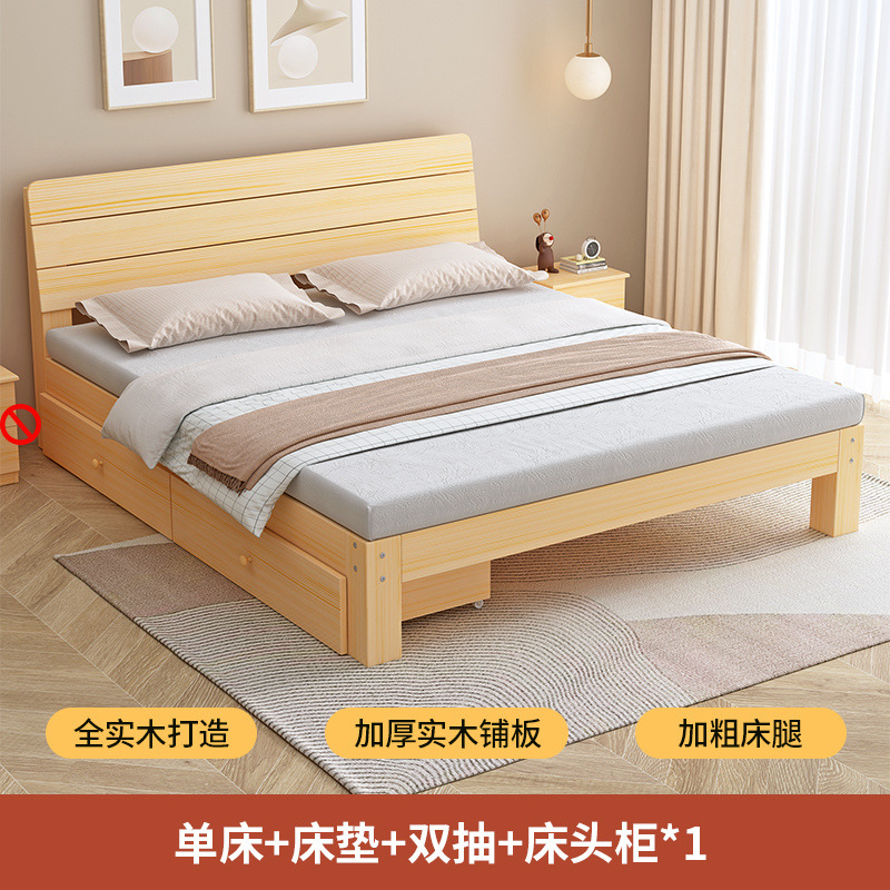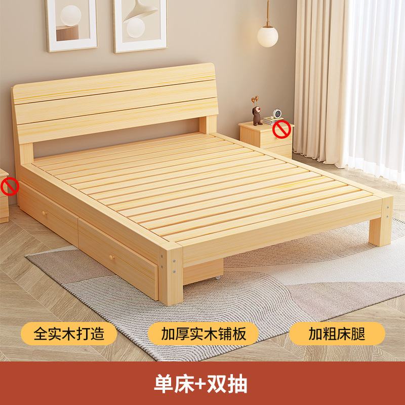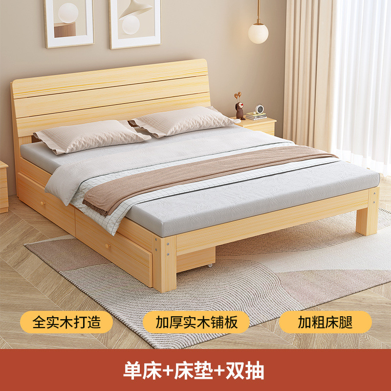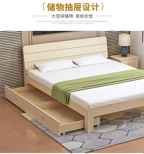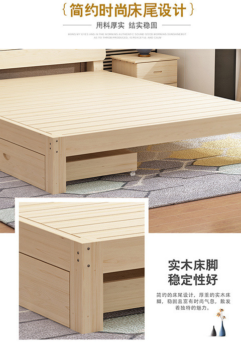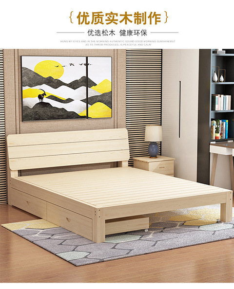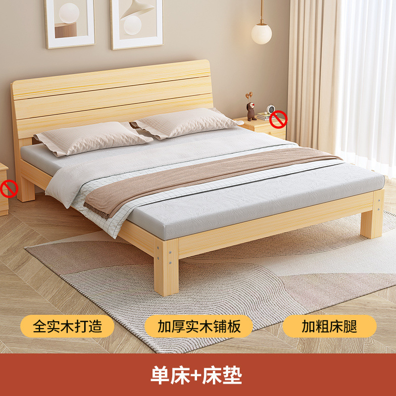 단단한 나무 침대 1.8 m 소나무 더블 침대 1.5 m 경제적 인 임대 방 침대 현대 간단한 1 m 2 싱글 침대 프레임스토어 가기