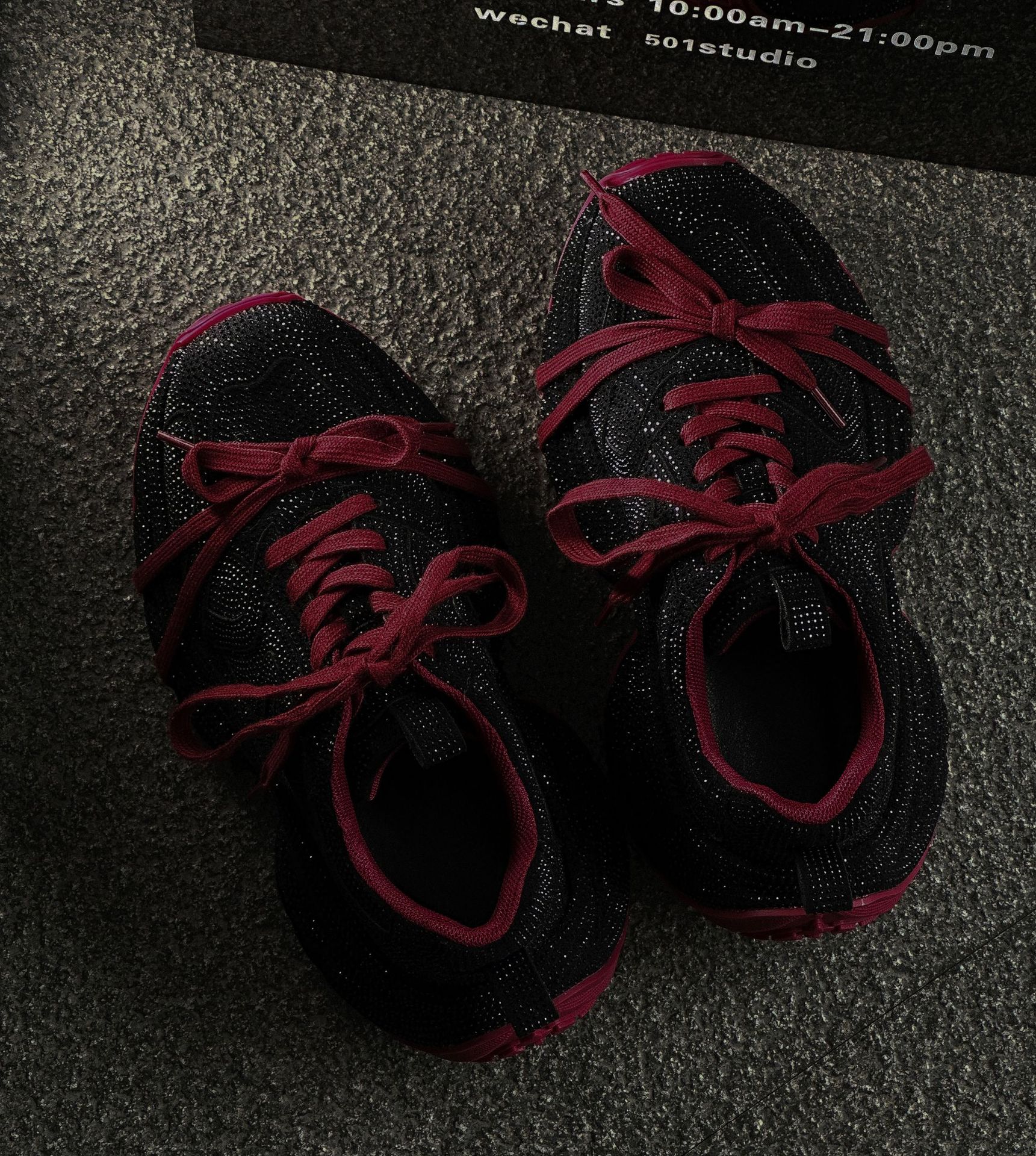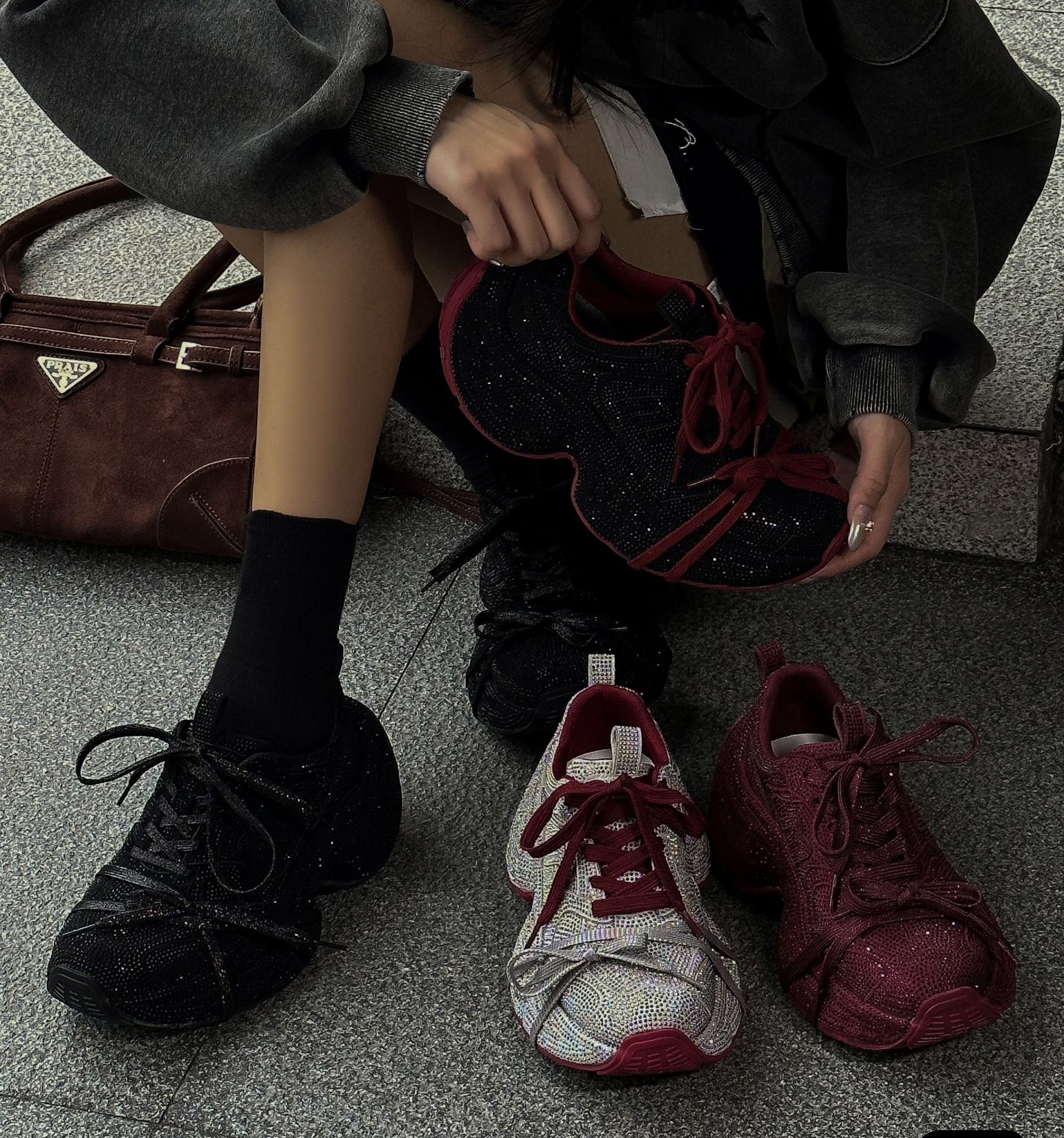 바자야디에 여성용 인기 레이디슈즈, 인스타그램에서 인기 있는 큐빅 장식, 끈으로 묶는 캐주얼 슈즈, 고급스러운 별빛 디자인, 독특한 디자인, 두꺼운 밑창