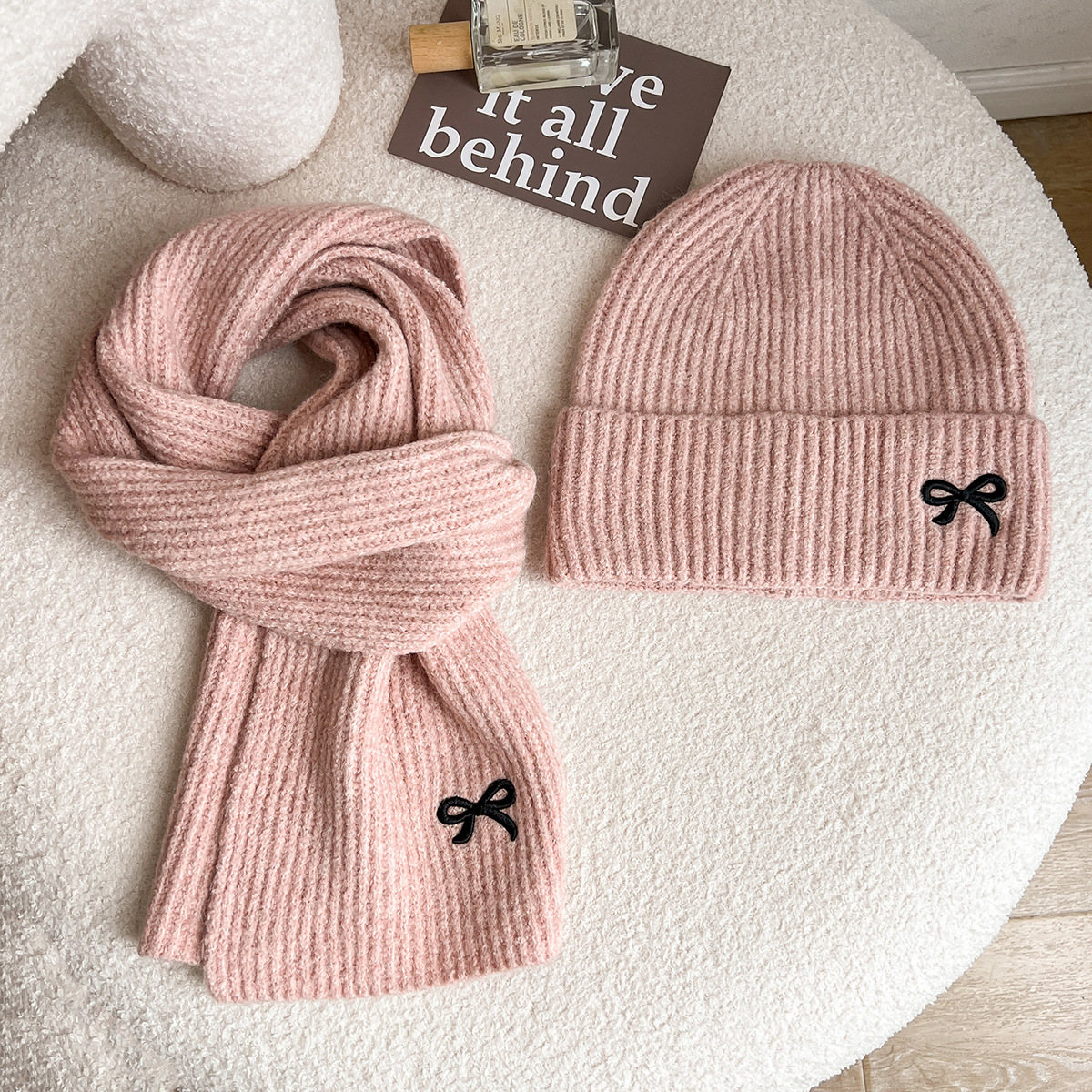 가을과 겨울 부모-자식 모자 스카프 투피스 세트 어린이 자수 단색 활 니트 울 따뜻한