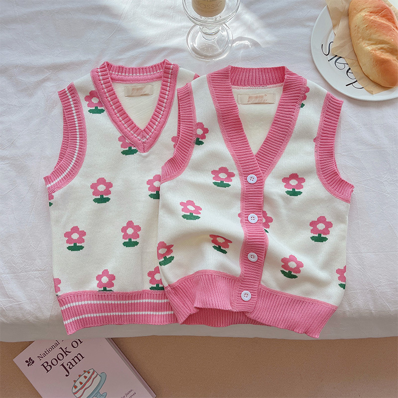 조끼의 소녀 waistcoat 가을과 겨울 새로운 아기 스웨터 카디건 코트 스웨터 조끼 어린이를위한 니트 조끼