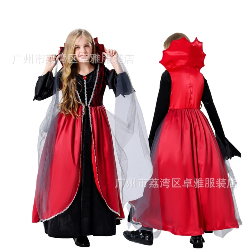 어린이 코트 악마 의상 할로윈 의상 아동복 칼라 뱀파이어 악마 소녀 공연 의상 원피스