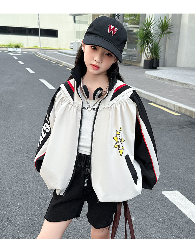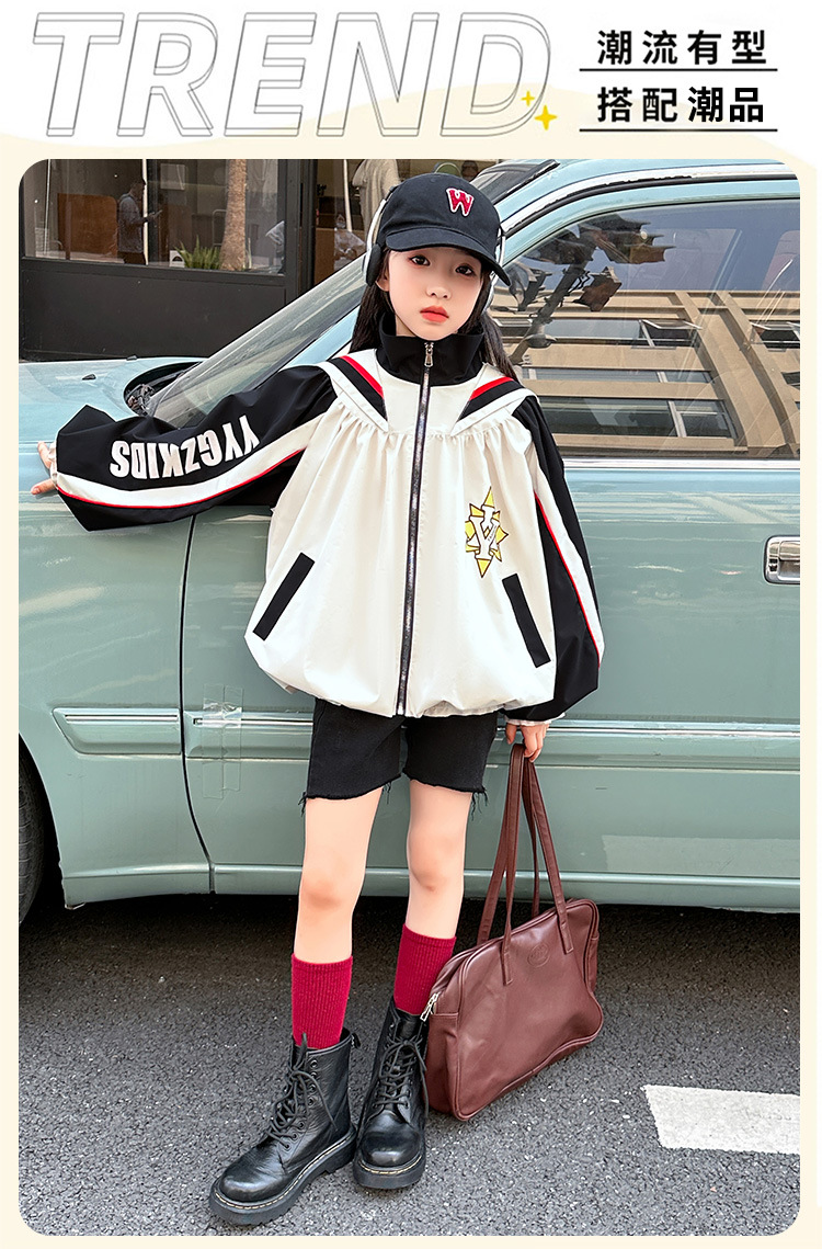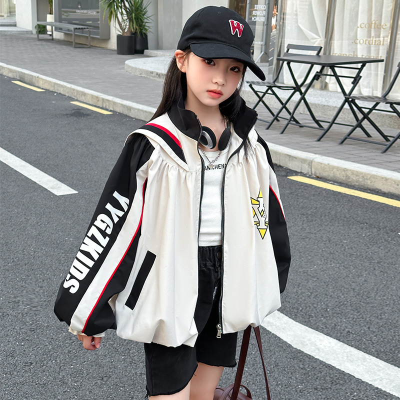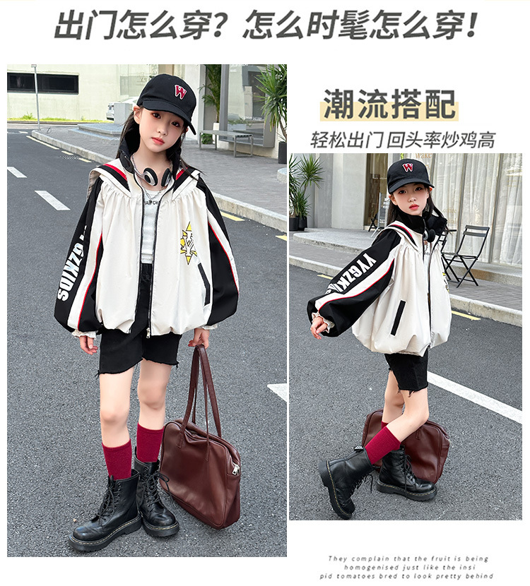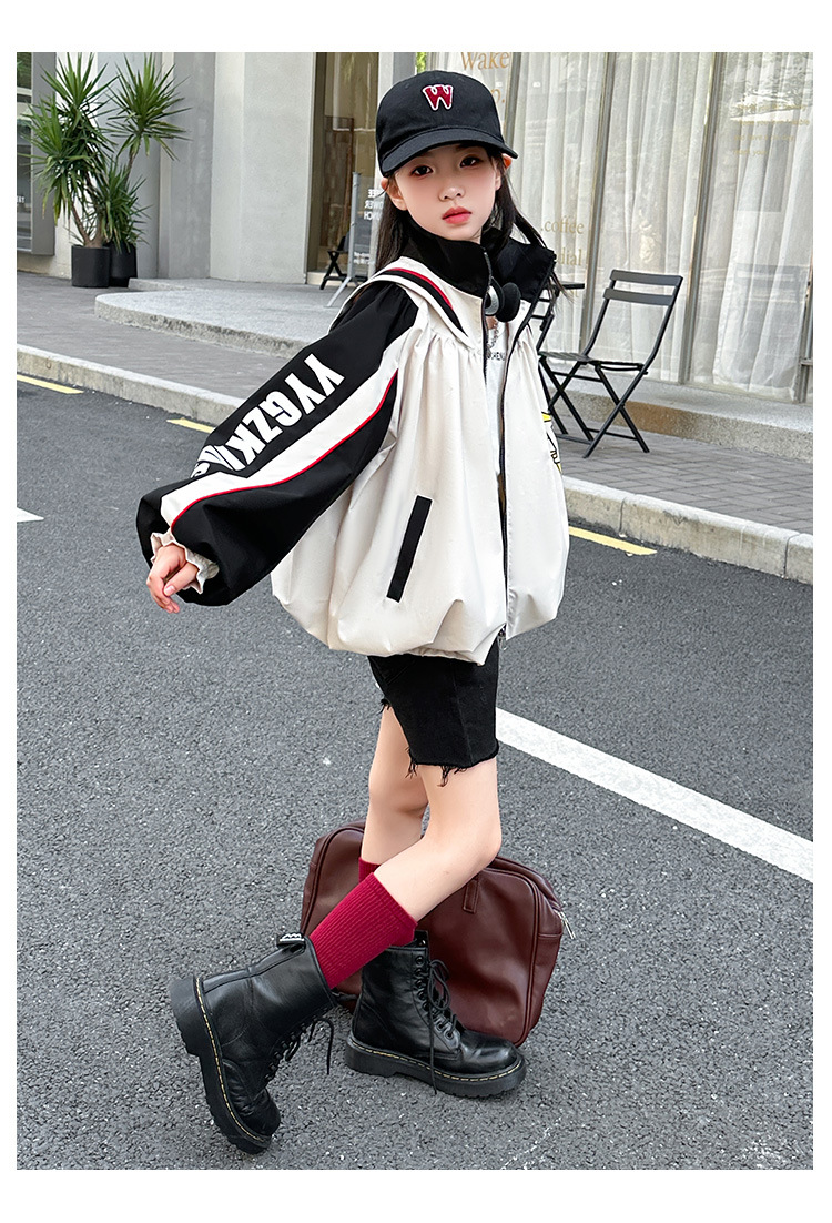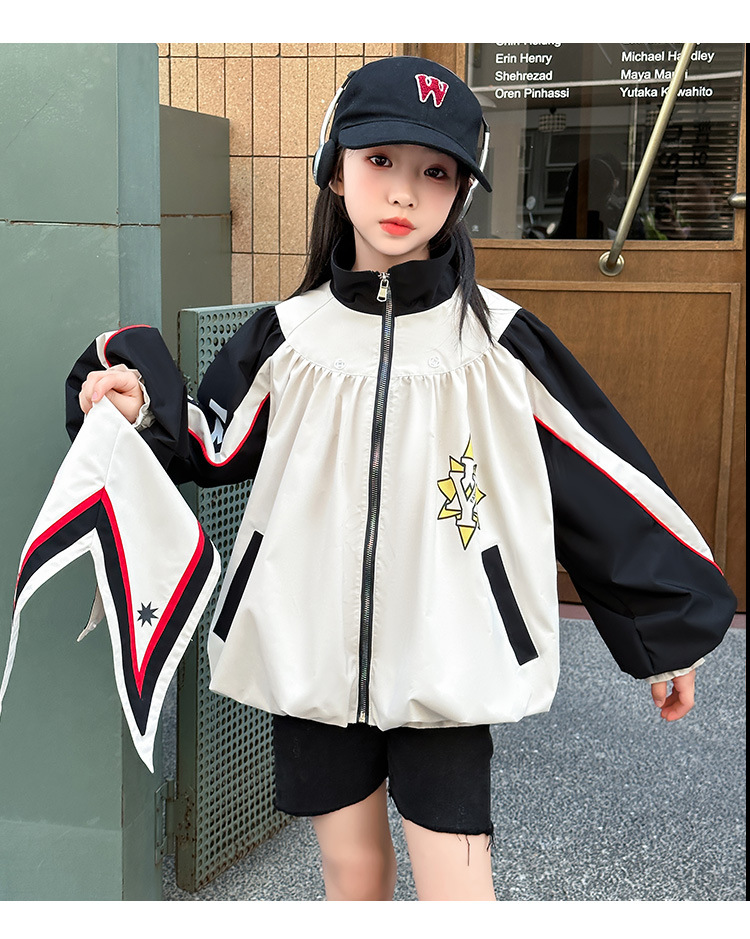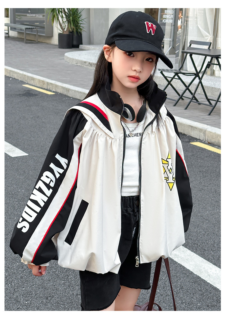 소녀 코트 봄과 가을 새로운 서양식 대형 어린이 네이비 칼라 재킷 어린이 탑 컬러 매칭 트렌디 쿨 스타일 코트스토어 가기