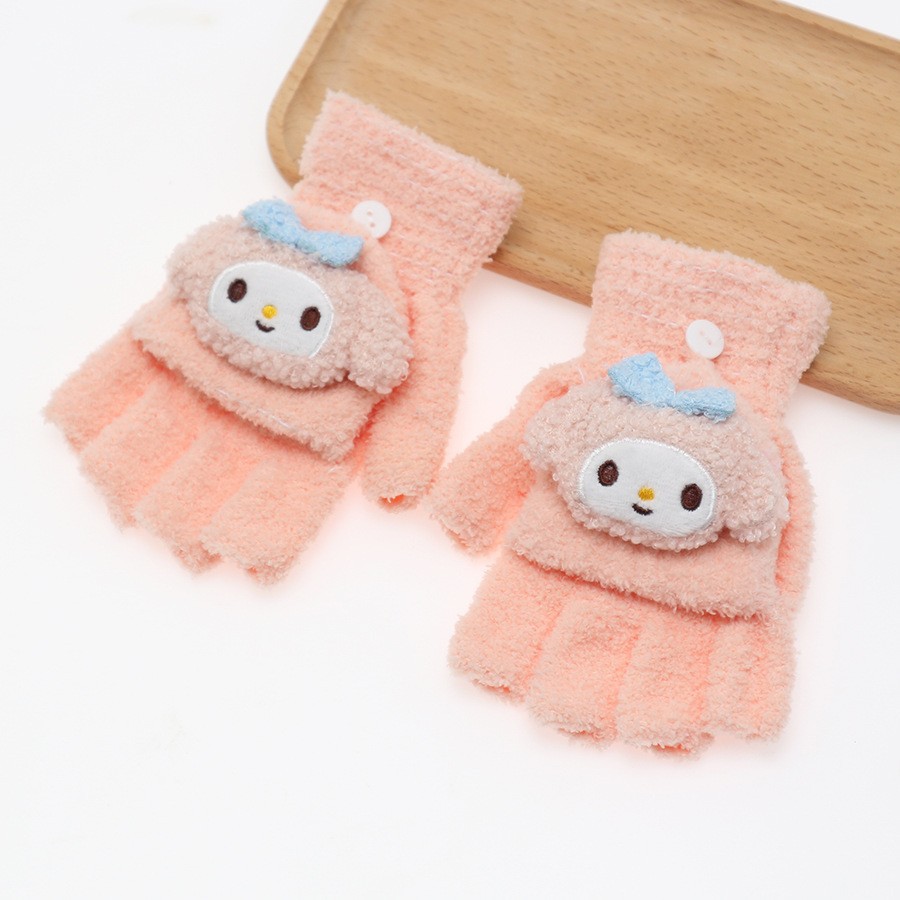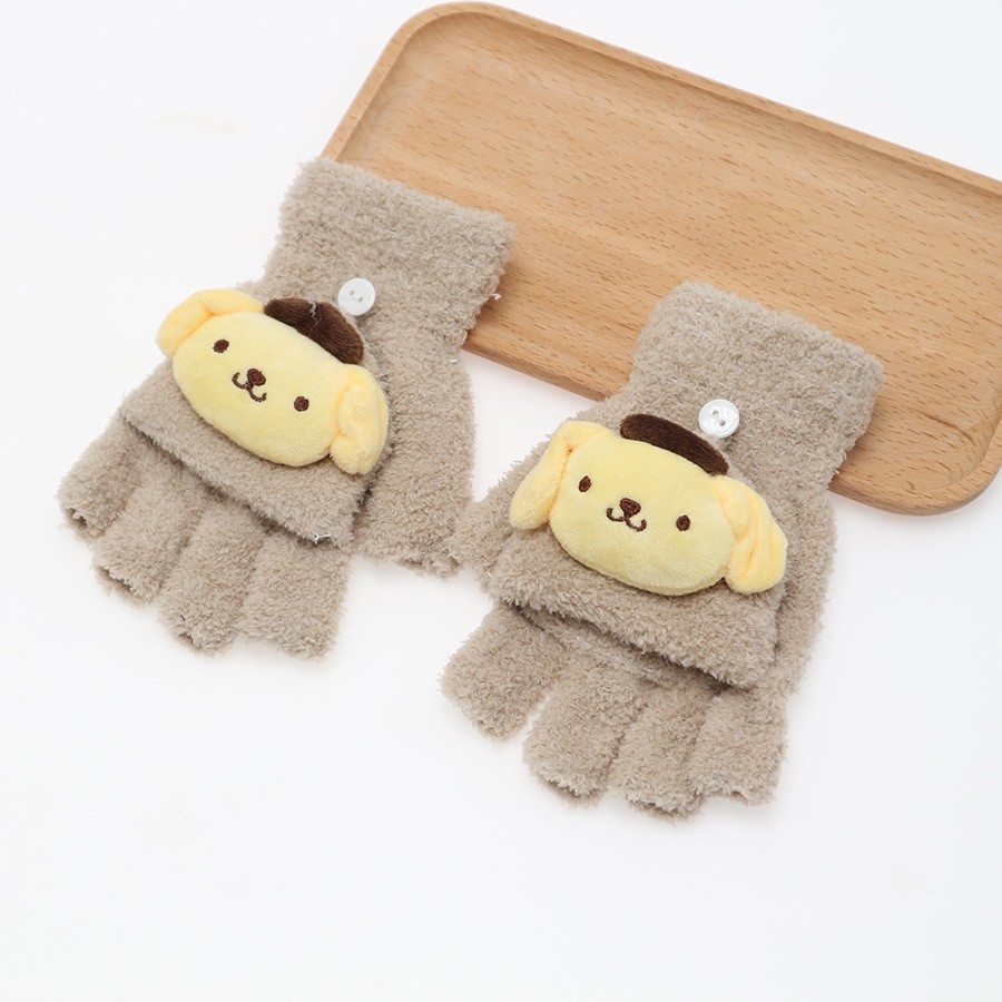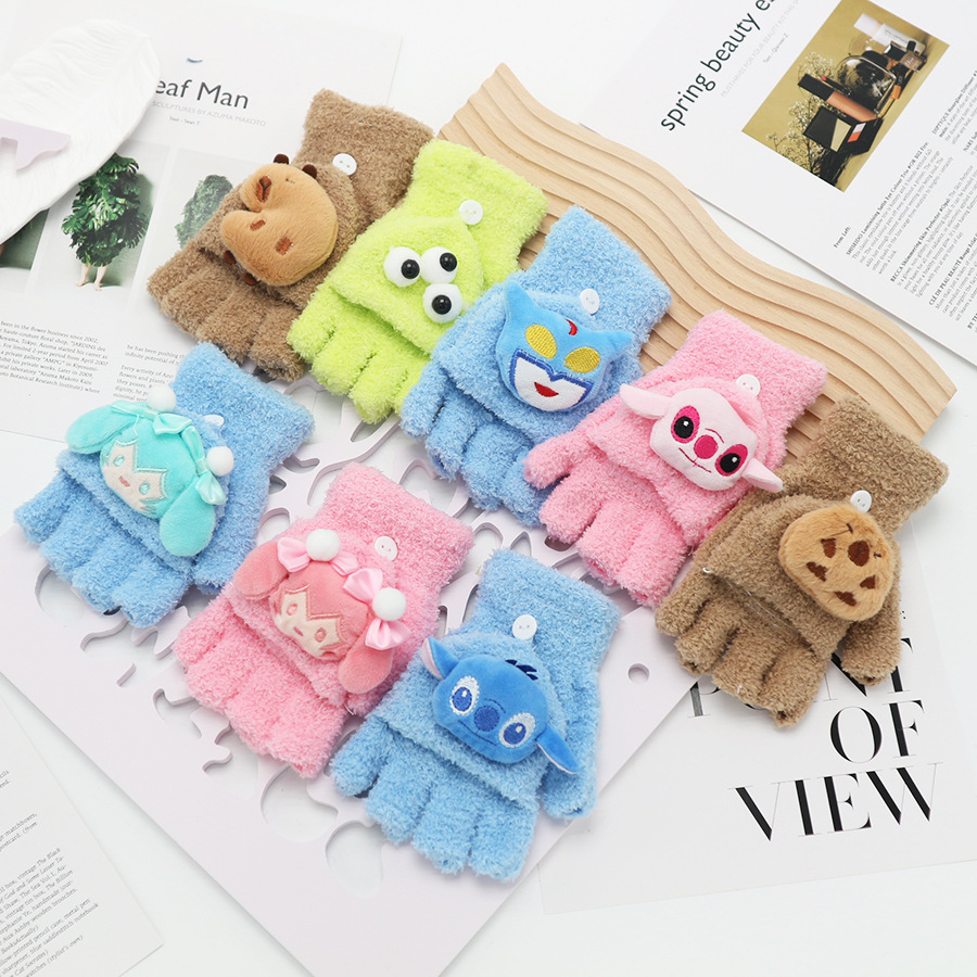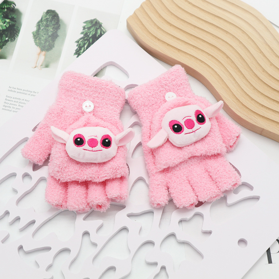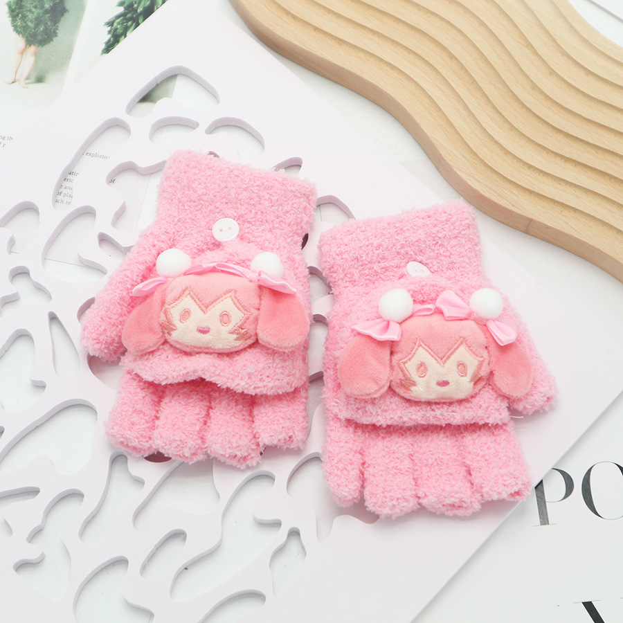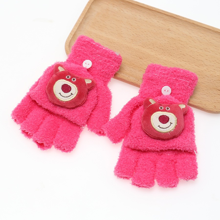 플립 장갑 가을과 겨울 딸기 컬러 곰 첫 번째 톤 스틸 만화 산호 양털 따뜻한 야외 다섯 손가락 귀여운