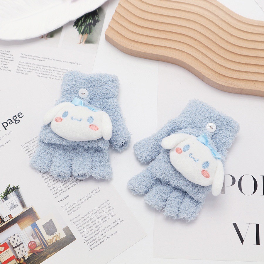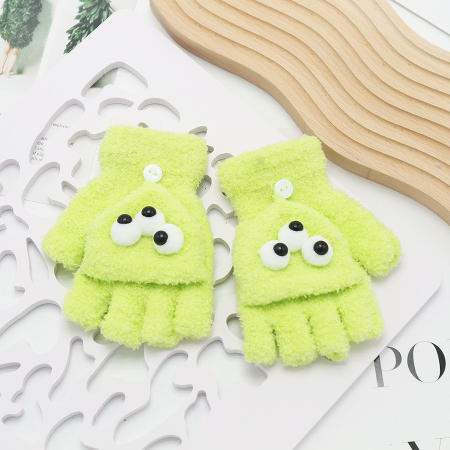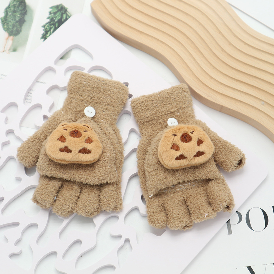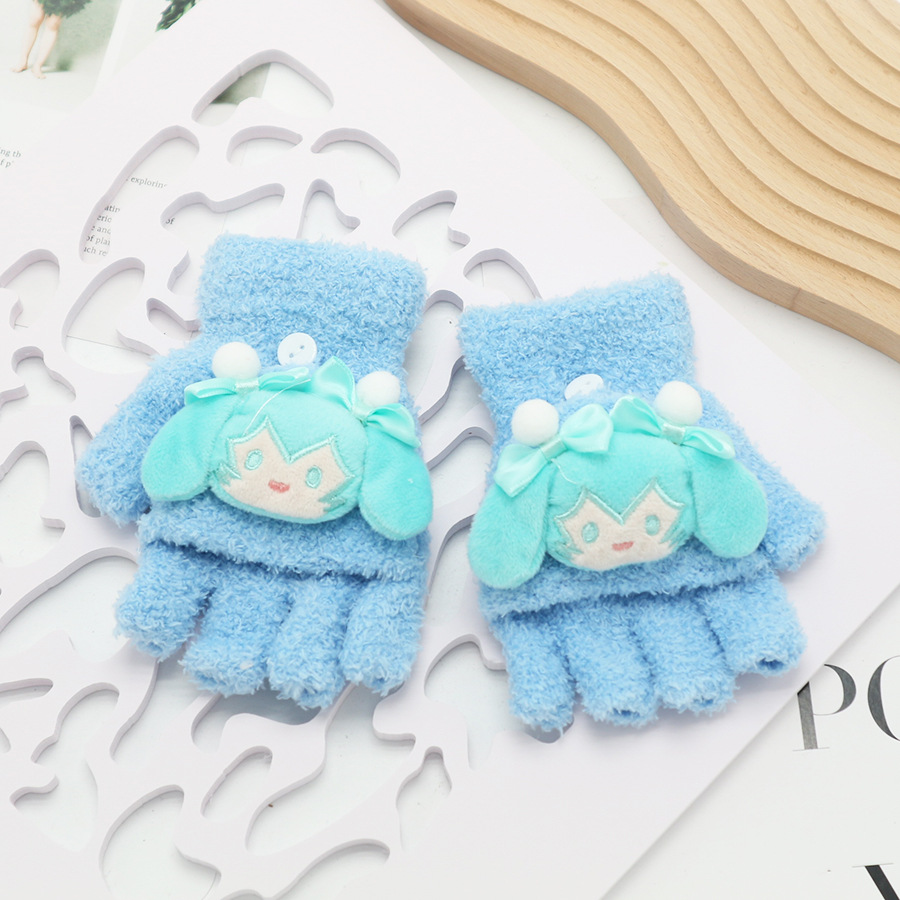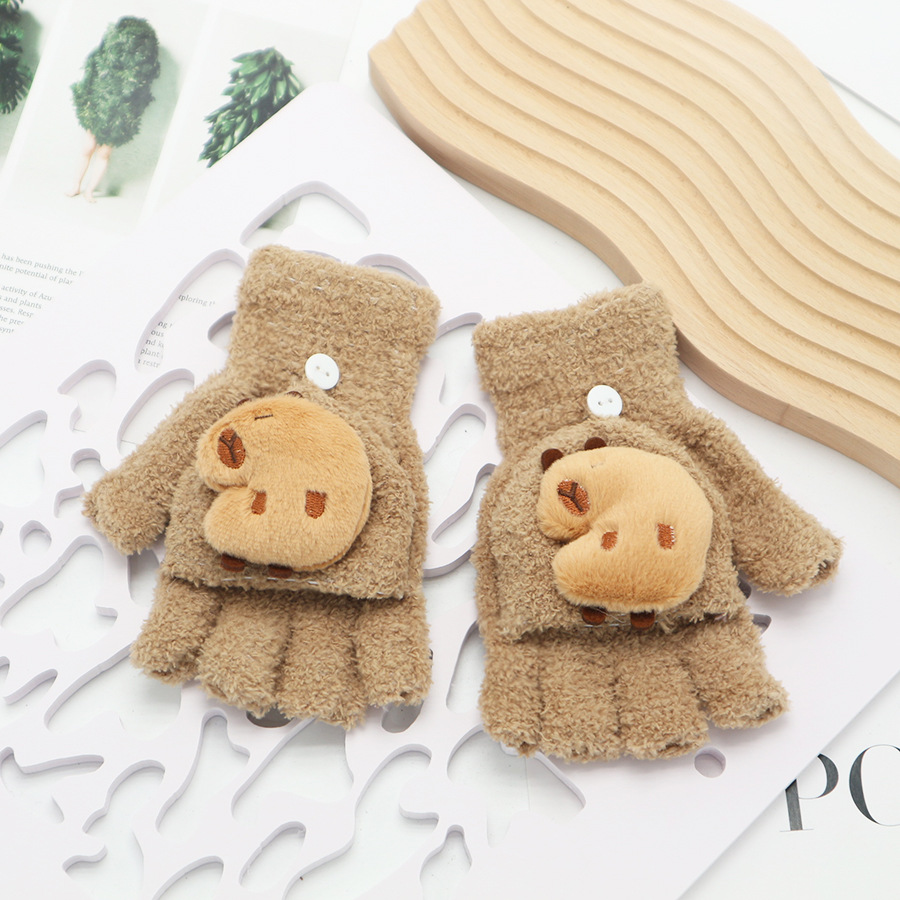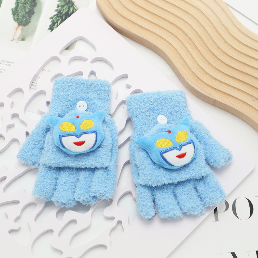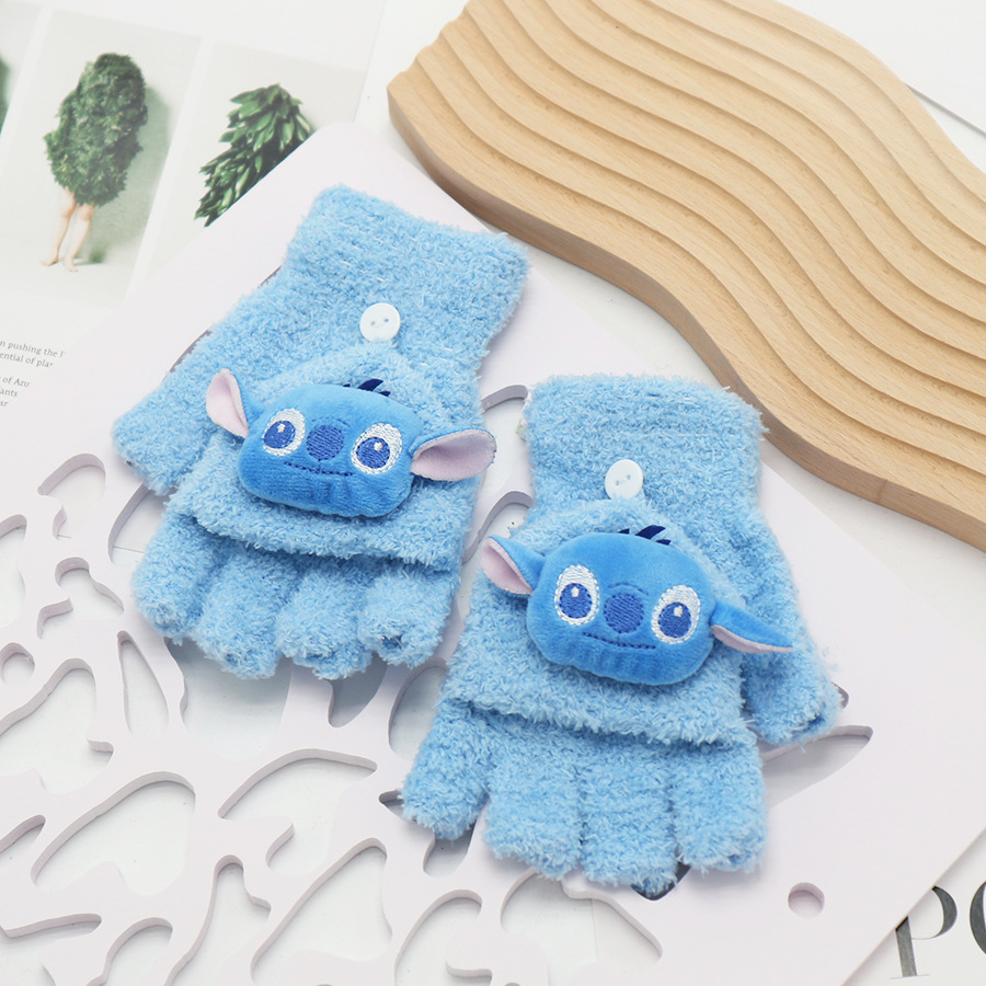플립 장갑 가을과 겨울 딸기 컬러 곰 첫 번째 톤 스틸 만화 산호 양털 따뜻한 야외 다섯 손가락 귀여운
