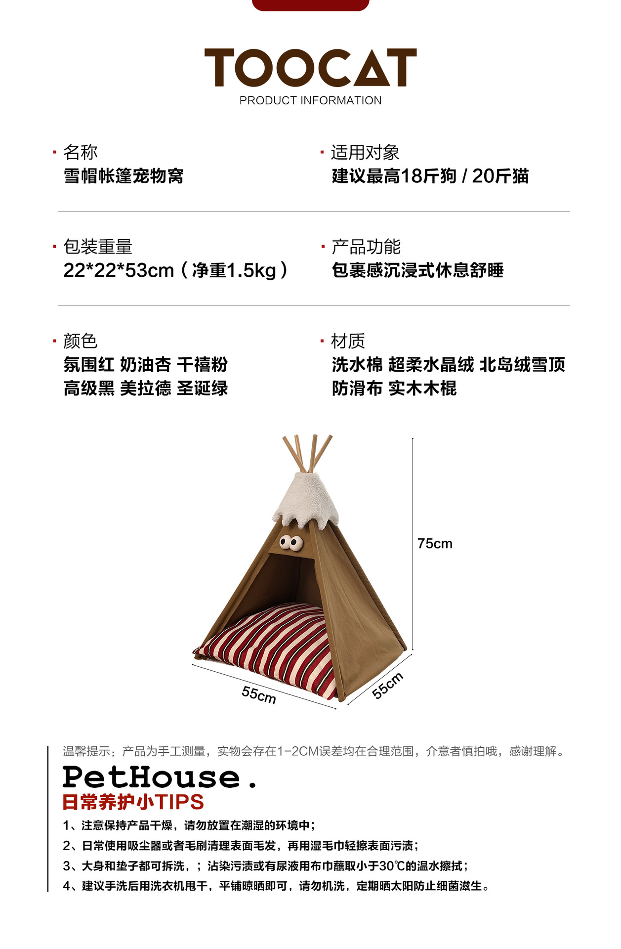 TOOCAT 사계절 텐트 가을과 겨울 고양이 둥지 유니버설 반 밀폐 이동식 세척 가능한 크리스마스 고양이 둥지 개 둥지 애완 동물 용품