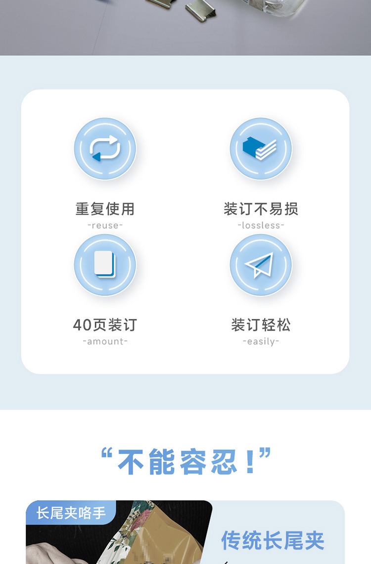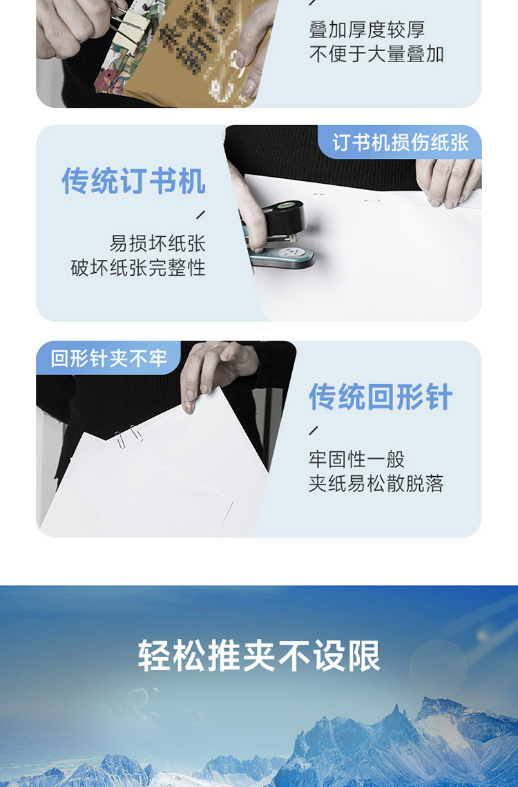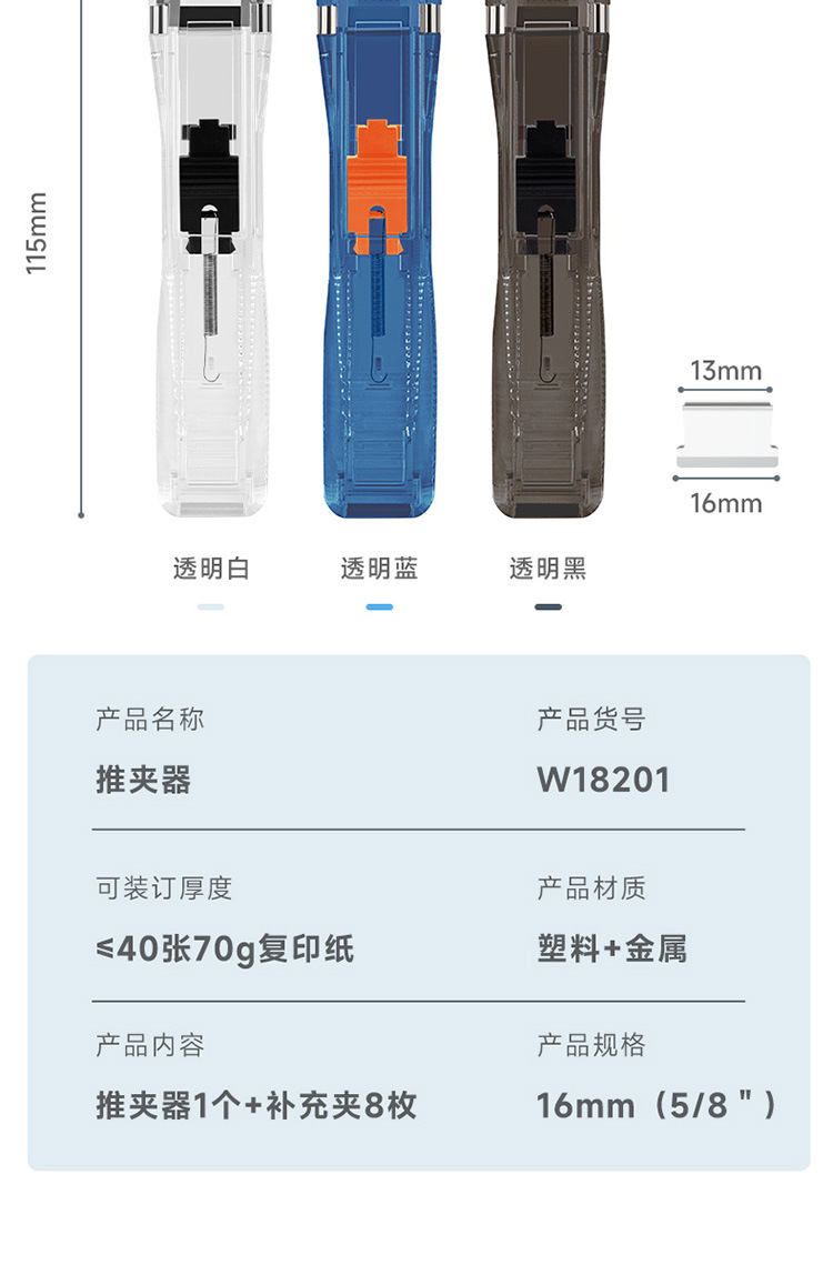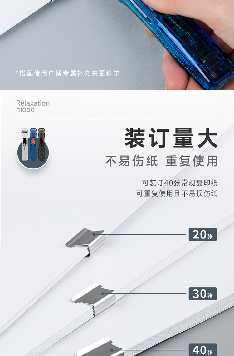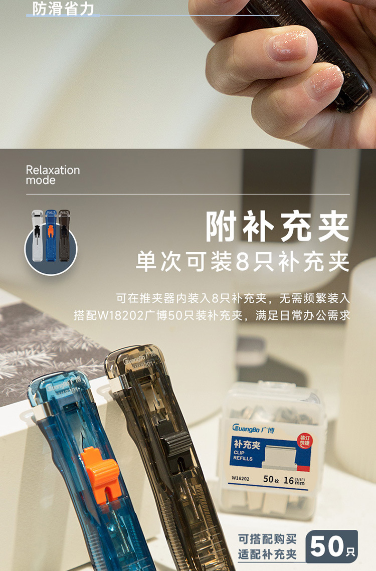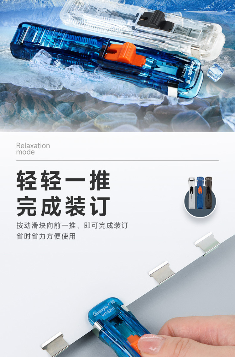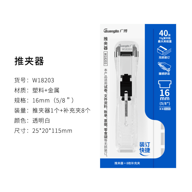 Guangbo Pusher 세트 파일 스토리지 마무리 스테이플러 금속 보충 클립 스테이플러 바늘없는 W18201