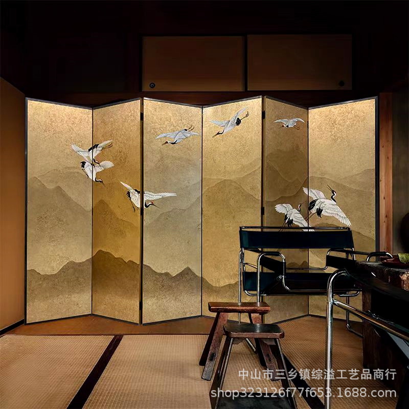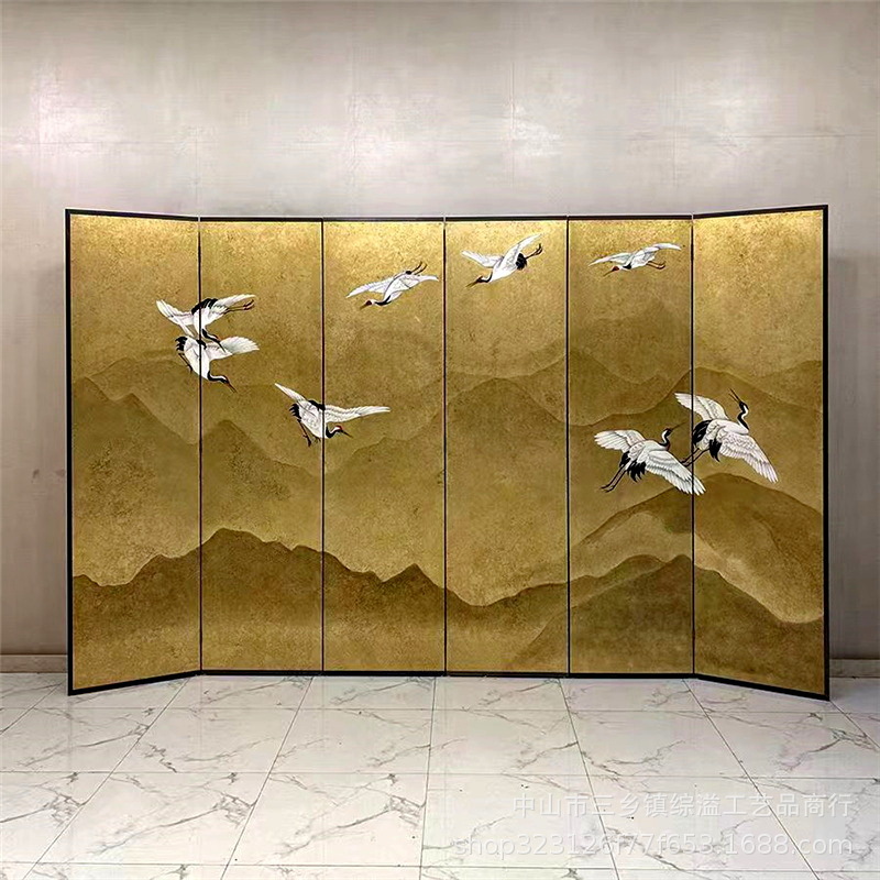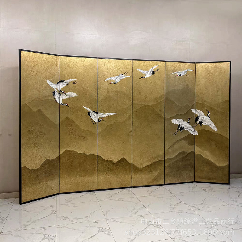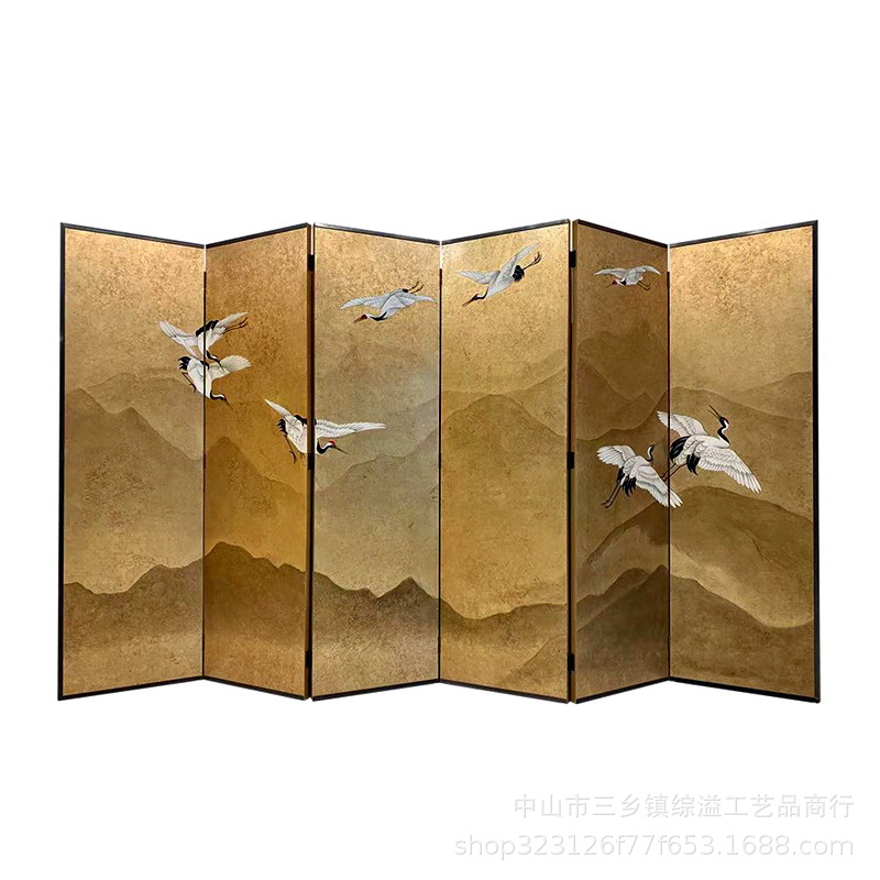 솔리드 우드 골드 리프 스크린 크레인 소나무 중국 래커 그림 거실 컨퍼런스 홀 배경 파티션 이동식 접이식 스크린