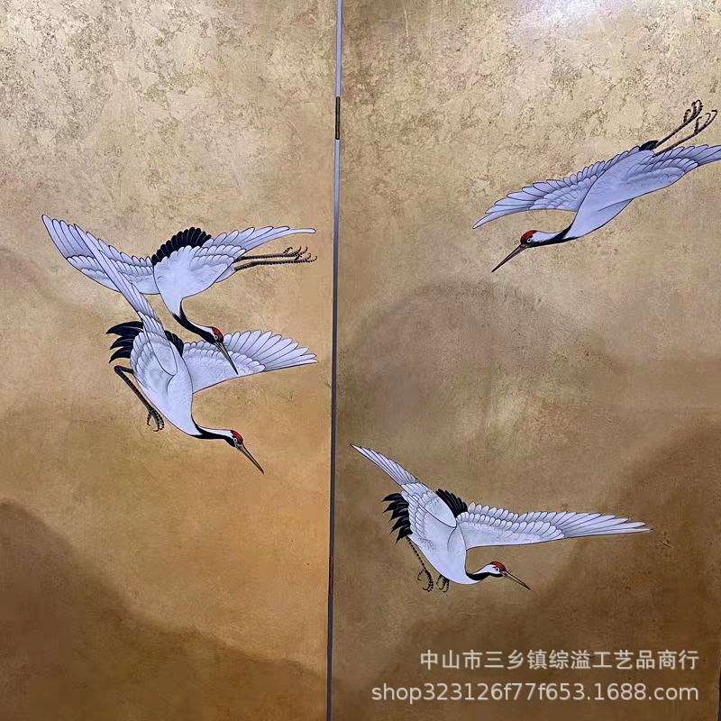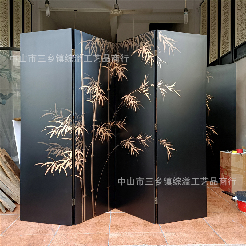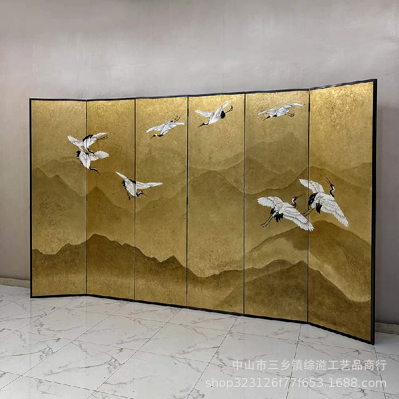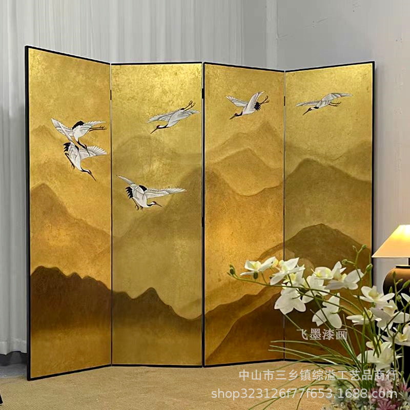 솔리드 우드 골드 리프 스크린 크레인 소나무 중국 래커 그림 거실 컨퍼런스 홀 배경 파티션 이동식 접이식 스크린스토어 가기