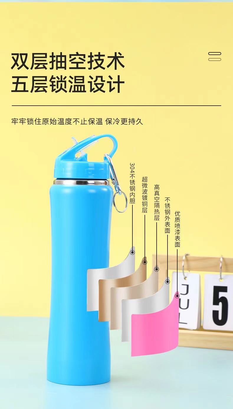 국경 스테인레스 스틸 흡입 튜브 컵 야외 등산 휴대용 스포츠 주전자 작은 남자 허리 보온병 컵 대용량 도매