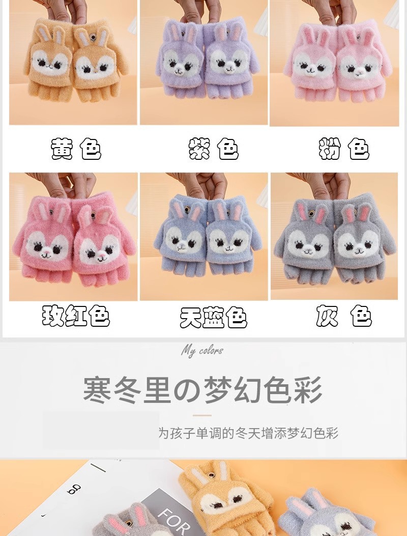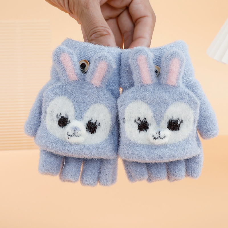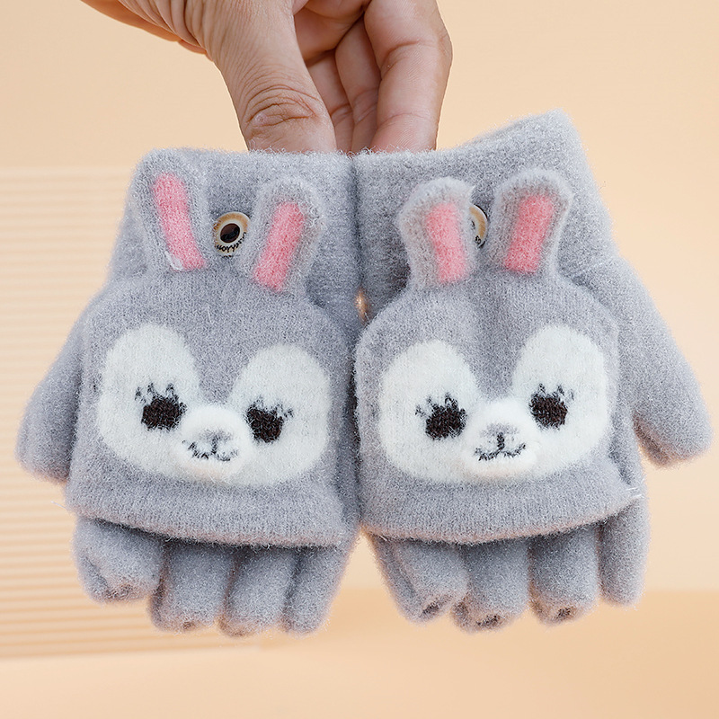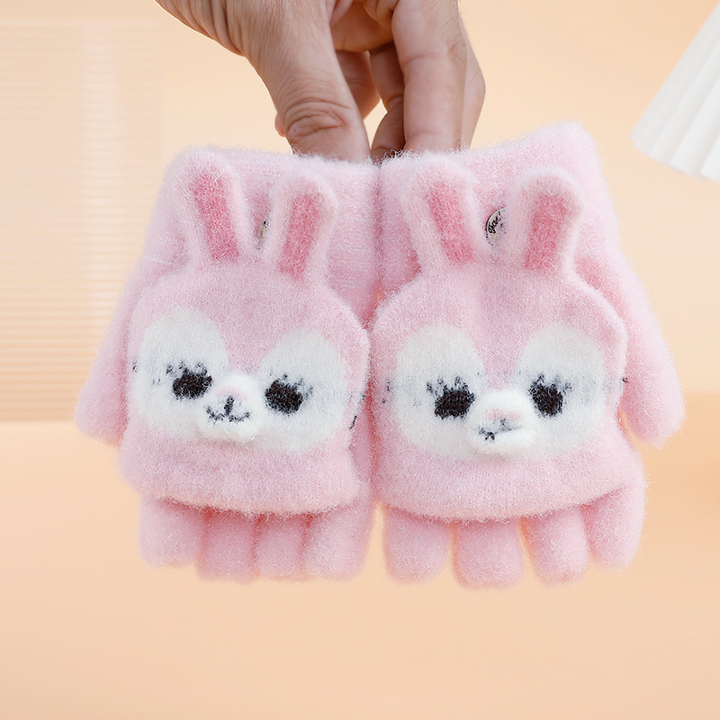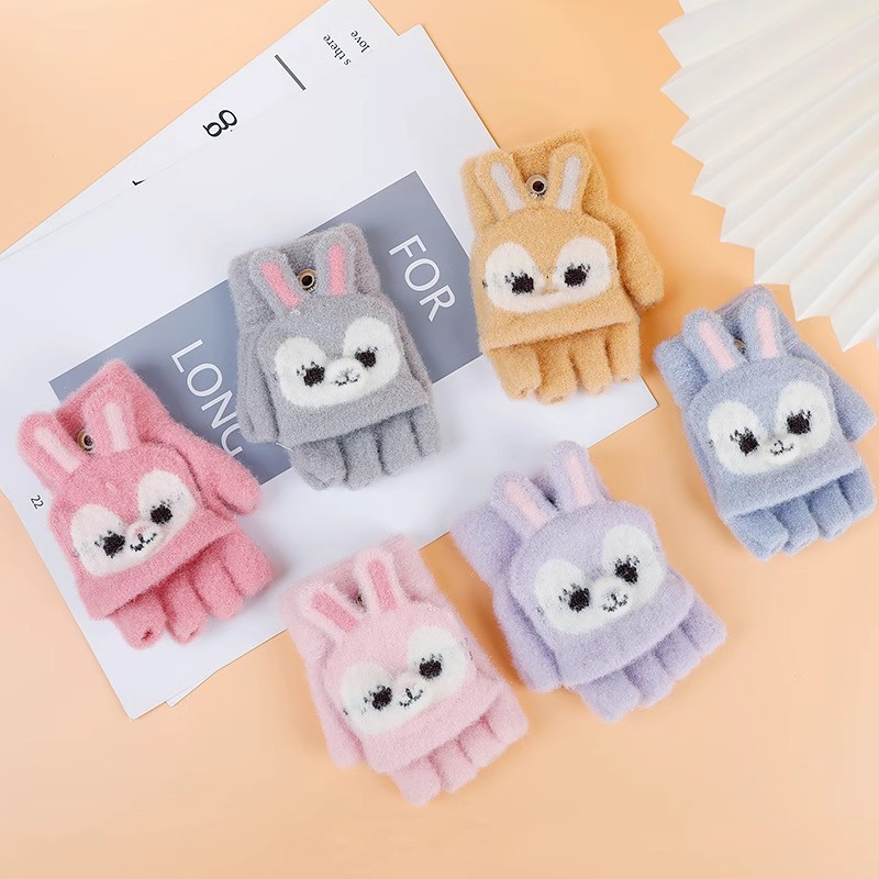 만화 토끼 어린이 플립 장갑 귀여운 학생 하프 핑거 장갑 벨벳 따뜻한 감기 방지 장갑 니트
