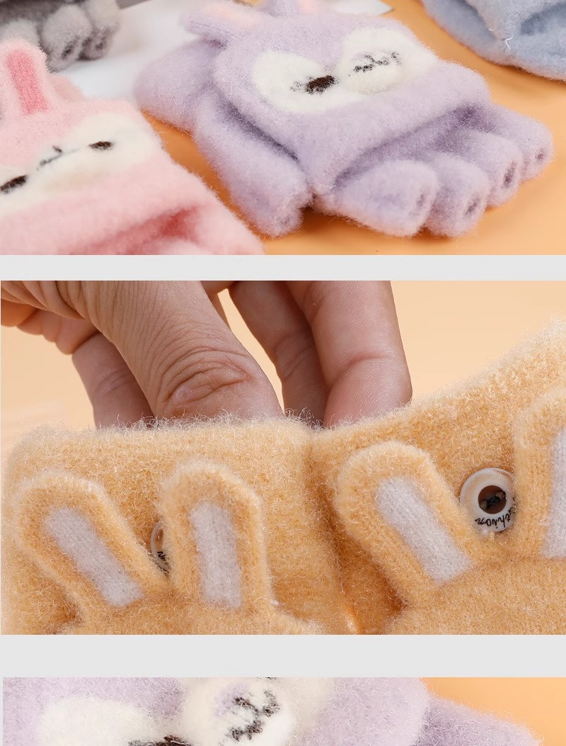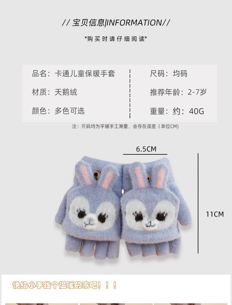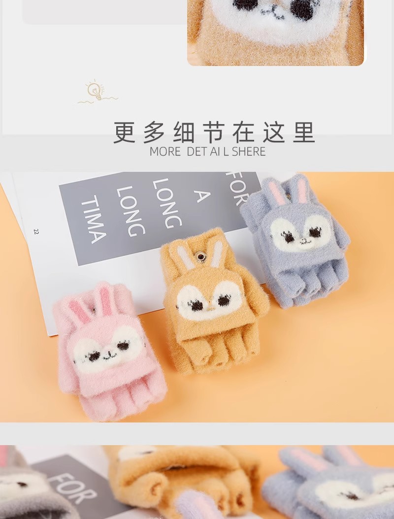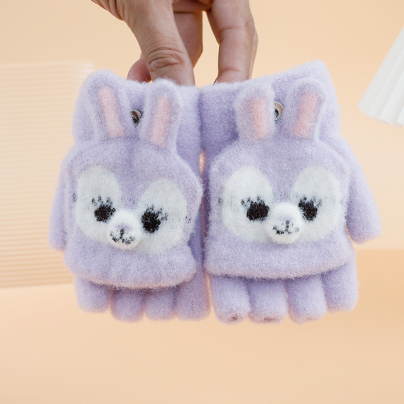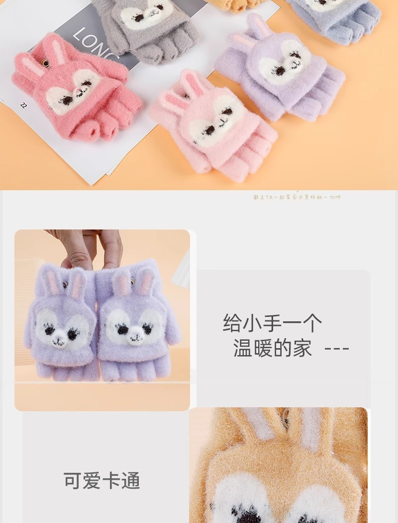 만화 토끼 어린이 플립 장갑 귀여운 학생 하프 핑거 장갑 벨벳 따뜻한 감기 방지 장갑 니트