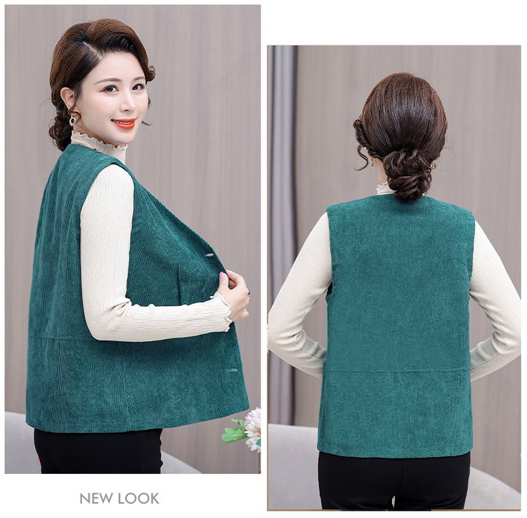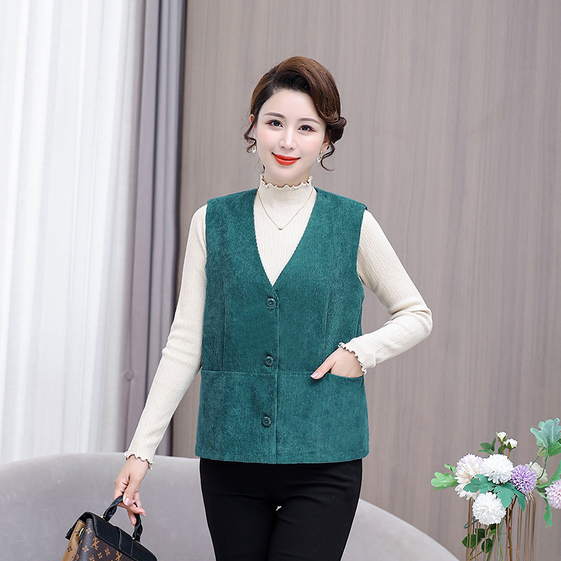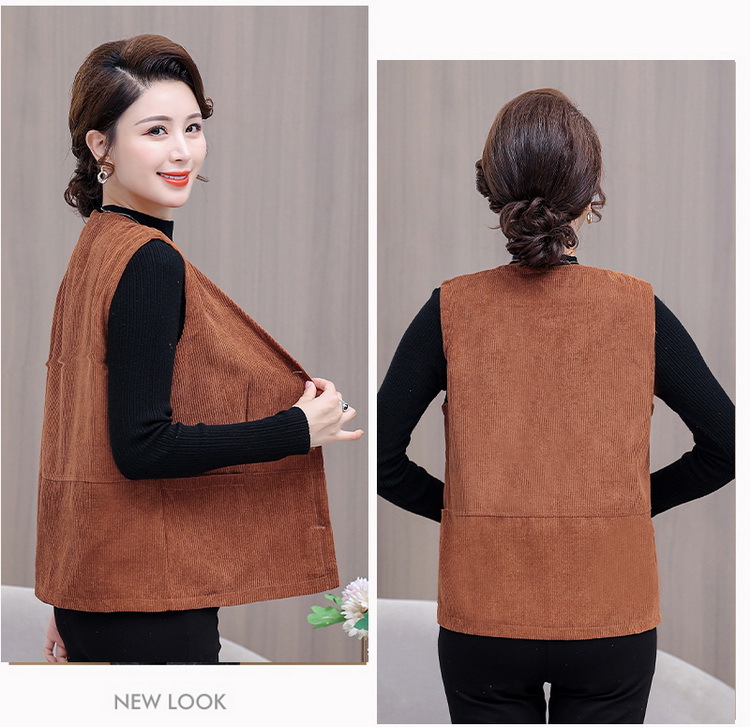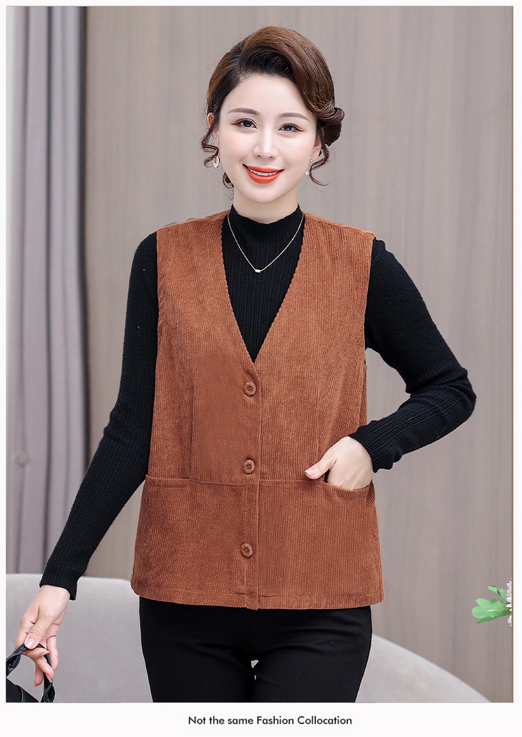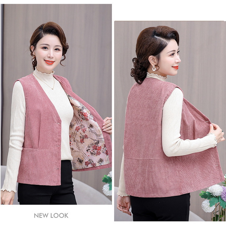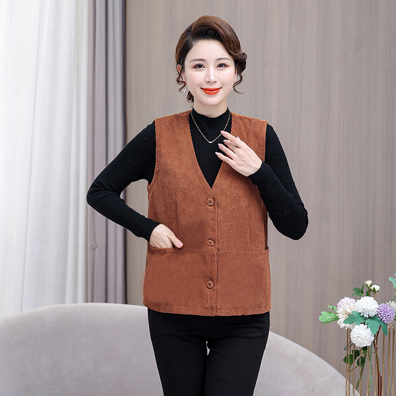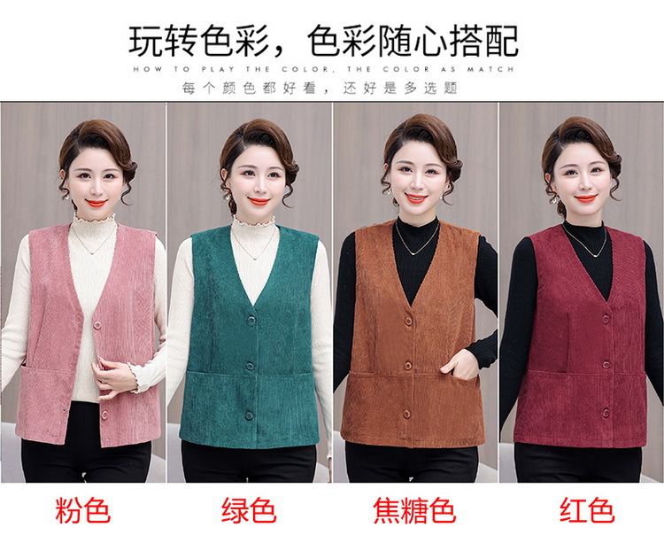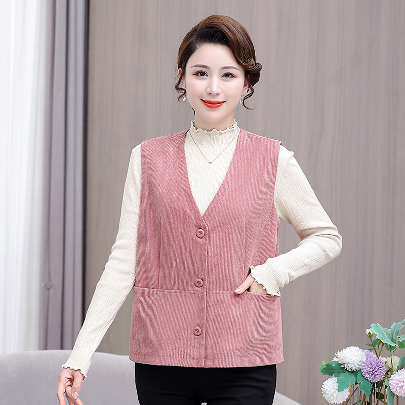 어머니의 조끼 봄과 가을 새로운 서양식 50 세 여성 코듀로이 느슨한 조끼 중년 및 노인 여성