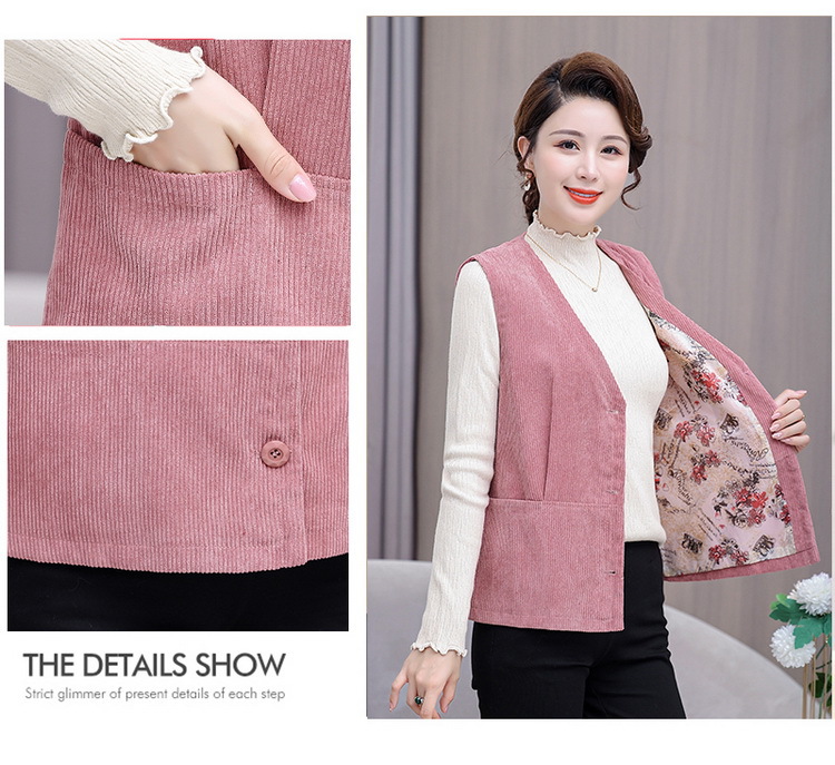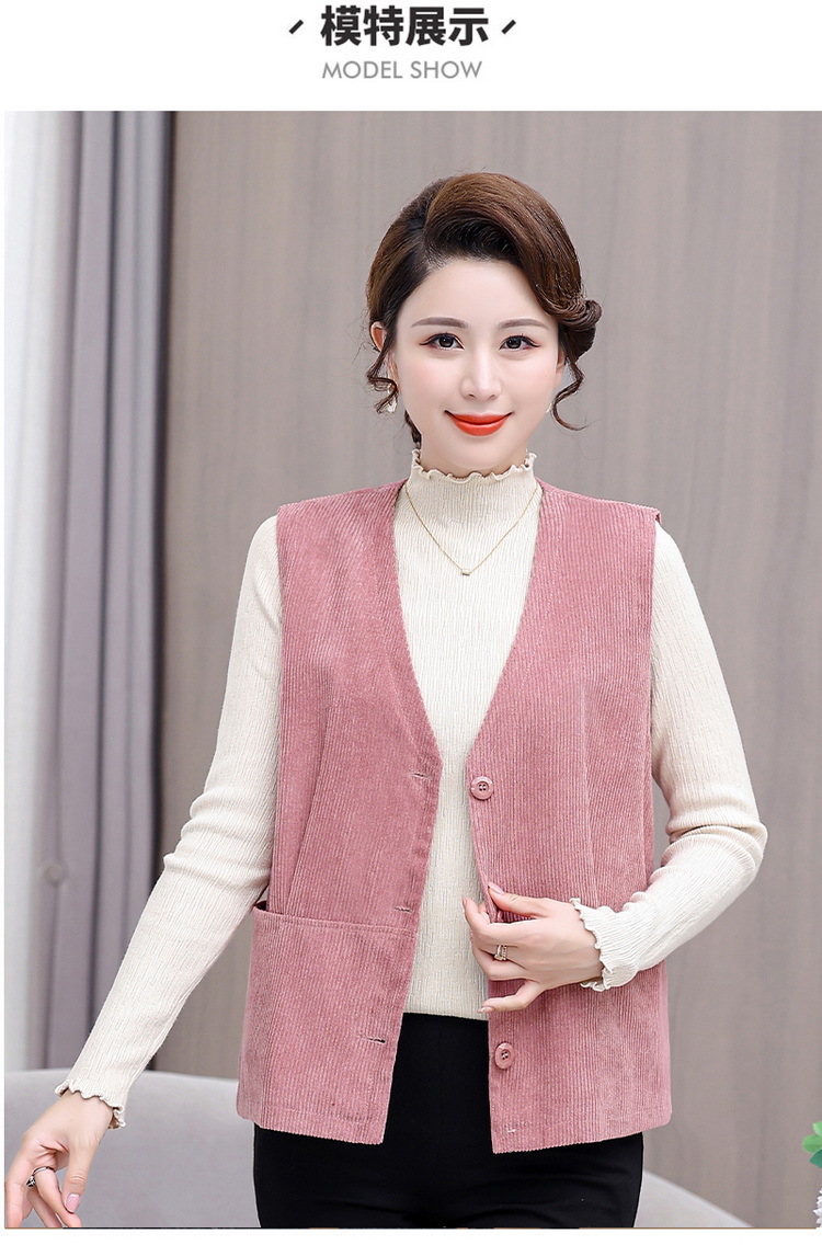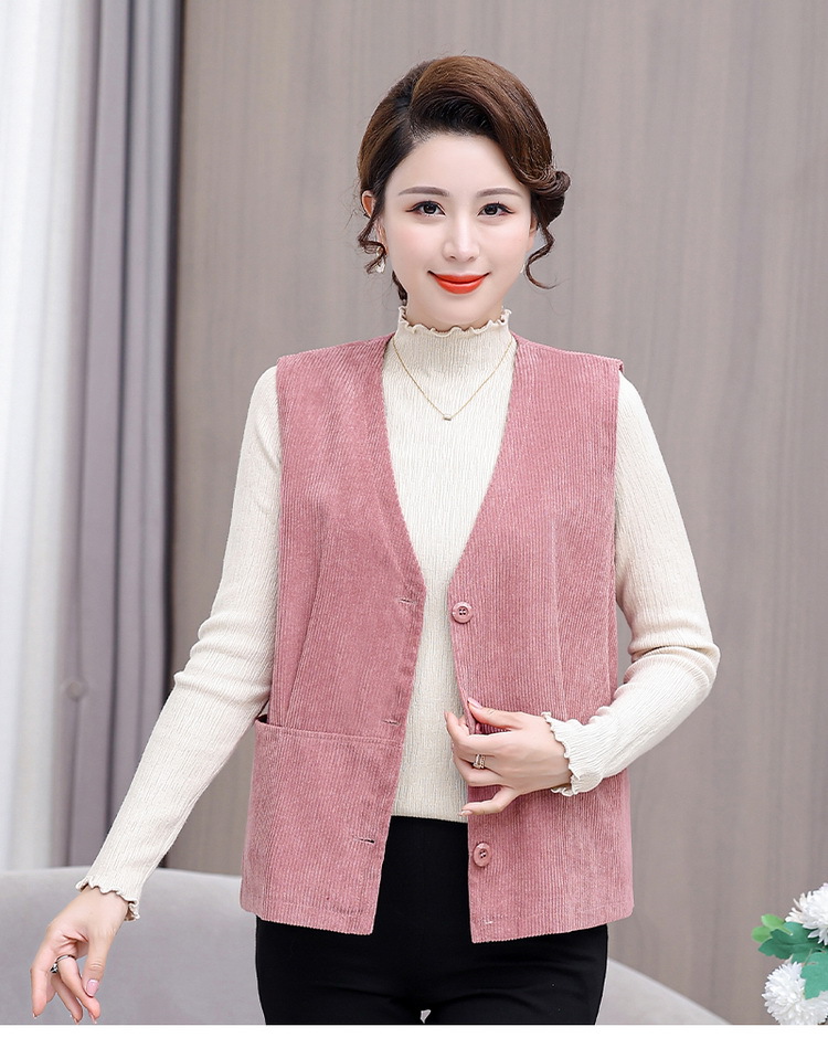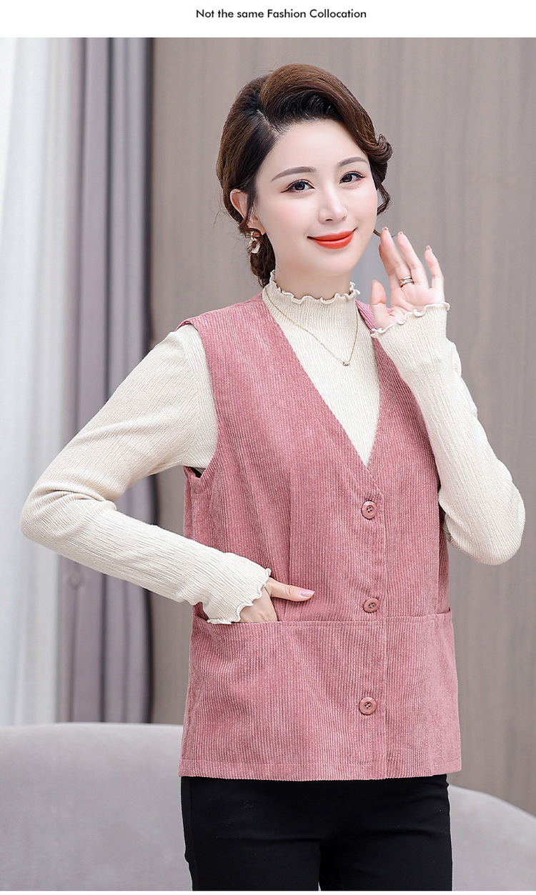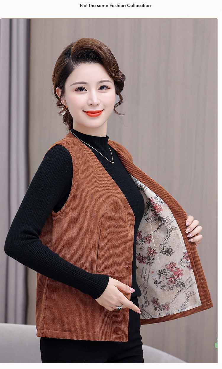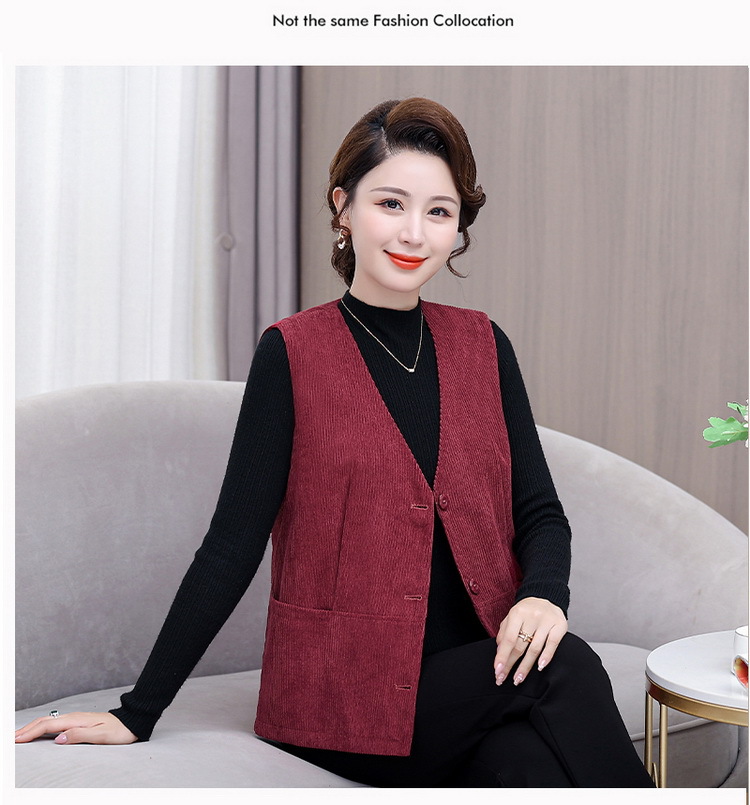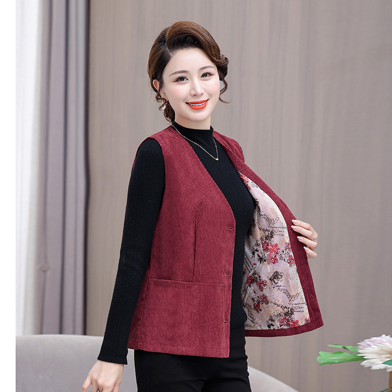 어머니의 조끼 봄과 가을 새로운 서양식 50 세 여성 코듀로이 느슨한 조끼 중년 및 노인 여성