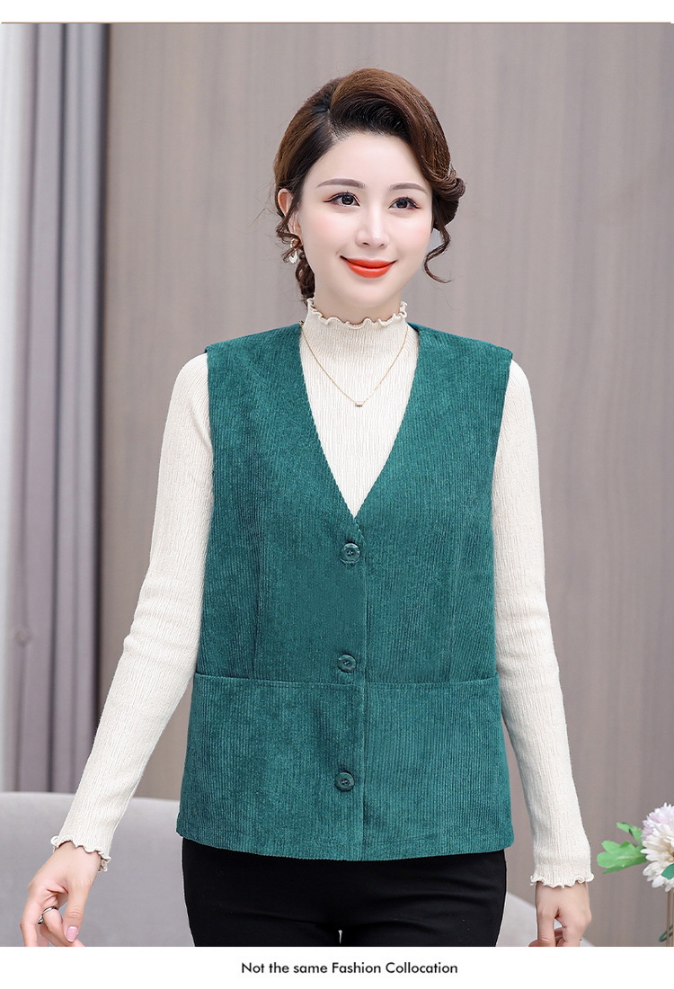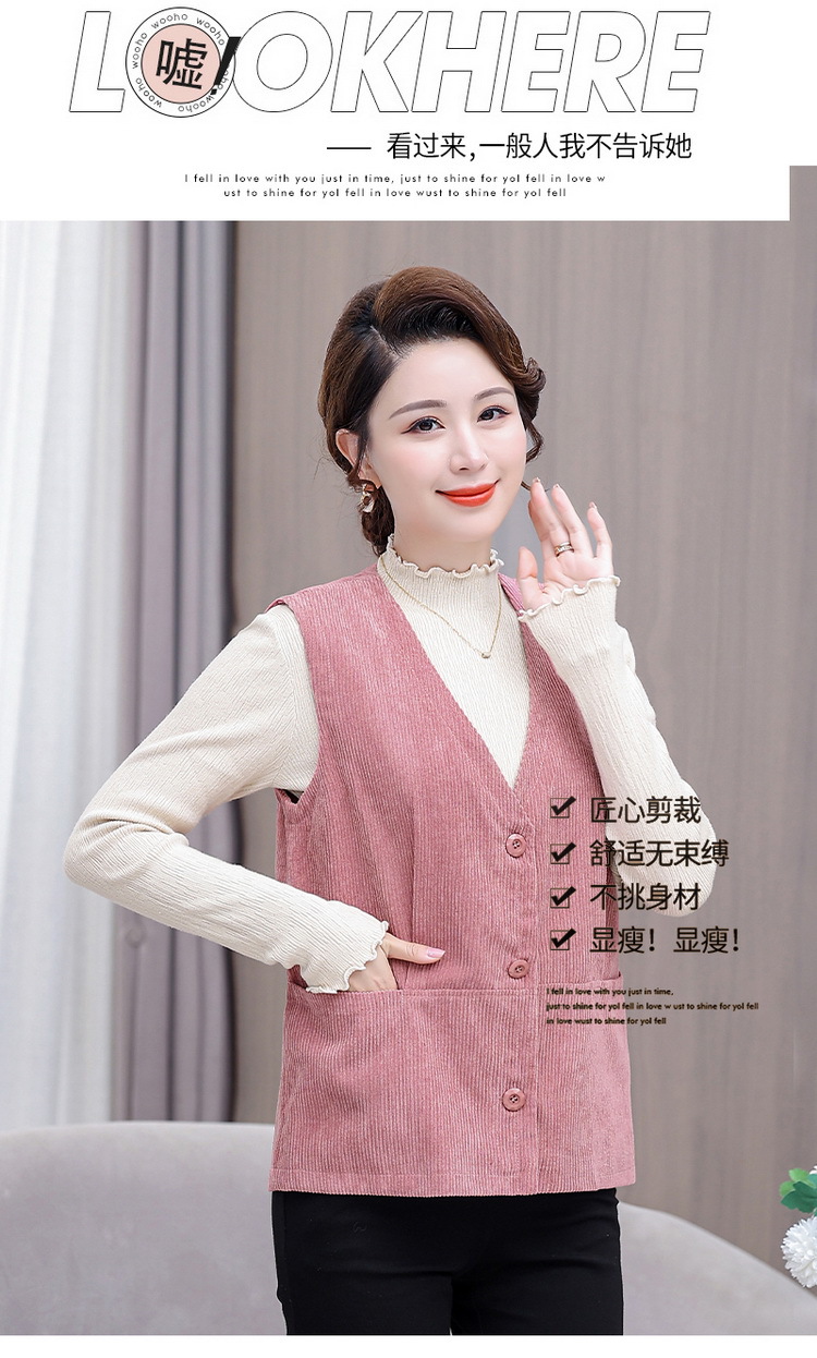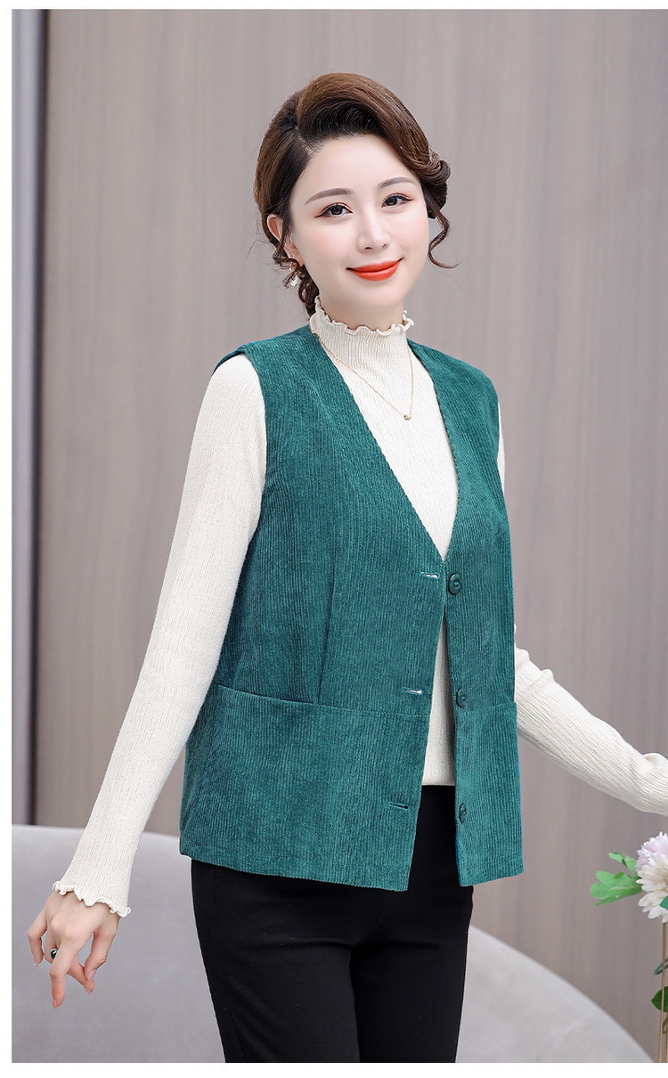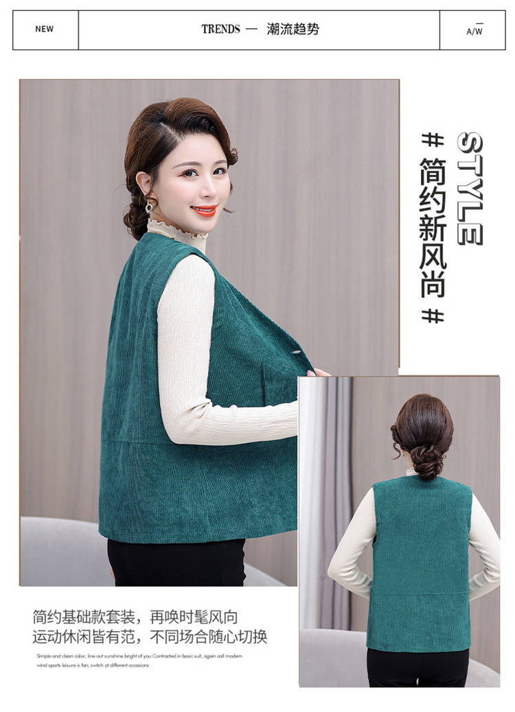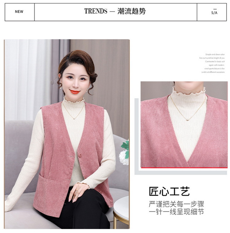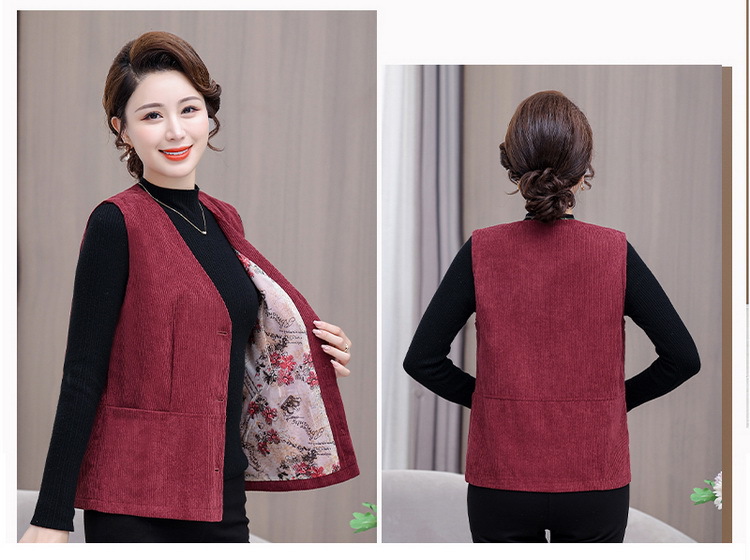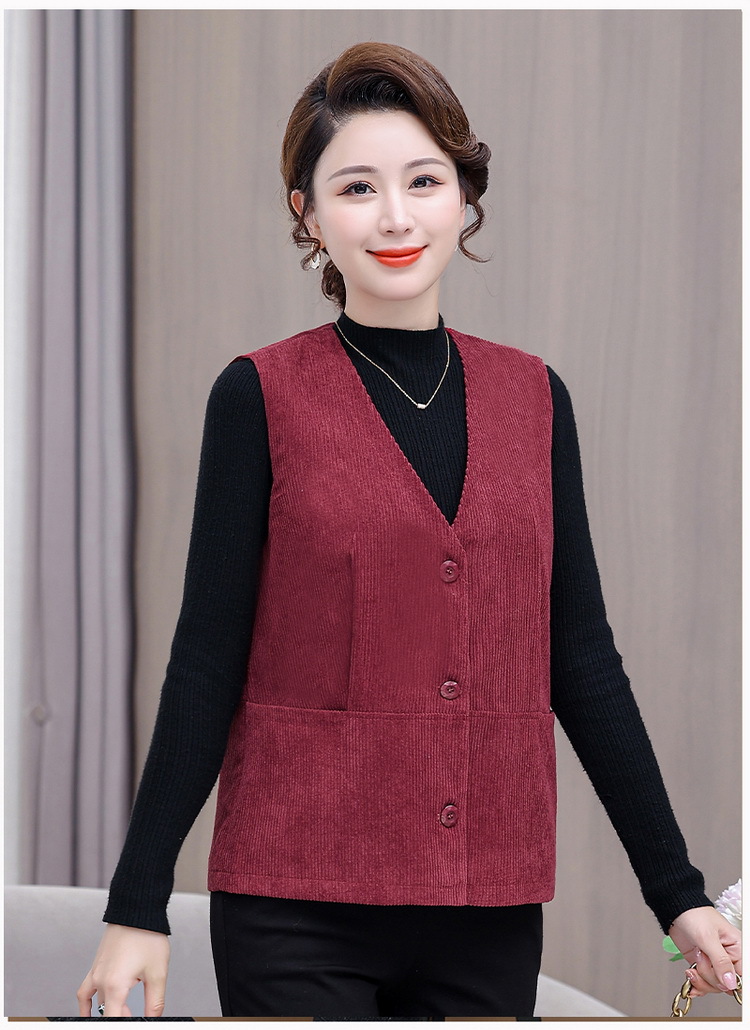 어머니의 조끼 봄과 가을 새로운 서양식 50 세 여성 코듀로이 느슨한 조끼 중년 및 노인 여성