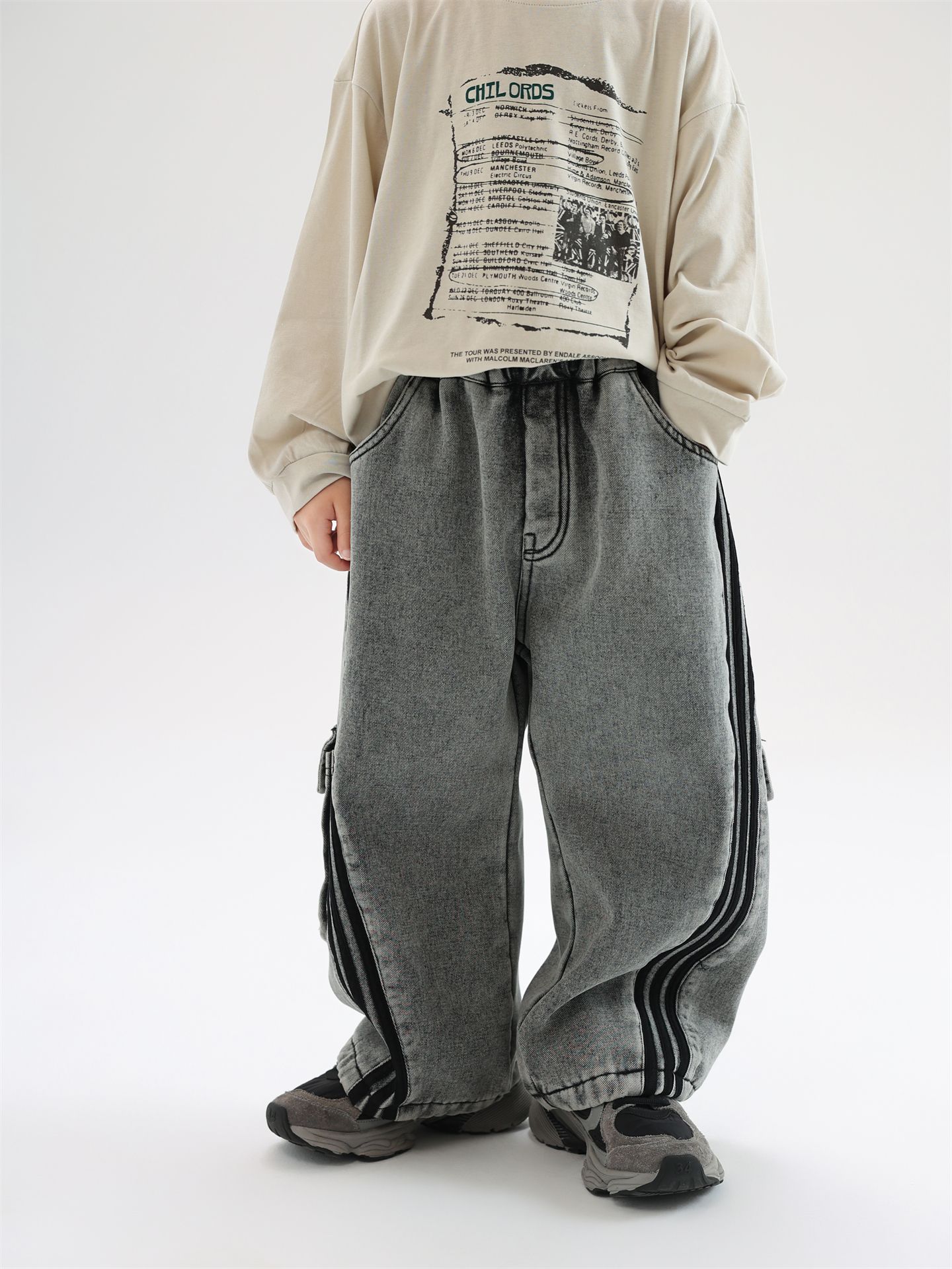 중소형 아동용 가을 겨울 바지, 겨울용 남아 한국 스타일 2026년 신상 아동용 기모 청바지, 두꺼운 아기용 보온 바지스토어 가기