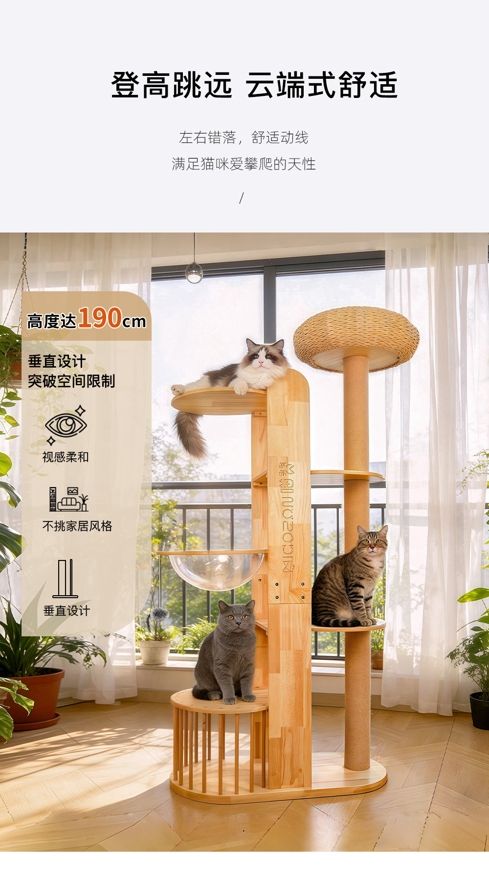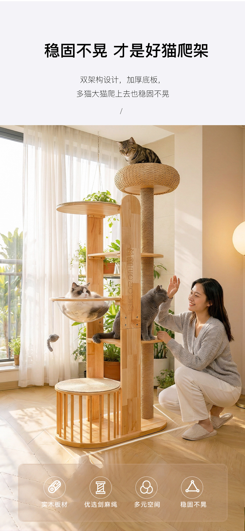 • Yunlan 고양이 등반 프레임 - 이중 목재 플랫폼 모델(설치는 포함되지 않음)