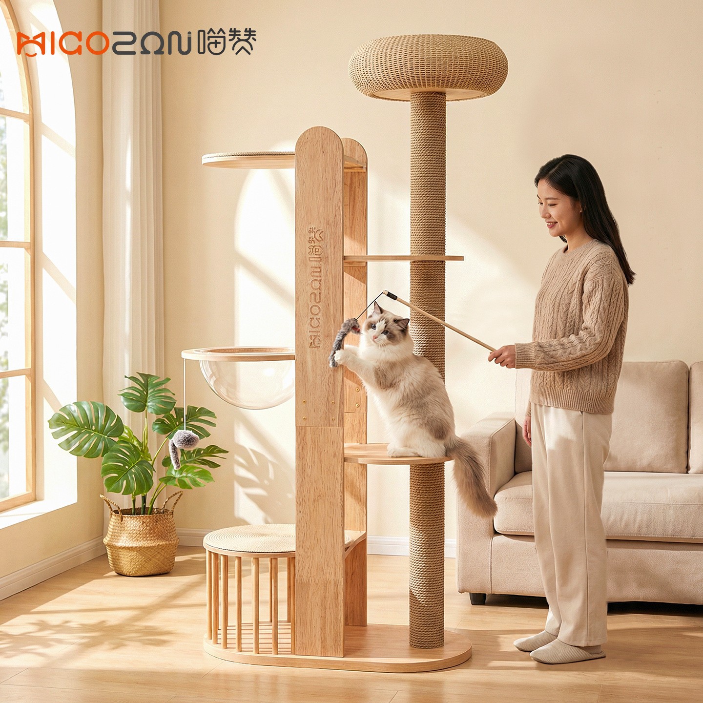 원목 고양이 클라이밍 프레임, 우주 캡슐 모양 고양이 집, 고양이 용품, 장난감, 하우스, 클라이밍 기구