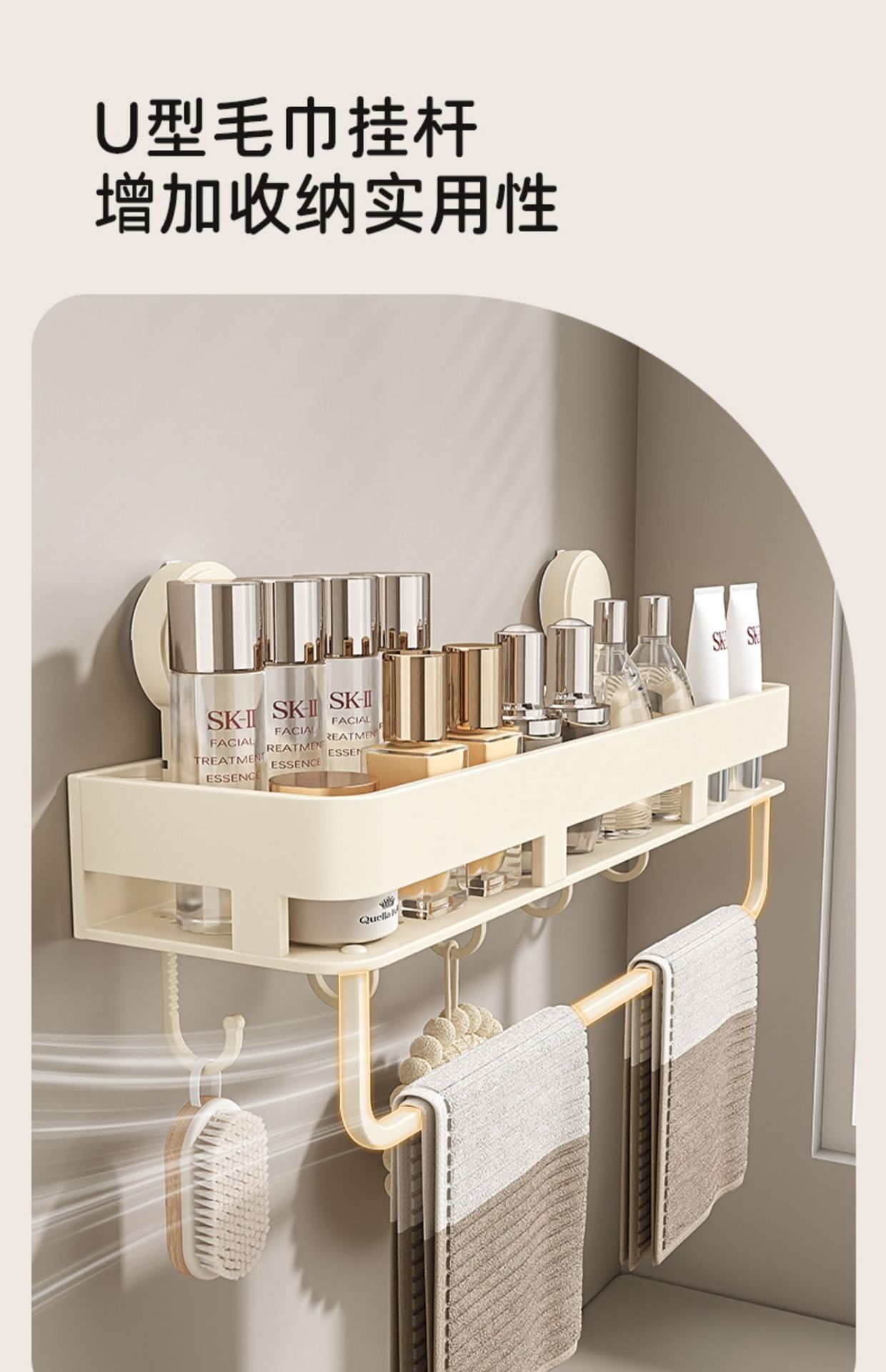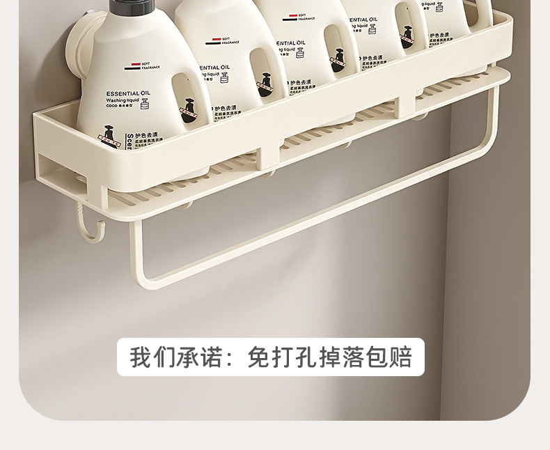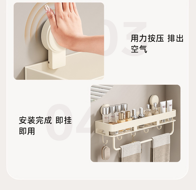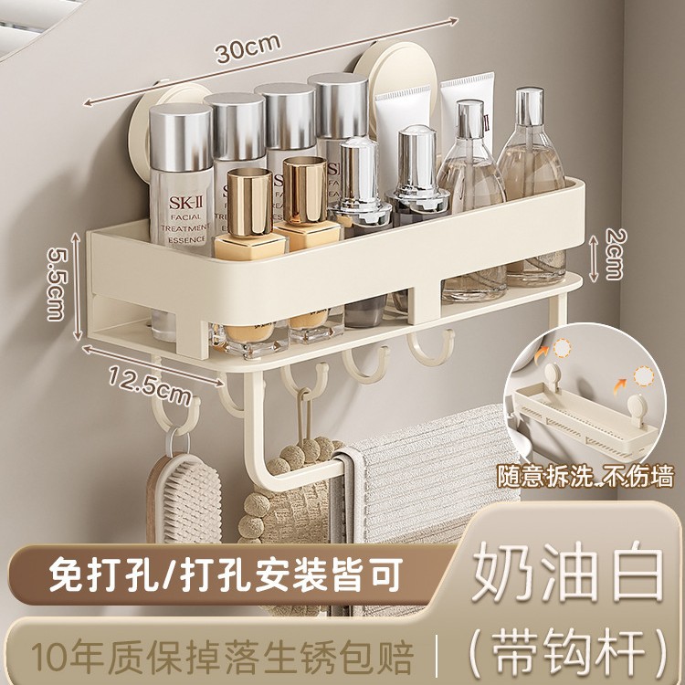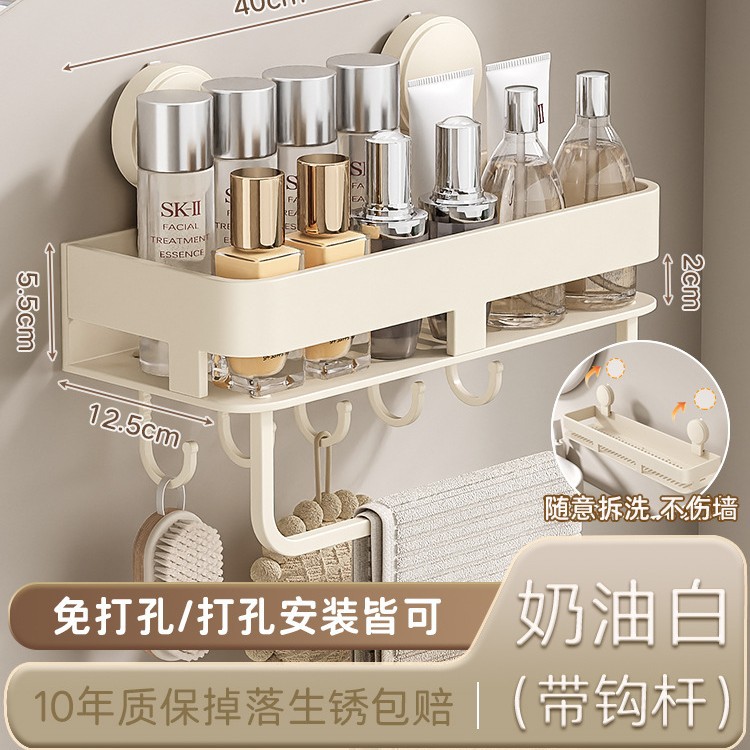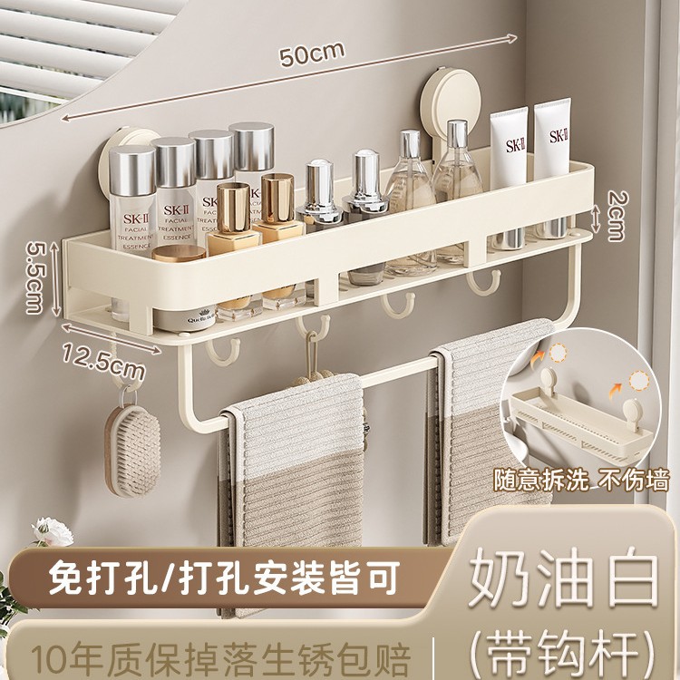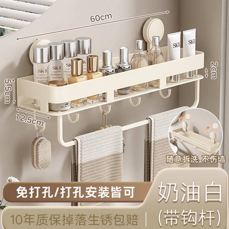 • [밀크화이트] 후크와 막대가 달린 수납선반 50CM (흡착컵)
