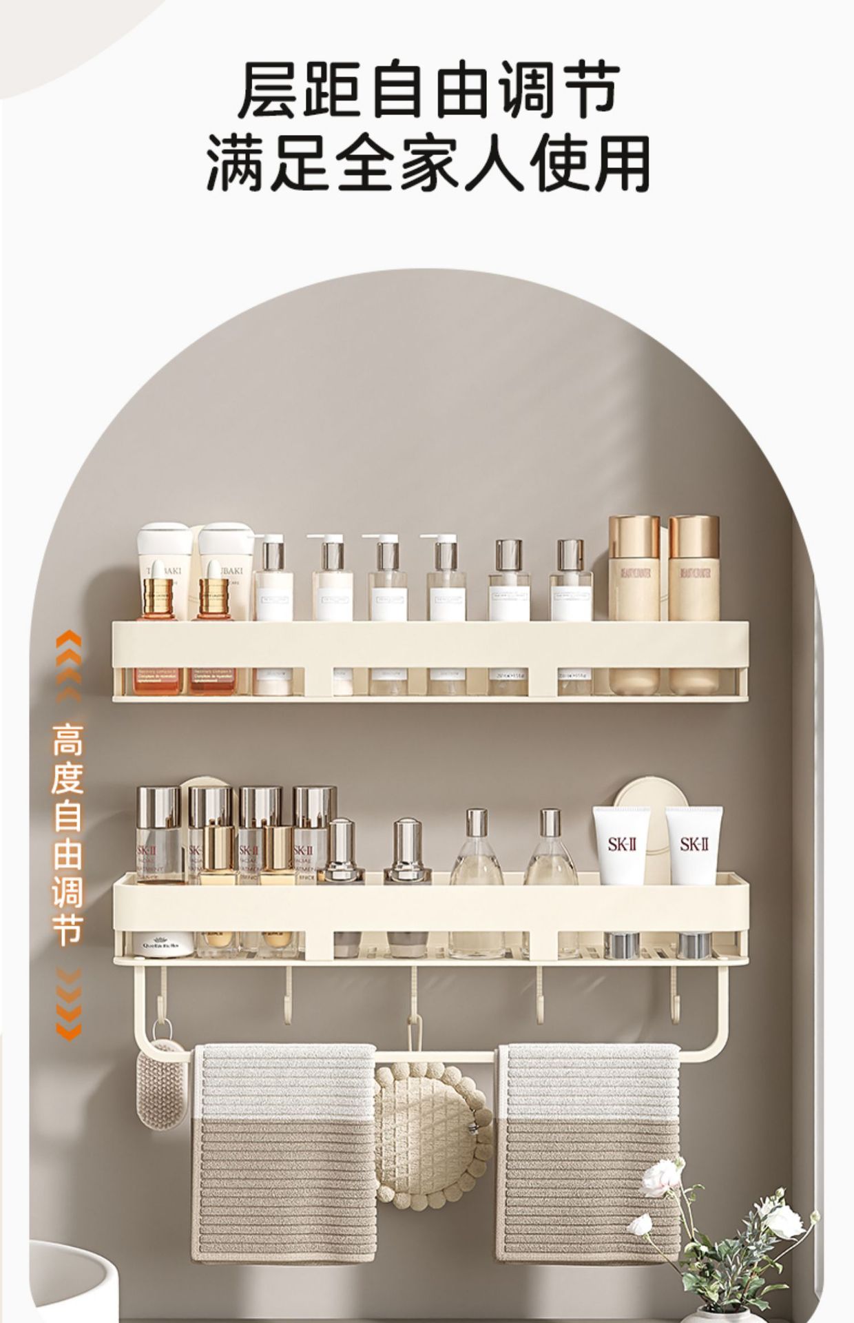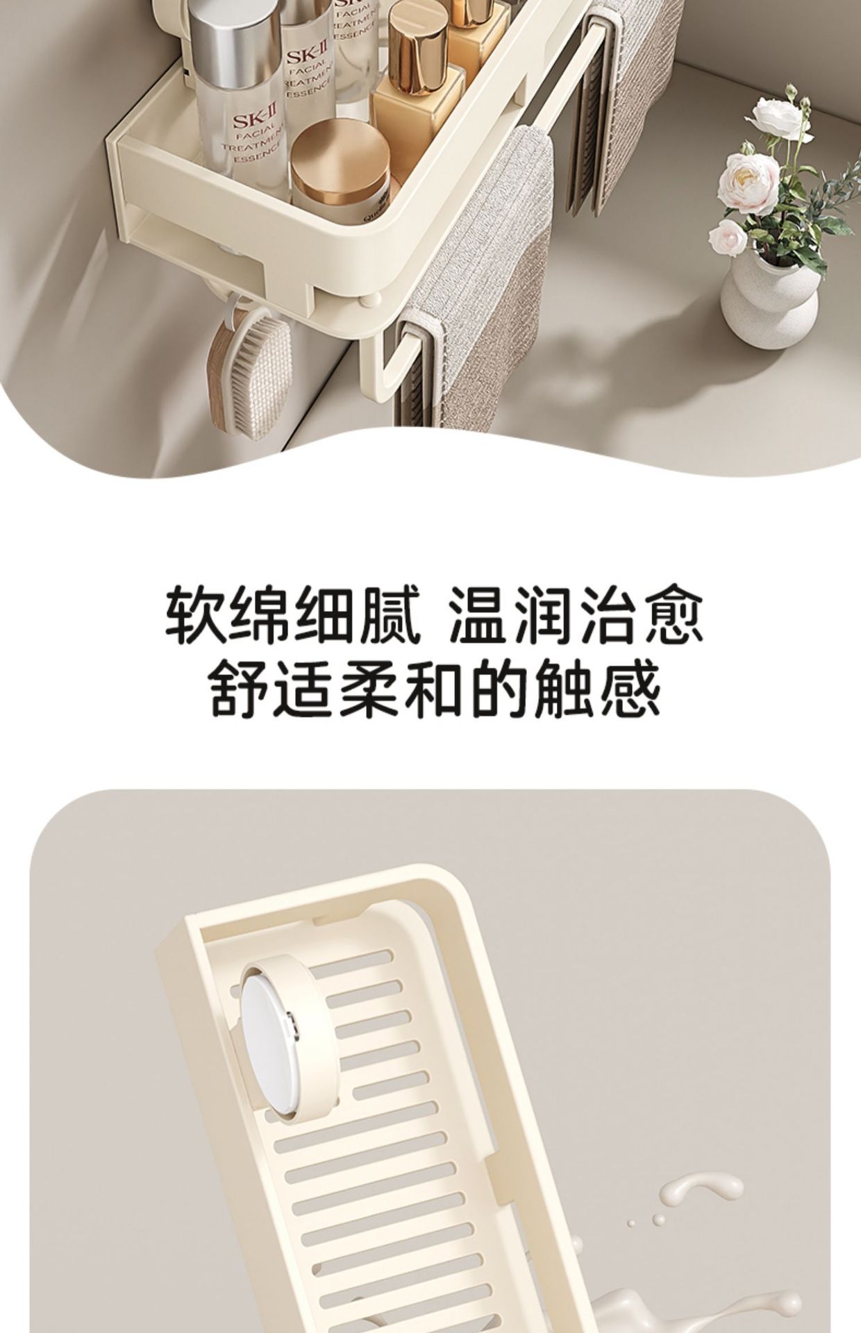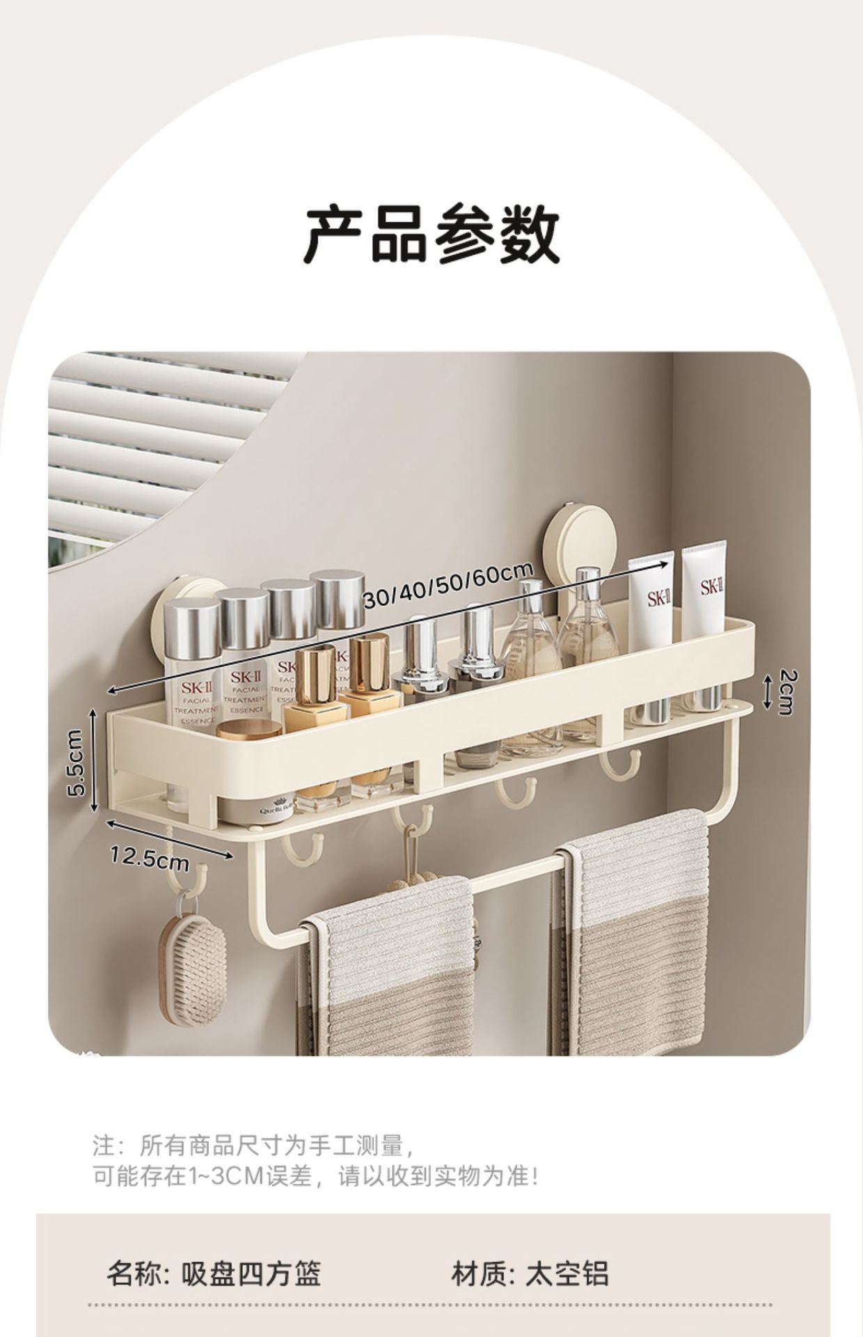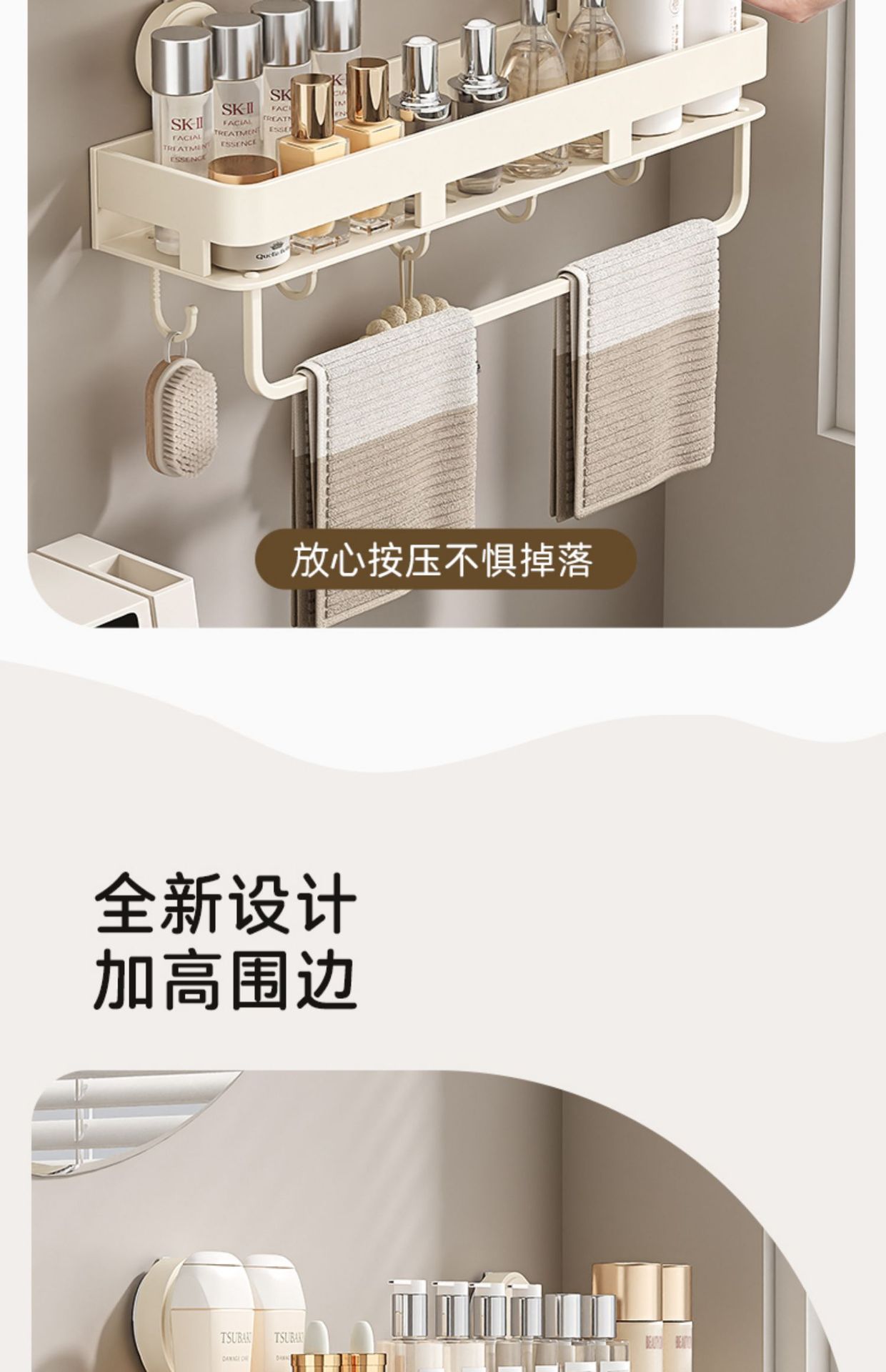• [밀크화이트] 후크와 막대가 달린 수납선반 50CM (흡착컵)