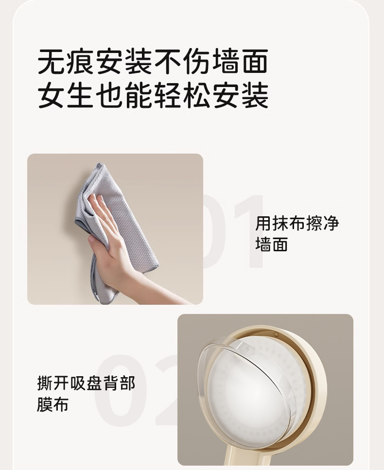 • [밀크화이트] 후크앤로드 수납선반 40CM (흡착컵)
