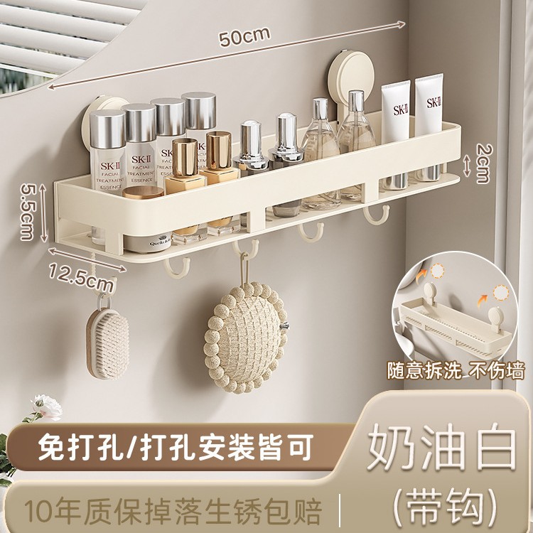 • [밀크화이트] 후크가 달린 수납선반 50CM (흡착컵)