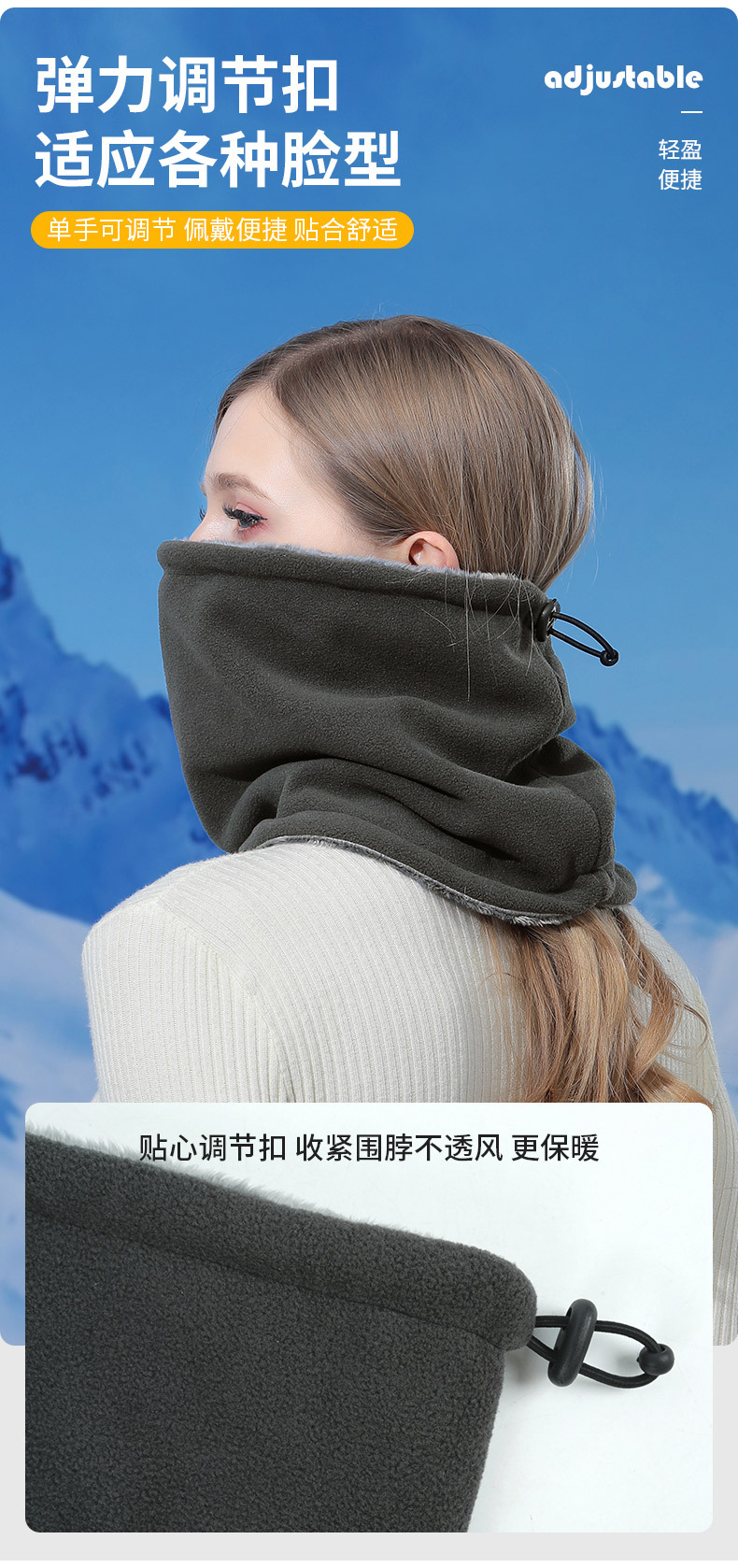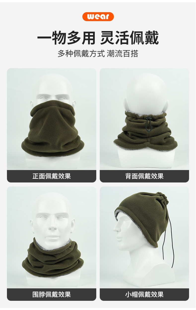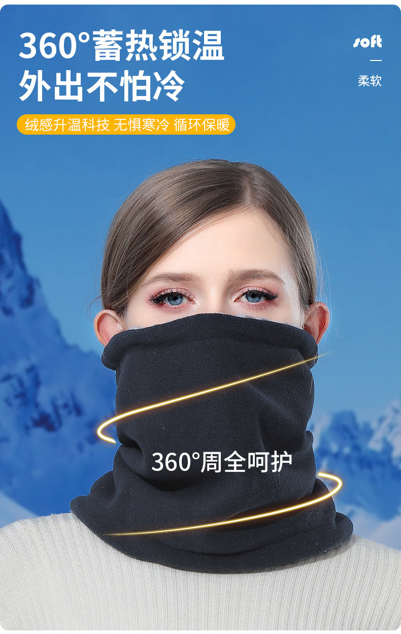 Ruidong 국경 야외 사이클링 스카프 더블 레이어 두꺼운 따뜻한 마스크 폴라 플리스 넥 후드 방풍 및 방한 스카프