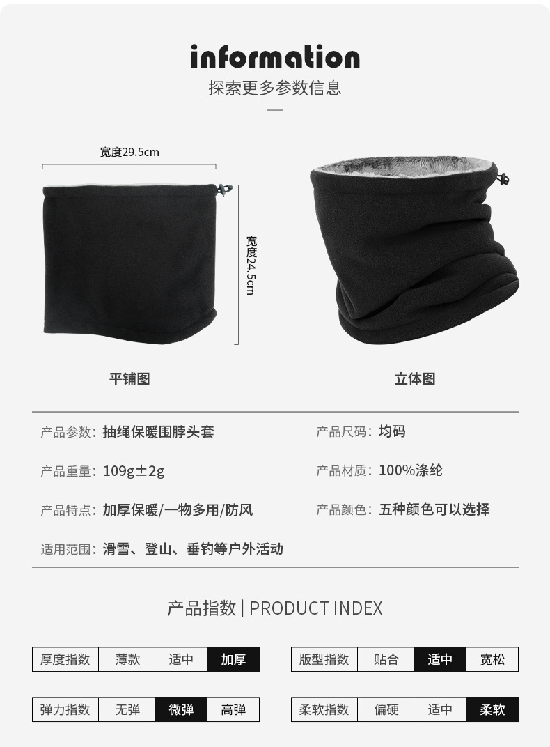 Ruidong 국경 야외 사이클링 스카프 더블 레이어 두꺼운 따뜻한 마스크 폴라 플리스 넥 후드 방풍 및 방한 스카프스토어 가기