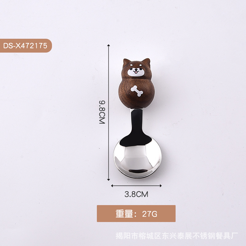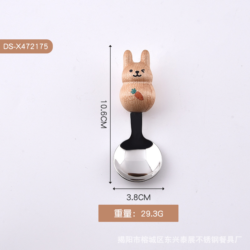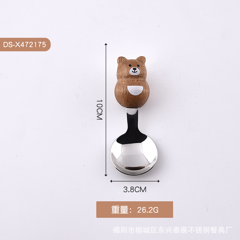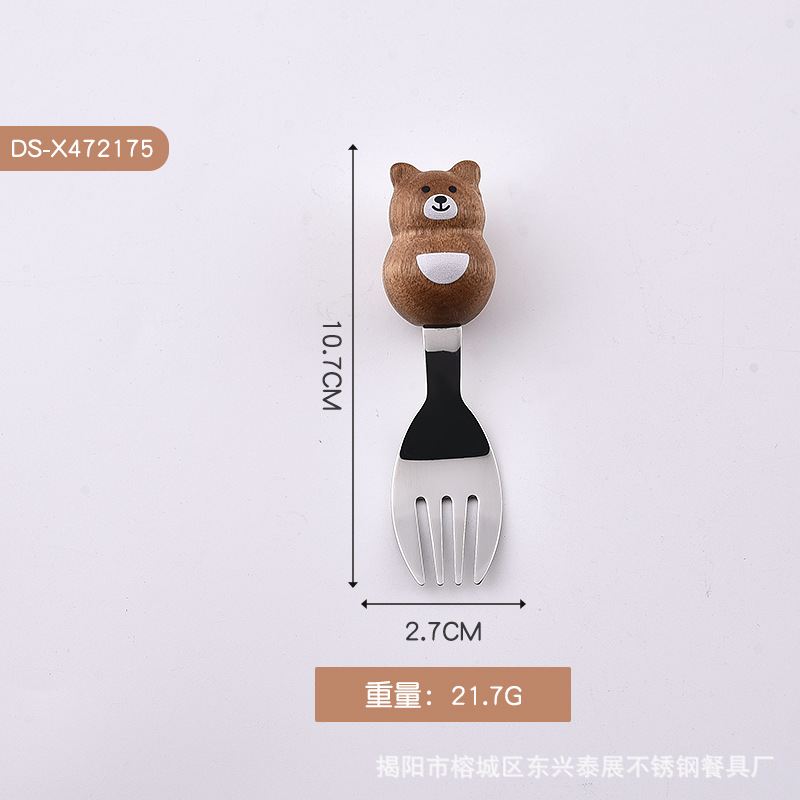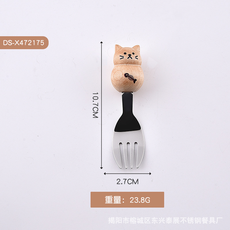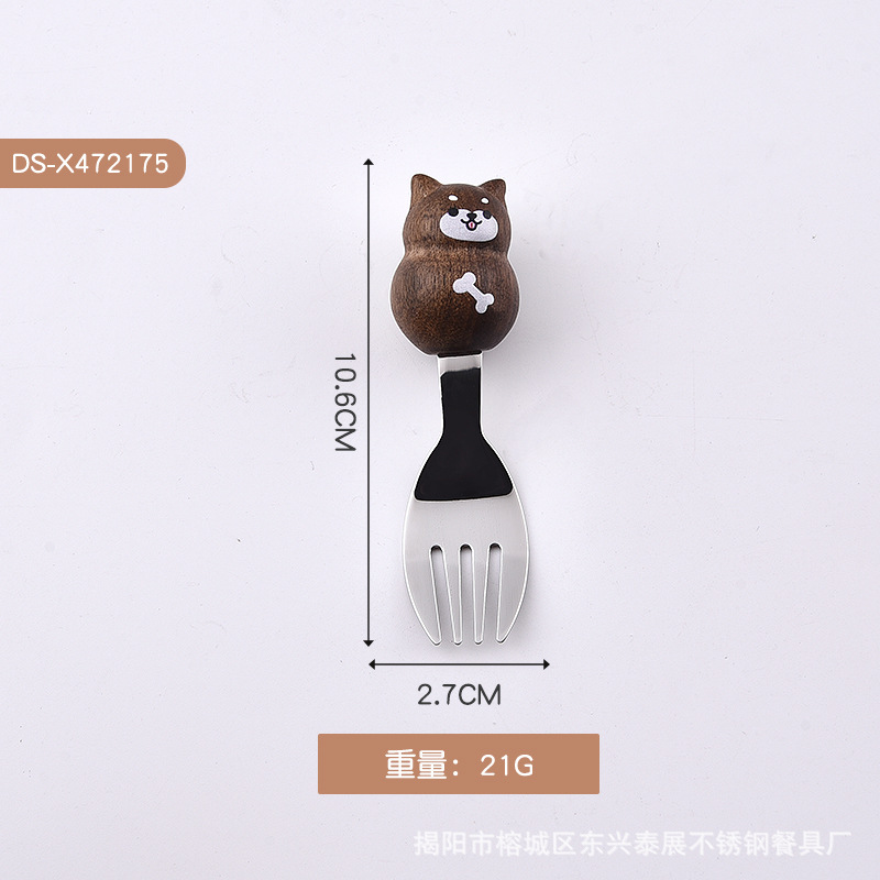 304 스테인리스 창조적 인 귀여운 나무 손잡이 숟가락 포크 차이 개 곰 토끼 고양이 어린이 포크 스푼 가구
