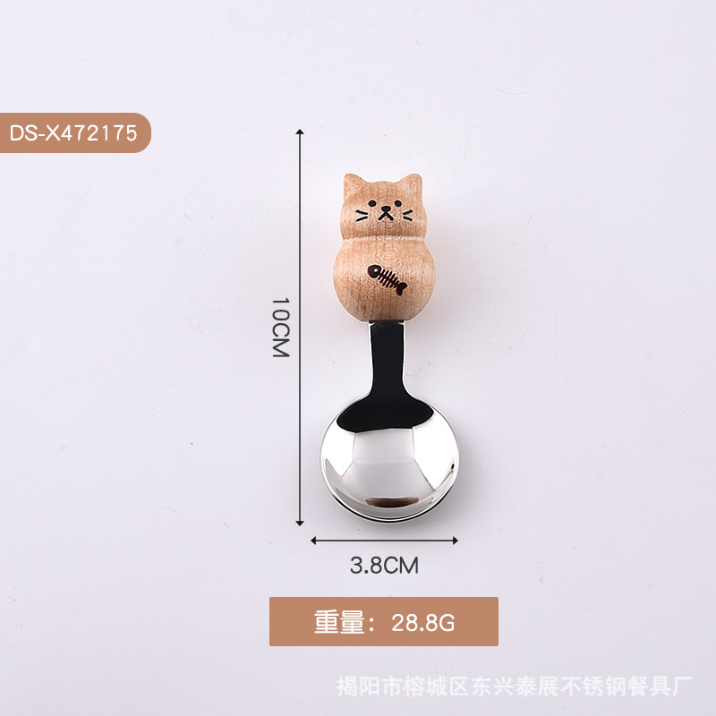 304 스테인리스 창조적 인 귀여운 나무 손잡이 숟가락 포크 차이 개 곰 토끼 고양이 어린이 포크 스푼 가구스토어 가기
