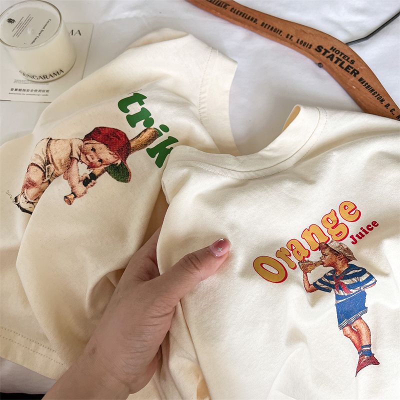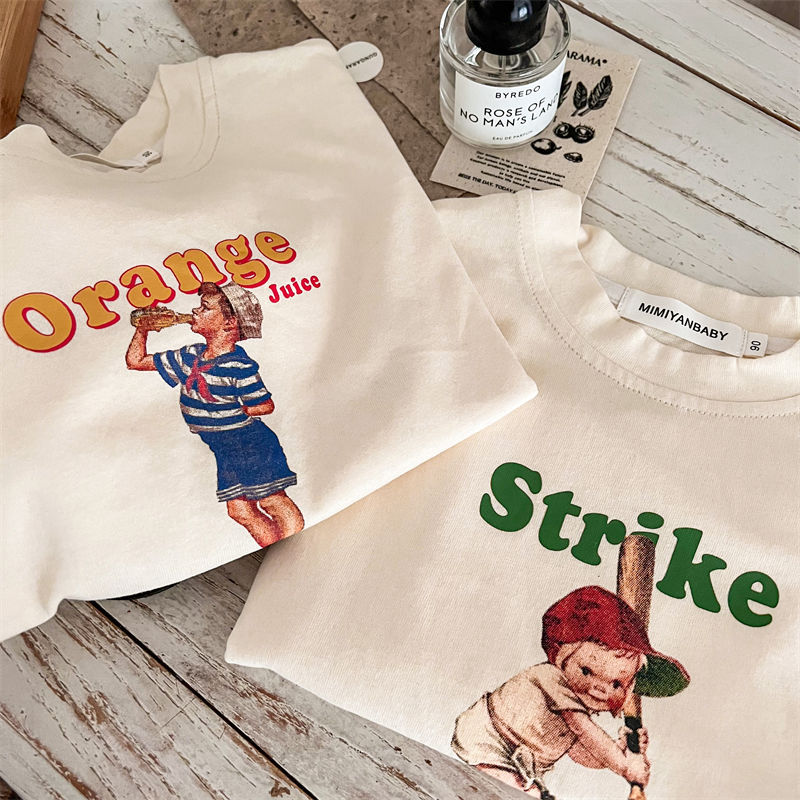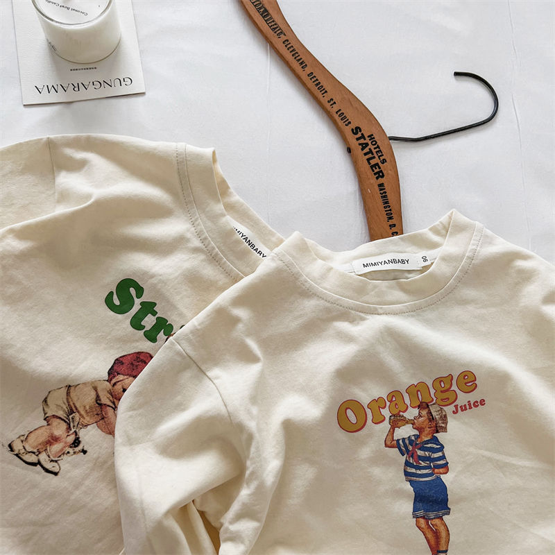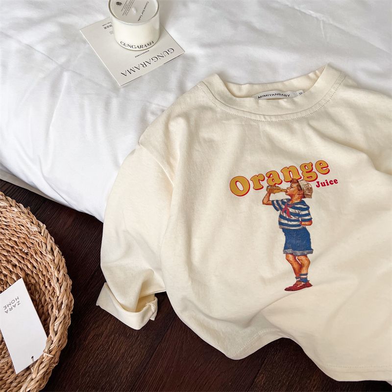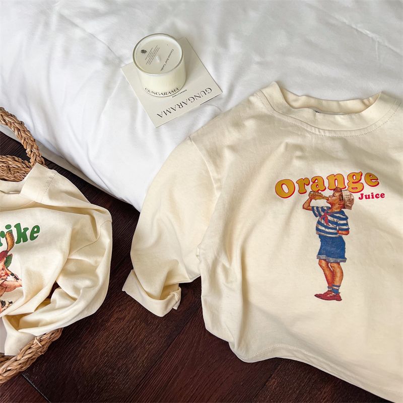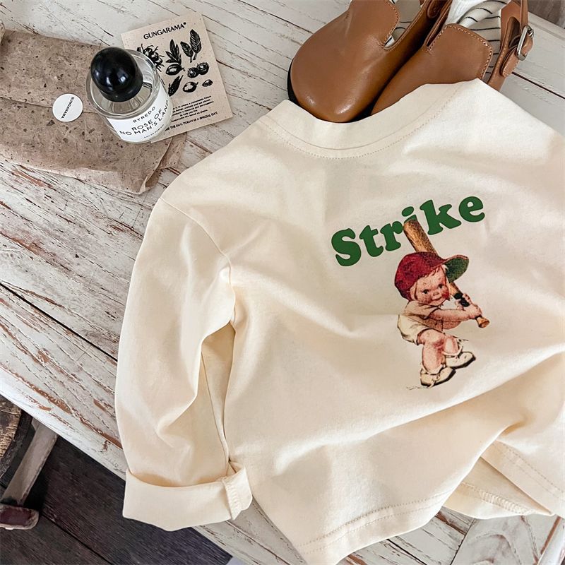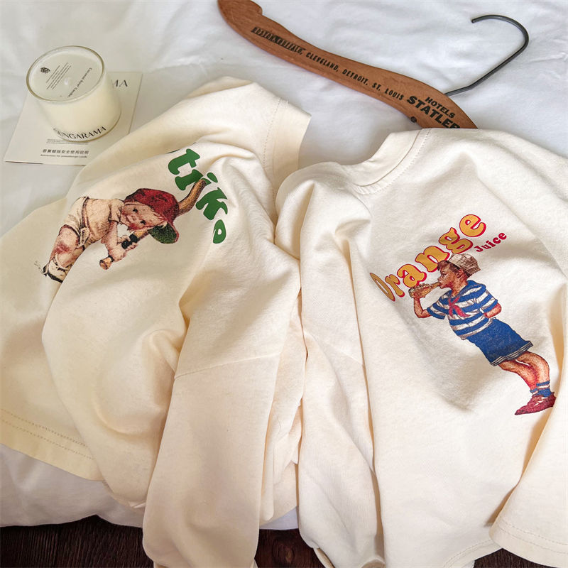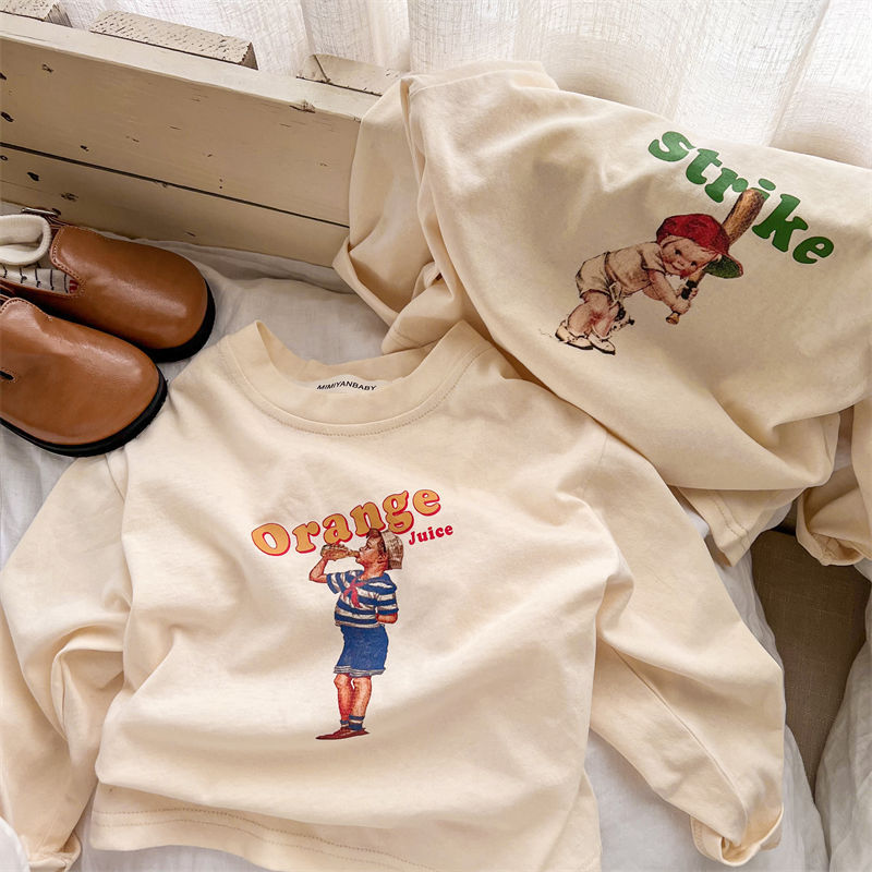 봄과 가을 새로운 한국 스타일 아기 소녀의 긴 소매 느슨한 티셔츠 소년의베이스 셔츠 유행 만화 탑 0031A104스토어 가기