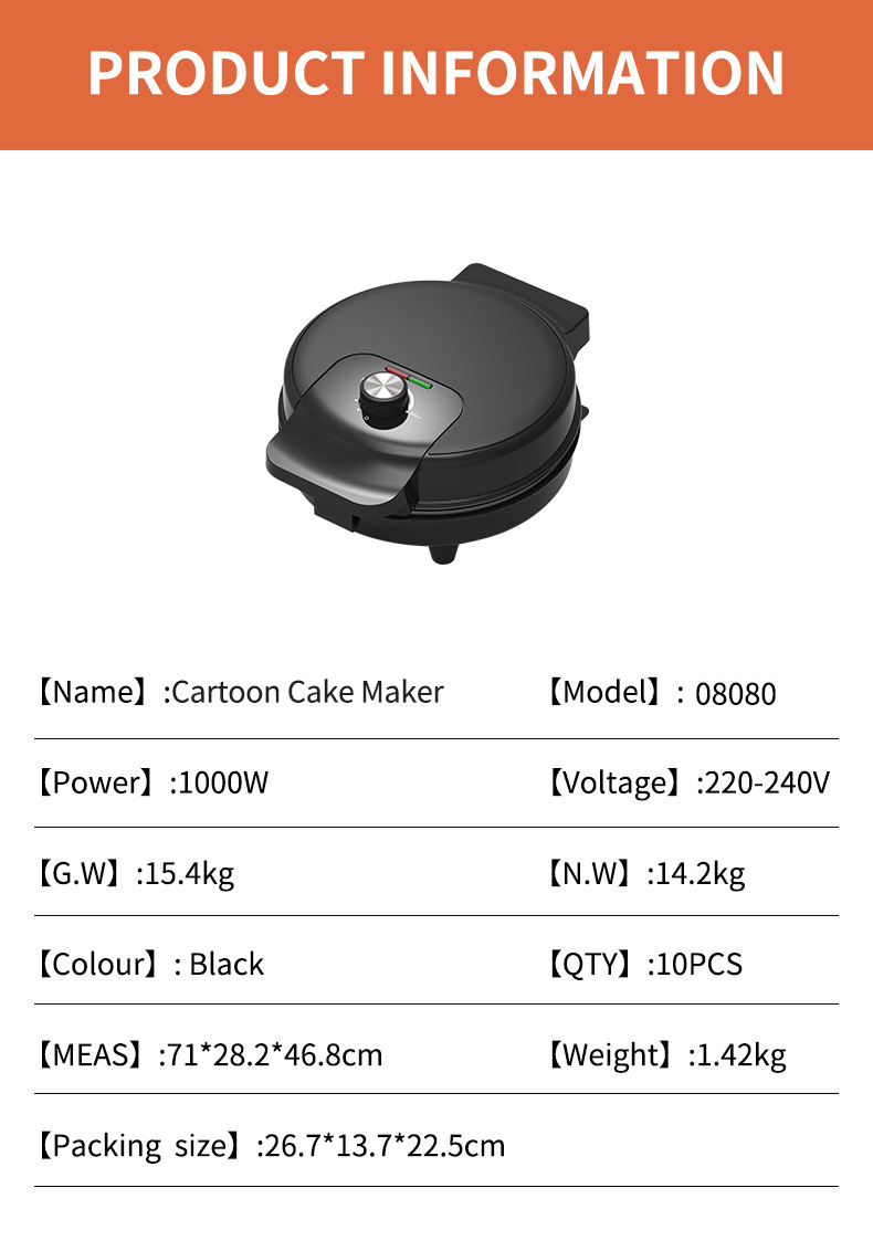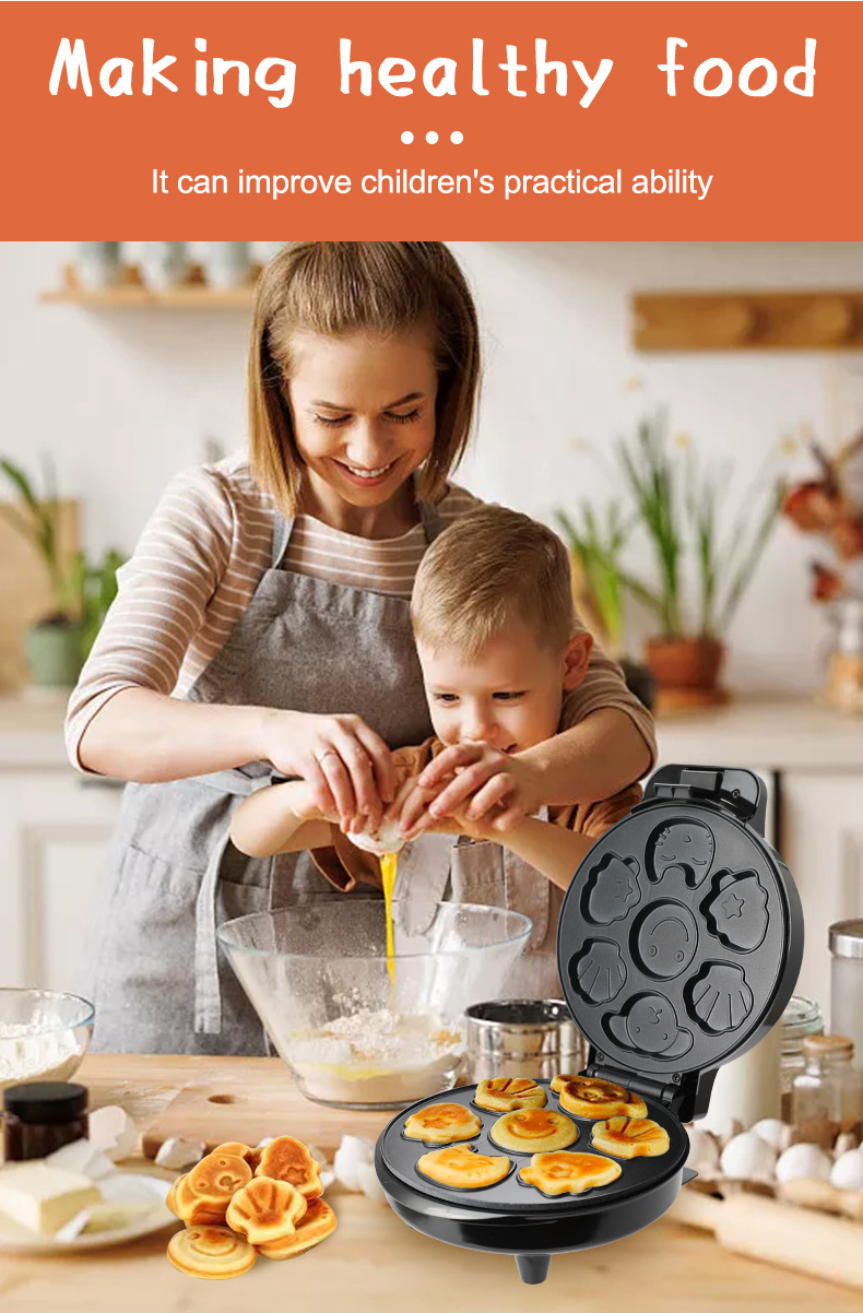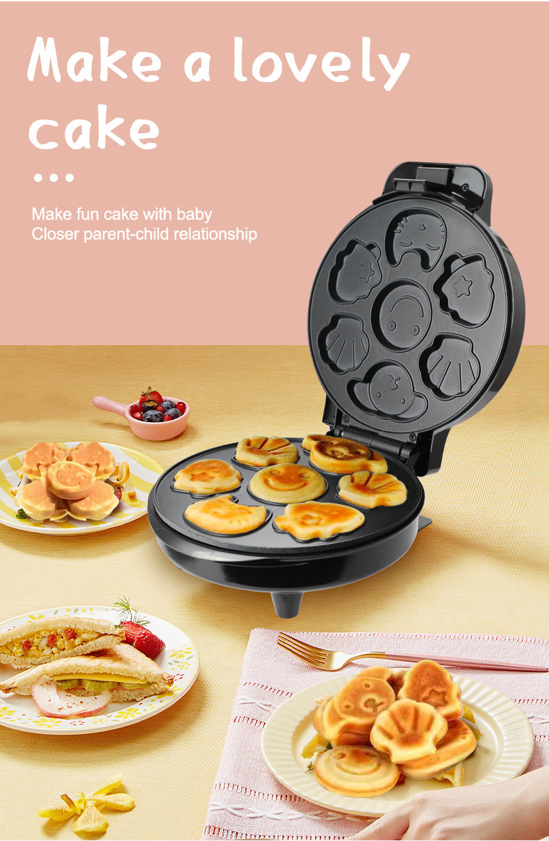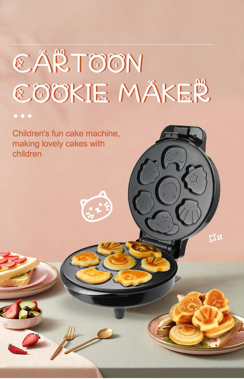 국경 간 어린이 만화 케이크 기계 가정용 1000W 양면 난방 전기 케이크 팬 베이킹 빵 쿠키 메이커