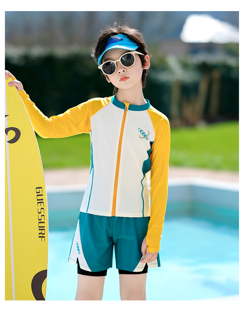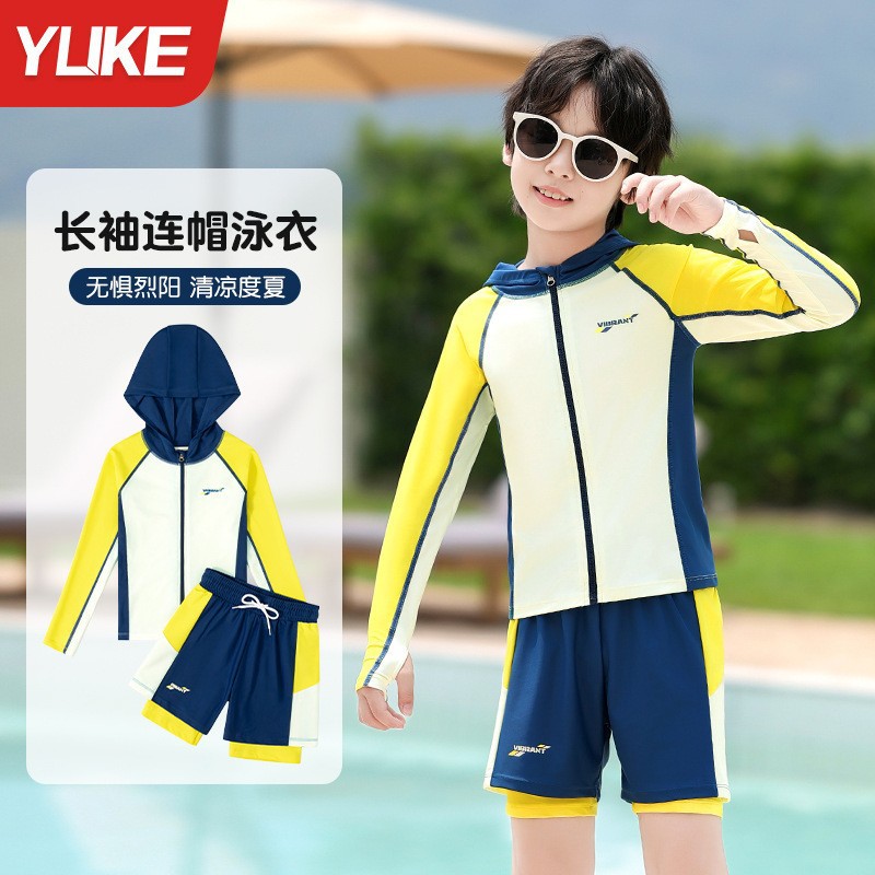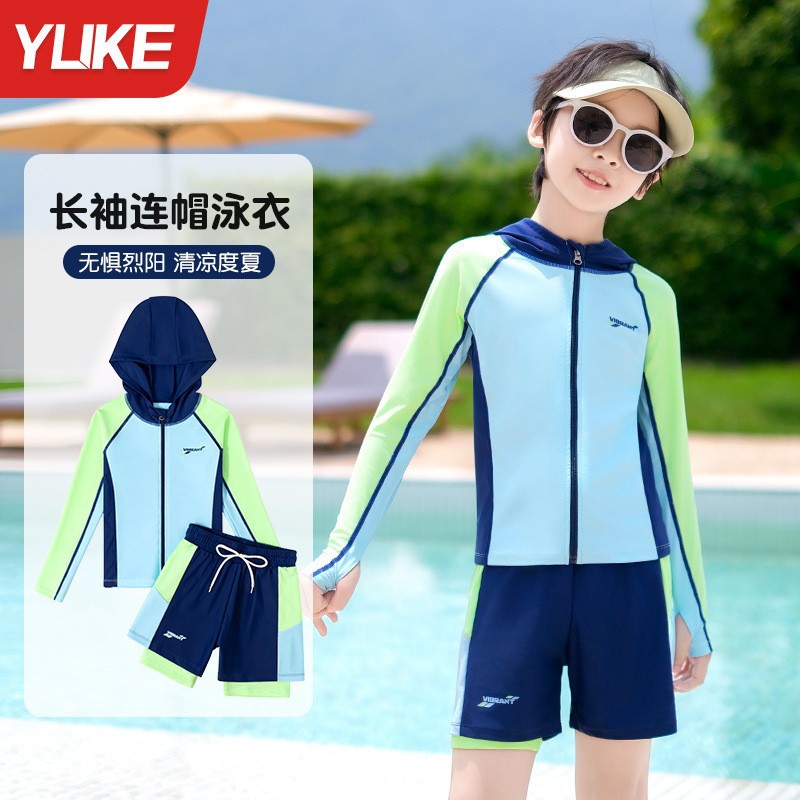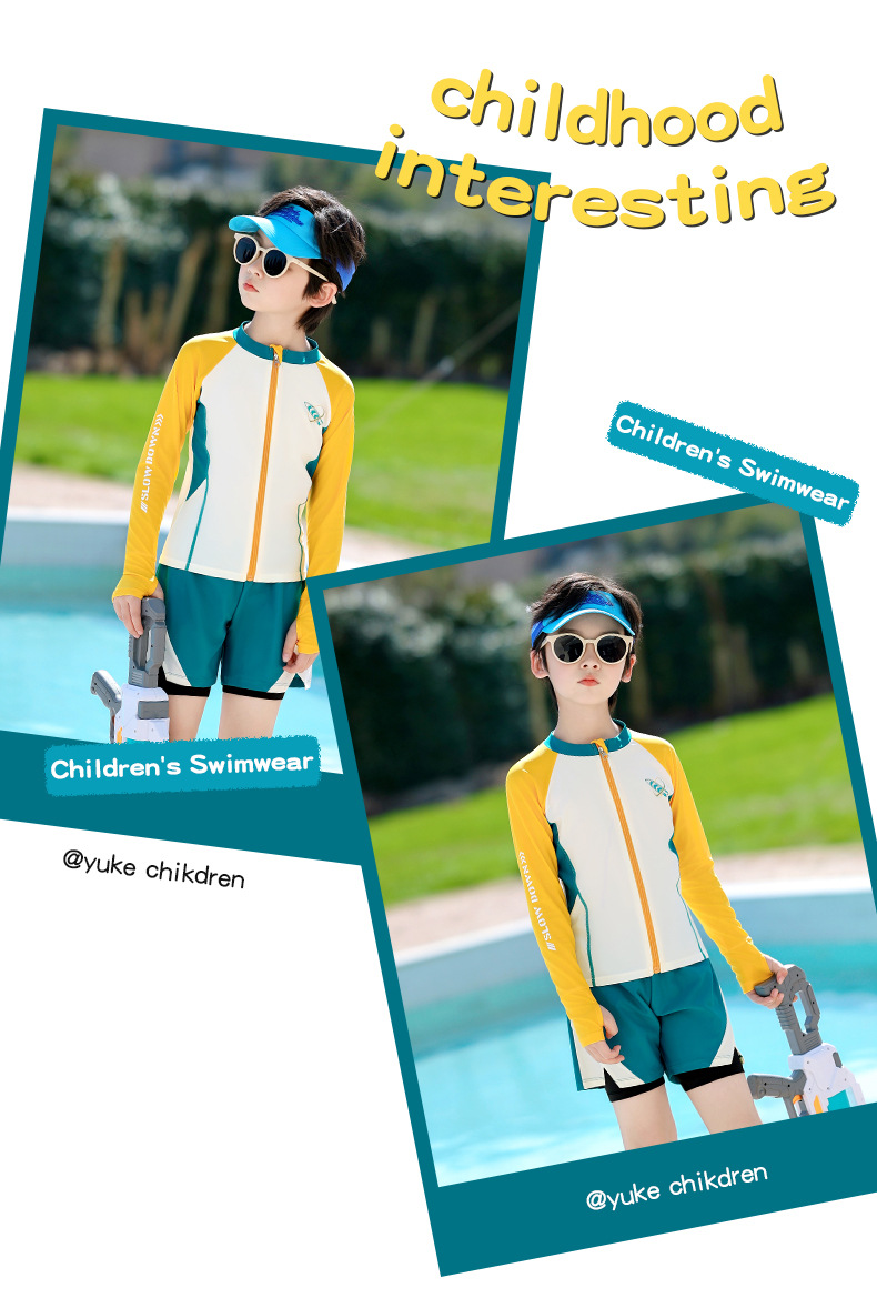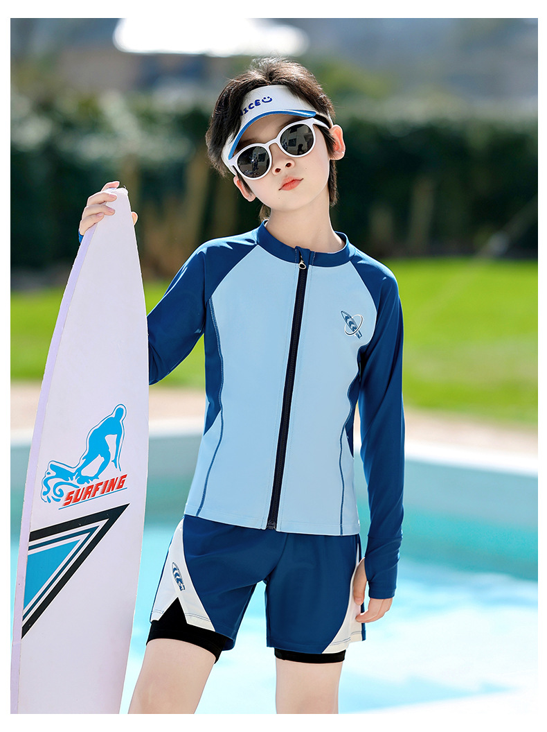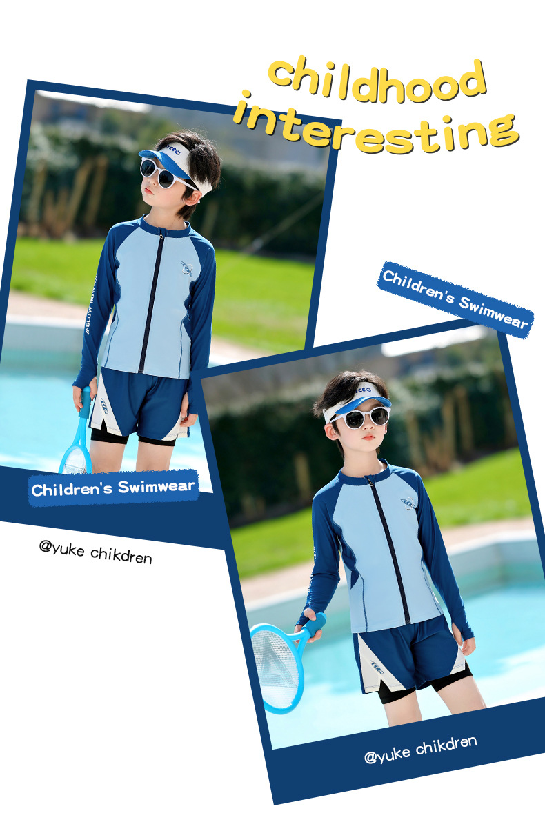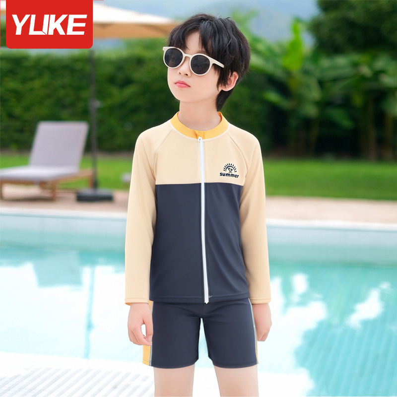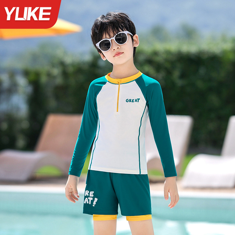 아동용 수영복, 남아용, 중대형 아동용 스플릿 신형 남아용 수영복, 수영복, 자외선 차단 수영 온천 속건 슈트
