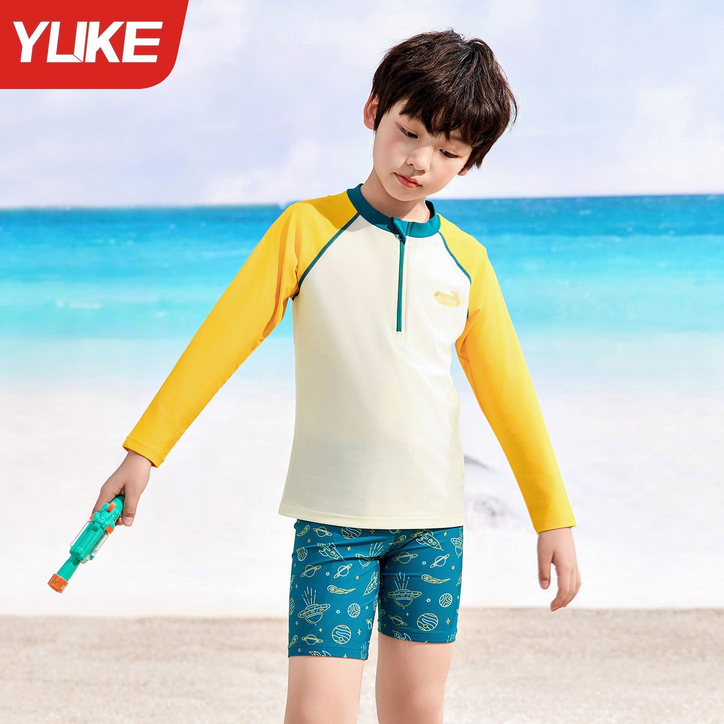 아동용 수영복, 남아용, 중대형 아동용 스플릿 신형 남아용 수영복, 수영복, 자외선 차단 수영 온천 속건 슈트스토어 가기
