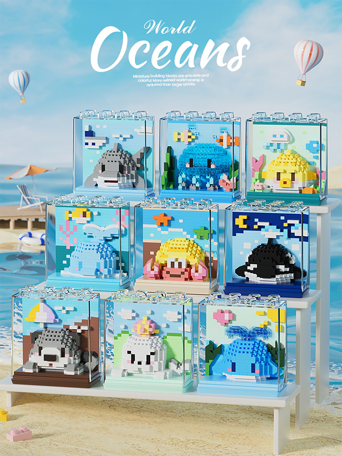 [도매 세대] 레고 장난감 장식품 마이크로 입자와 호환되는 먼지 덮개를 가진 해양 작은 생물 조립 빌딩 블록스토어 가기