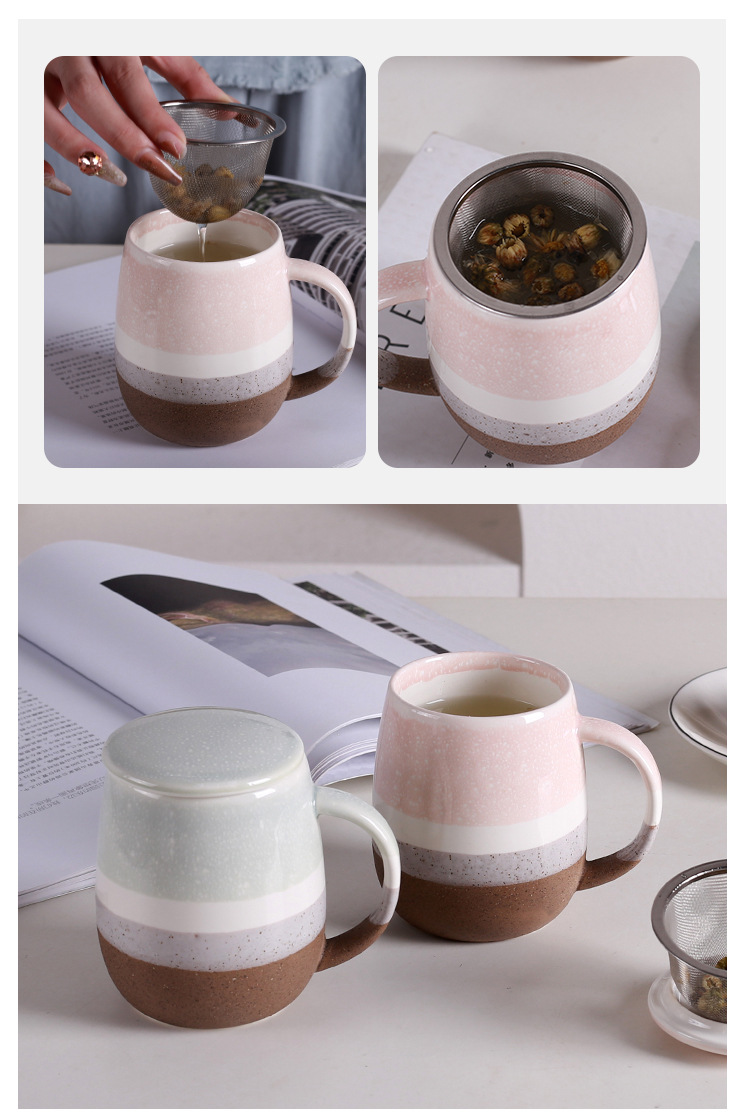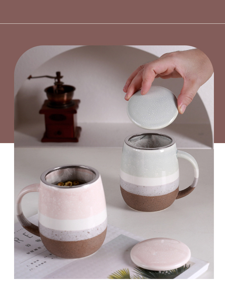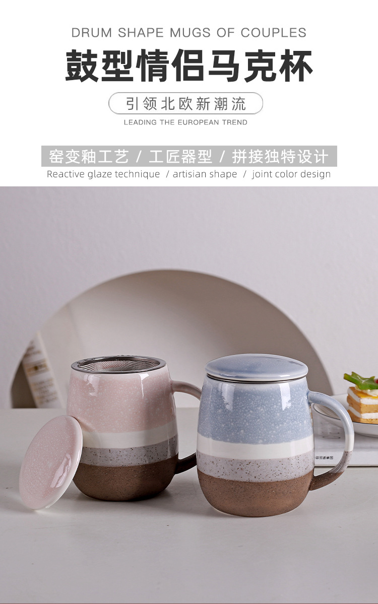 국경을 넘는 선물용 고급 차와 물 분리형 찻잔 가정용 기숙사 아침식사 대용량 머그컵