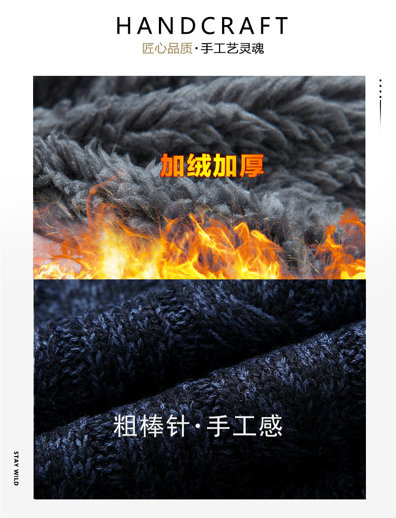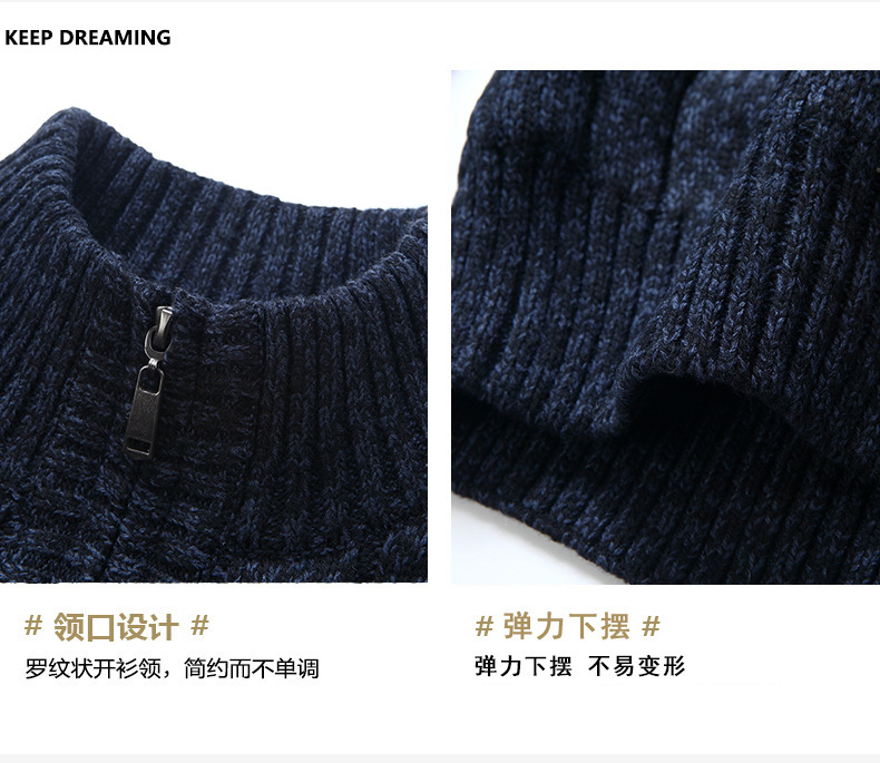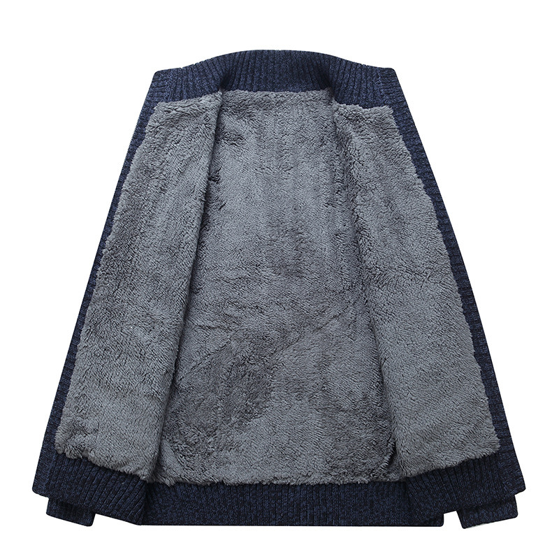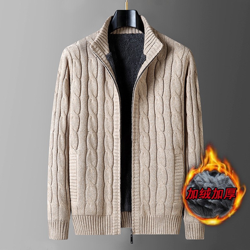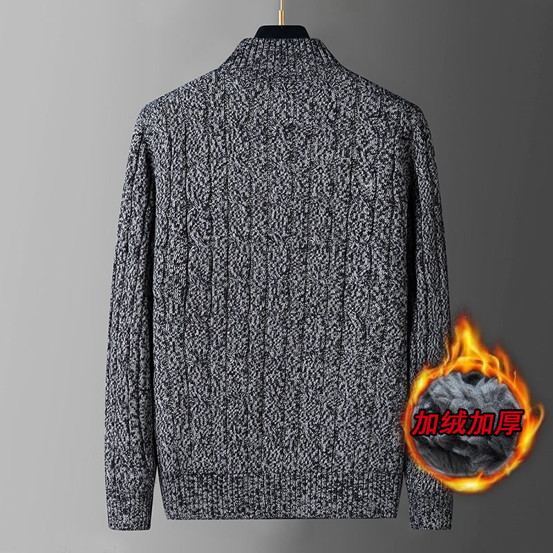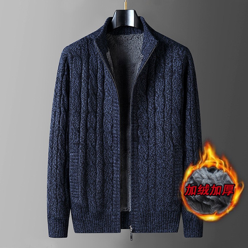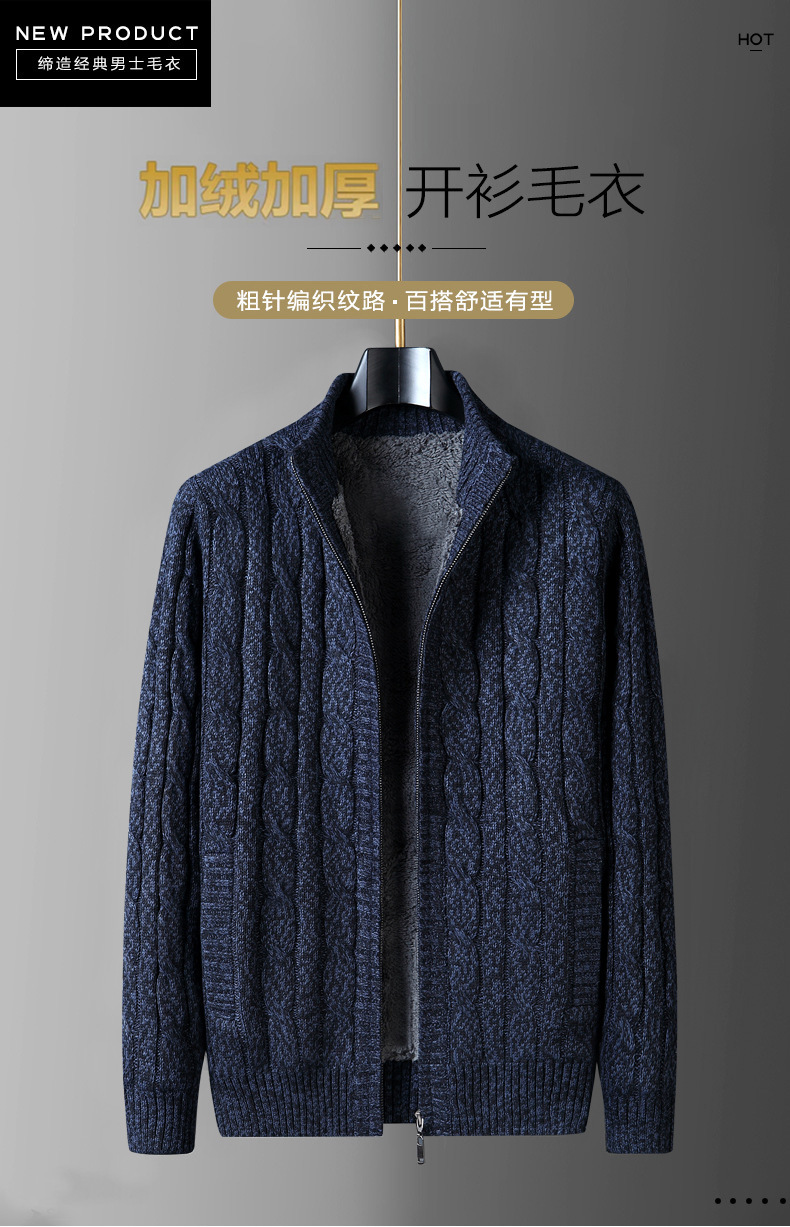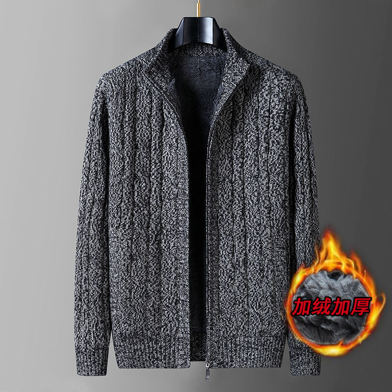 크로스보더 가을 겨울 두꺼운 남성 캐주얼 기모 보온 스탠드 칼라 가디건 니트 자켓 단색 상의스토어 가기