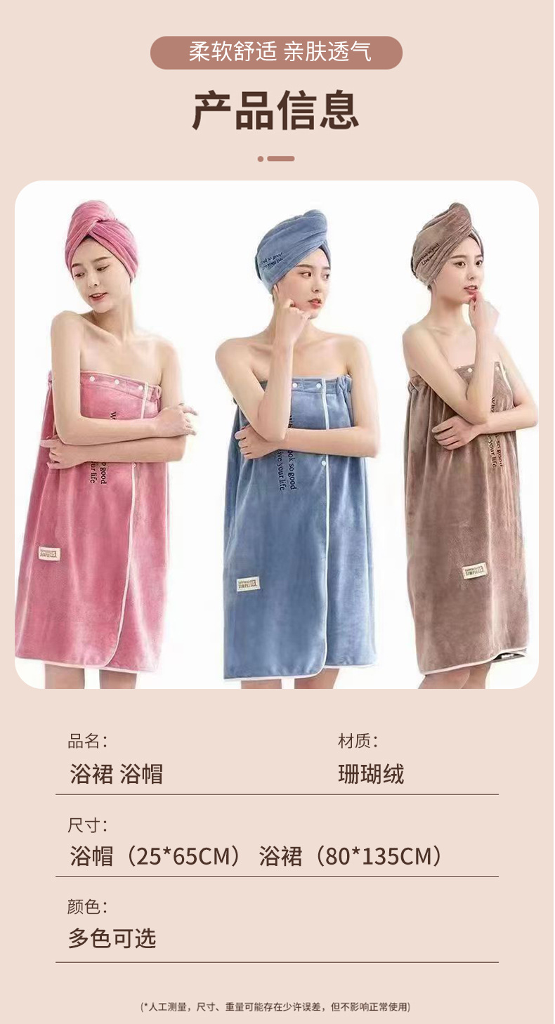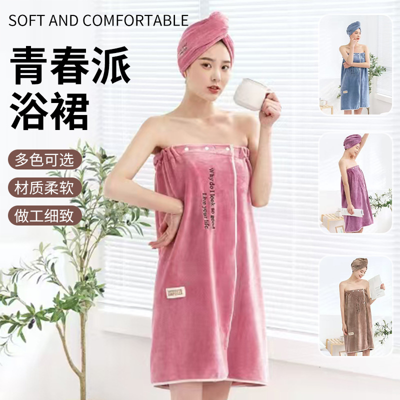 새로운 스타일의 산호 벨벳 청소년 스타일 여성용 튜브탑 성인 목욕 가운, 부드럽고 흡수력이 뛰어나며 속건성, 목욕 가운, 목욕 가운스토어 가기
