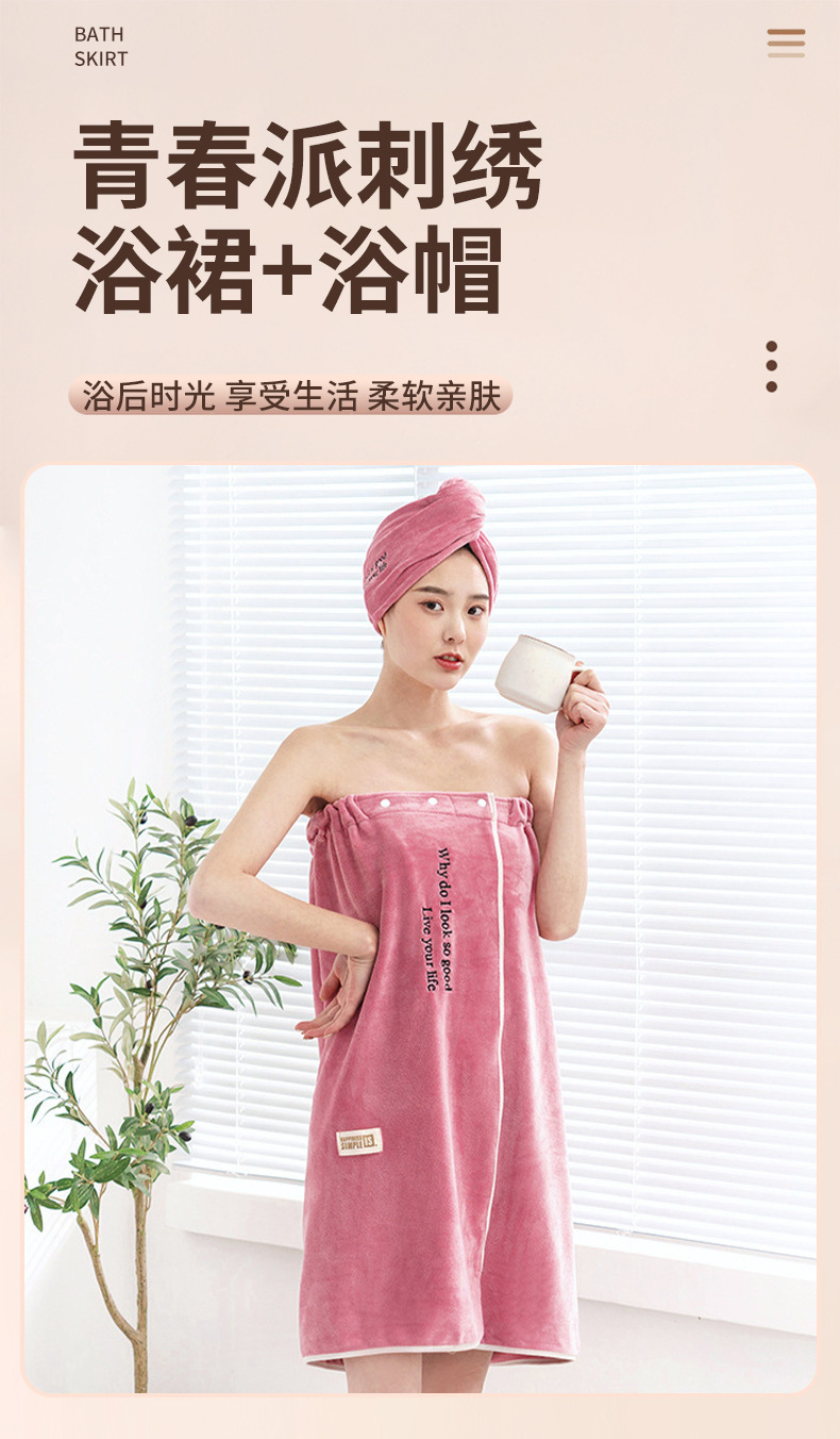 새로운 스타일의 산호 벨벳 청소년 스타일 여성용 튜브탑 성인 목욕 가운, 부드럽고 흡수력이 뛰어나며 속건성, 목욕 가운, 목욕 가운