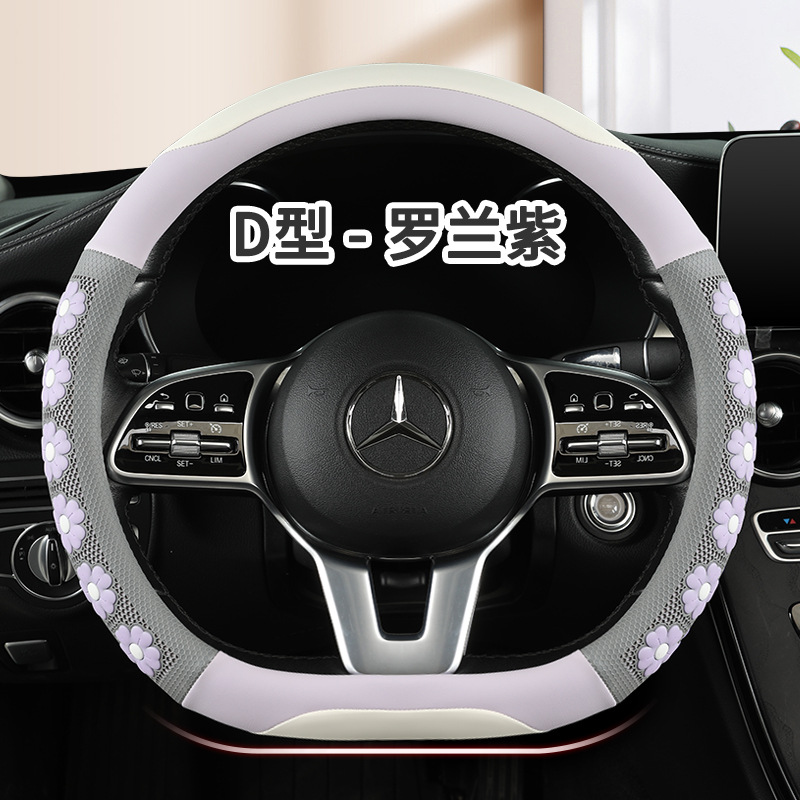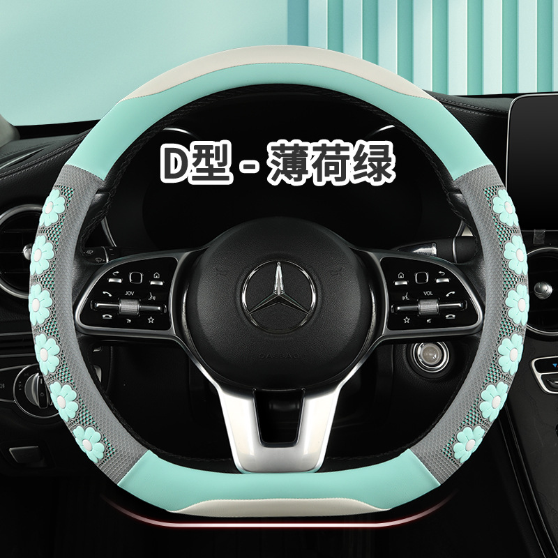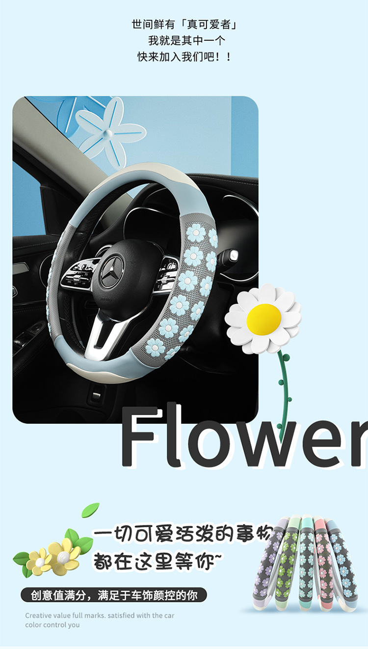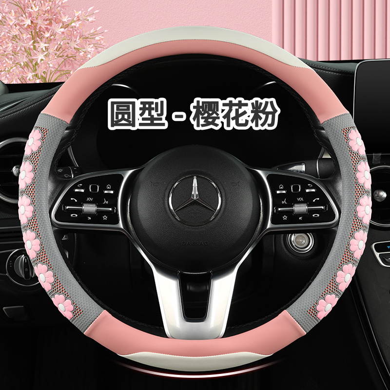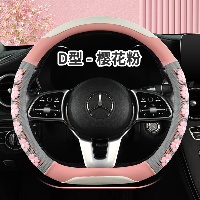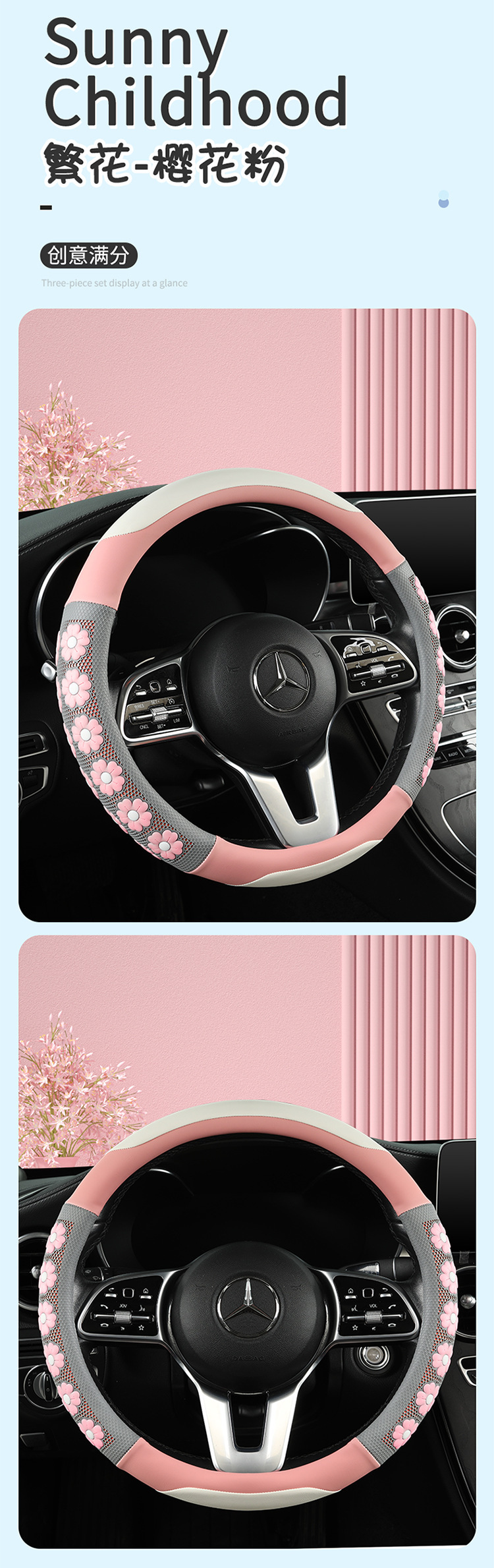 공장 직접 공급 25 새로운 스티어링 휠 커버 여신 만화 가죽 3D 꽃 양각 핸들 세트 소녀 스타일 손 손잡이 세트스토어 가기
