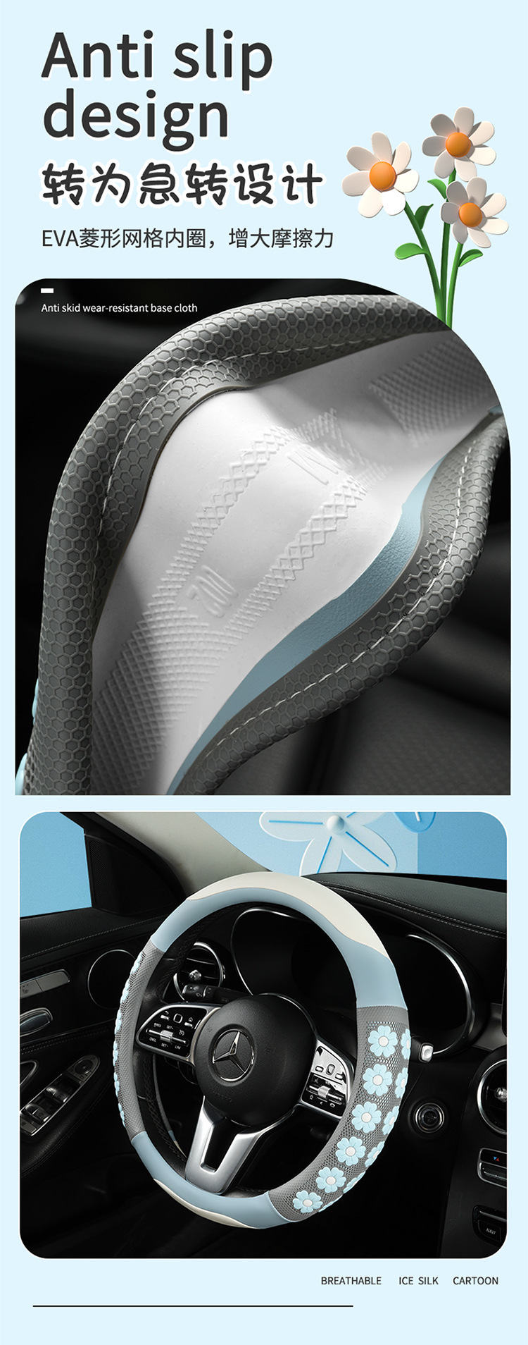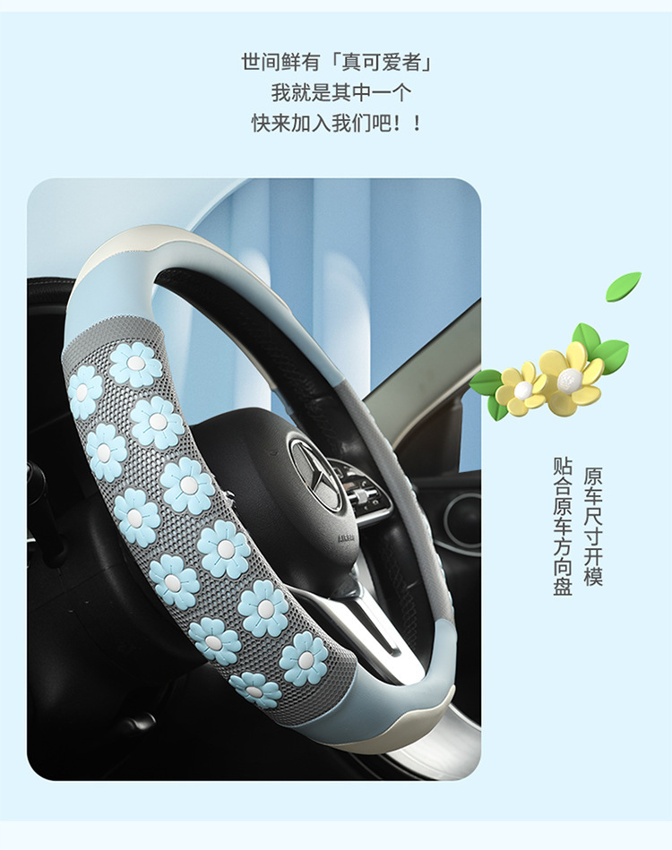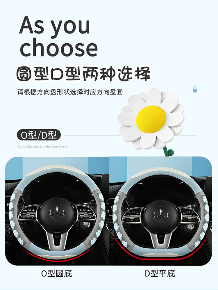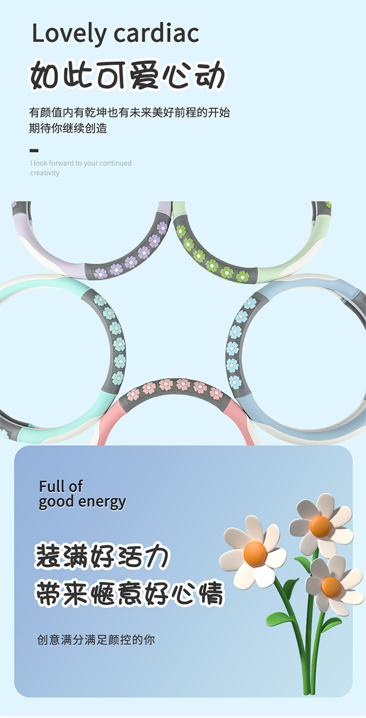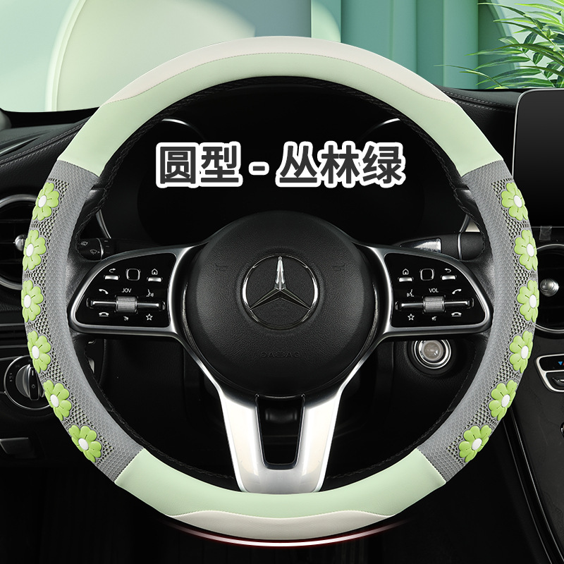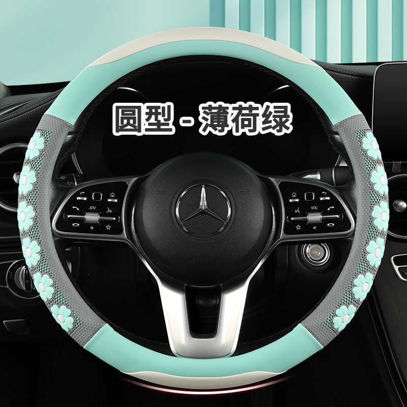 공장 직접 공급 25 새로운 스티어링 휠 커버 여신 만화 가죽 3D 꽃 양각 핸들 세트 소녀 스타일 손 손잡이 세트스토어 가기