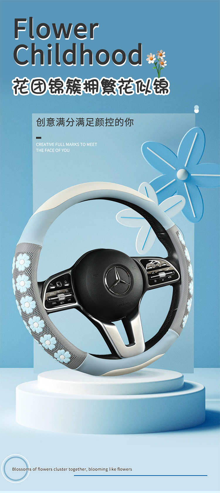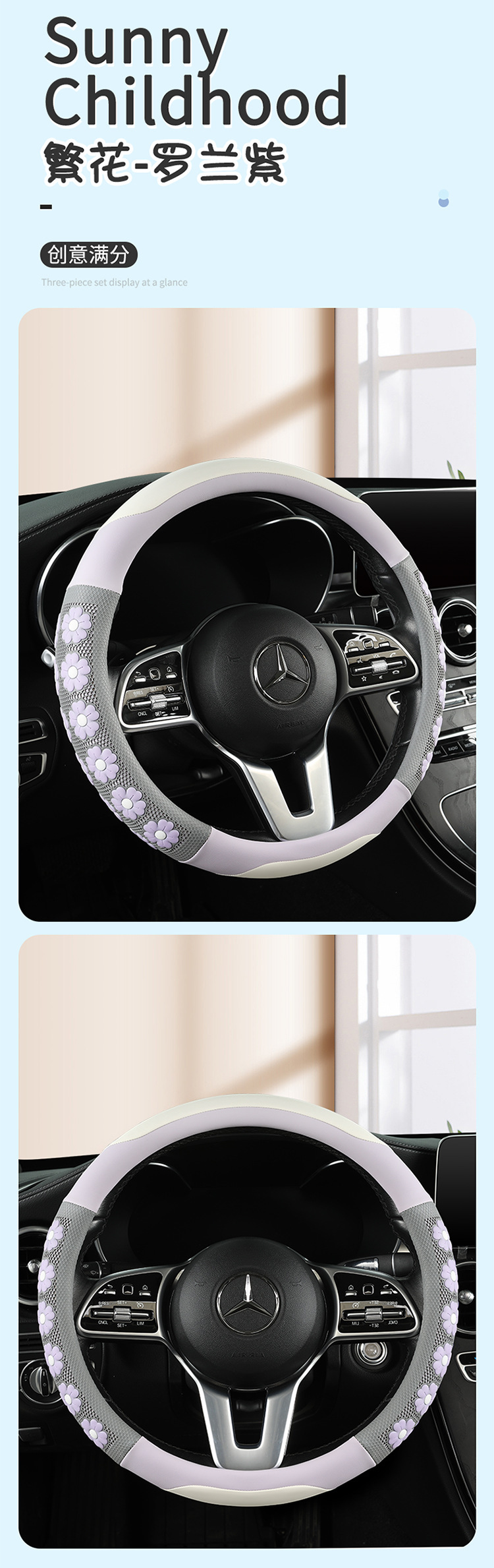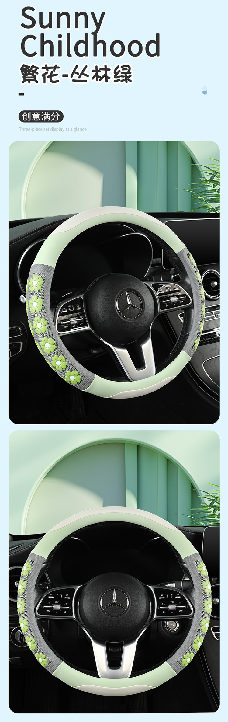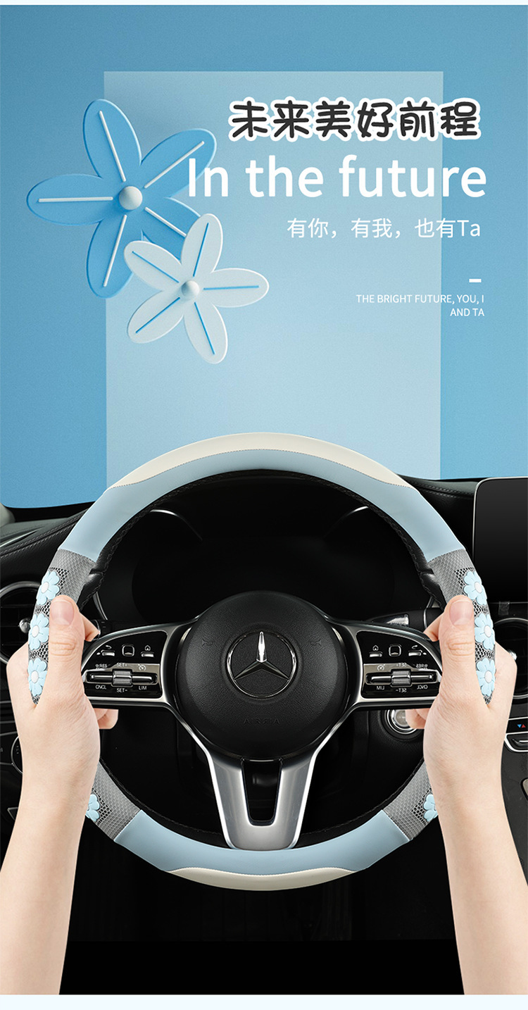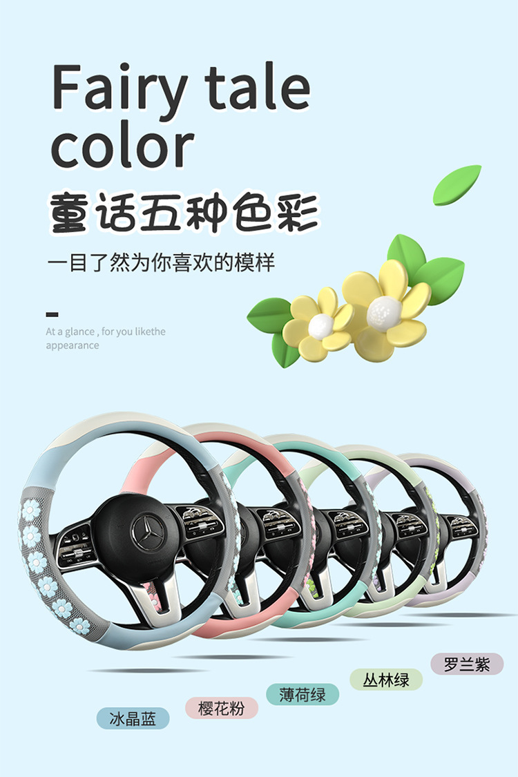 공장 직접 공급 25 새로운 스티어링 휠 커버 여신 만화 가죽 3D 꽃 양각 핸들 세트 소녀 스타일 손 손잡이 세트
