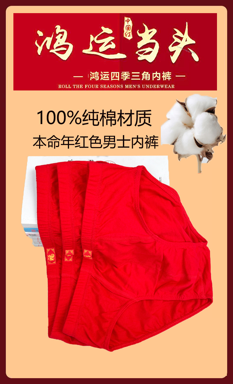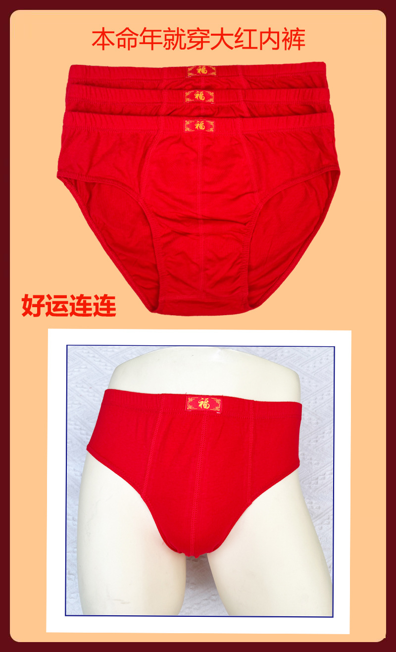 100% 면 남성 순면 속옷 대형 레드 브리프 브닝 니안 Fuzi 미드 웨이스트 팬츠 느슨한 편안한 속옷스토어 가기