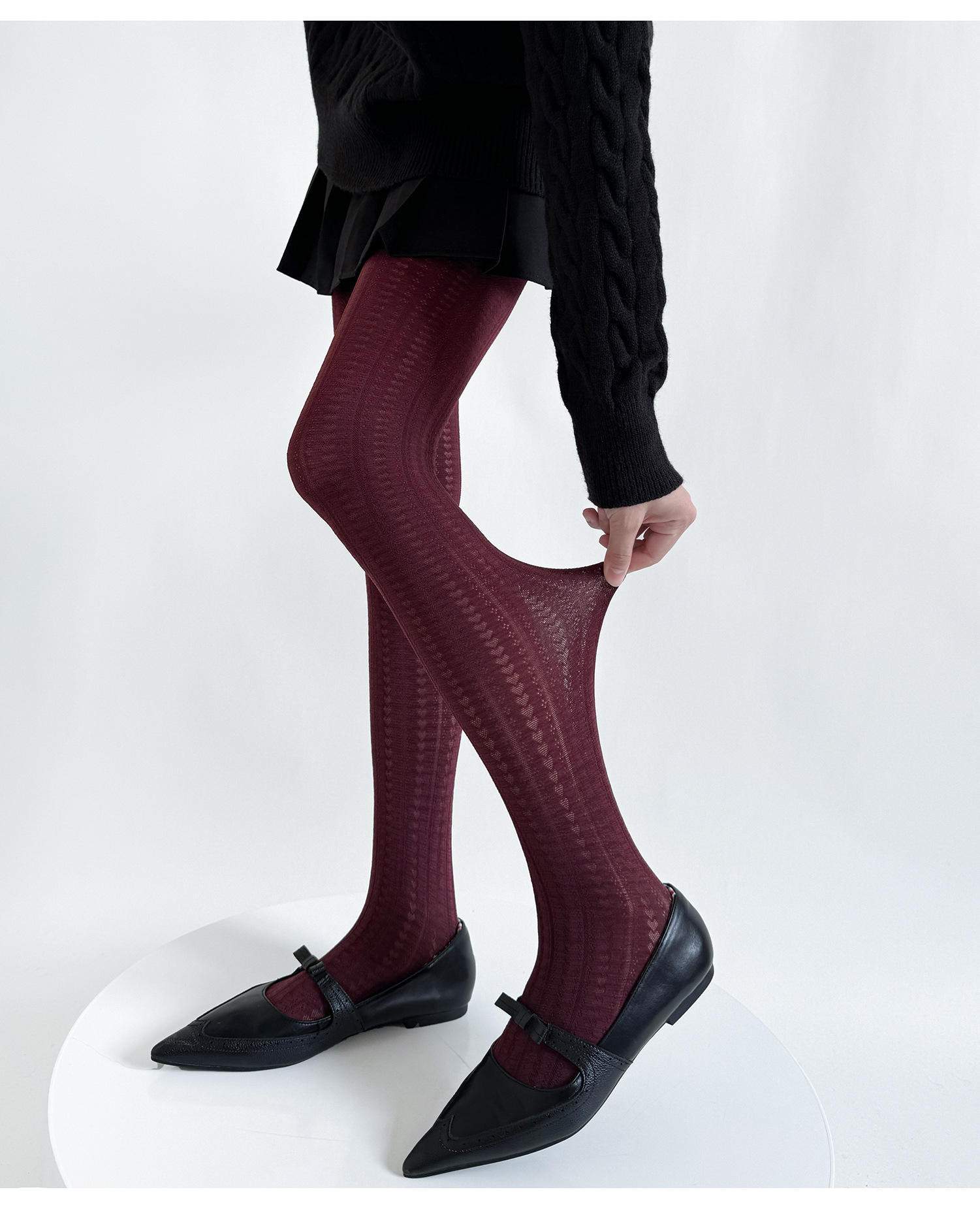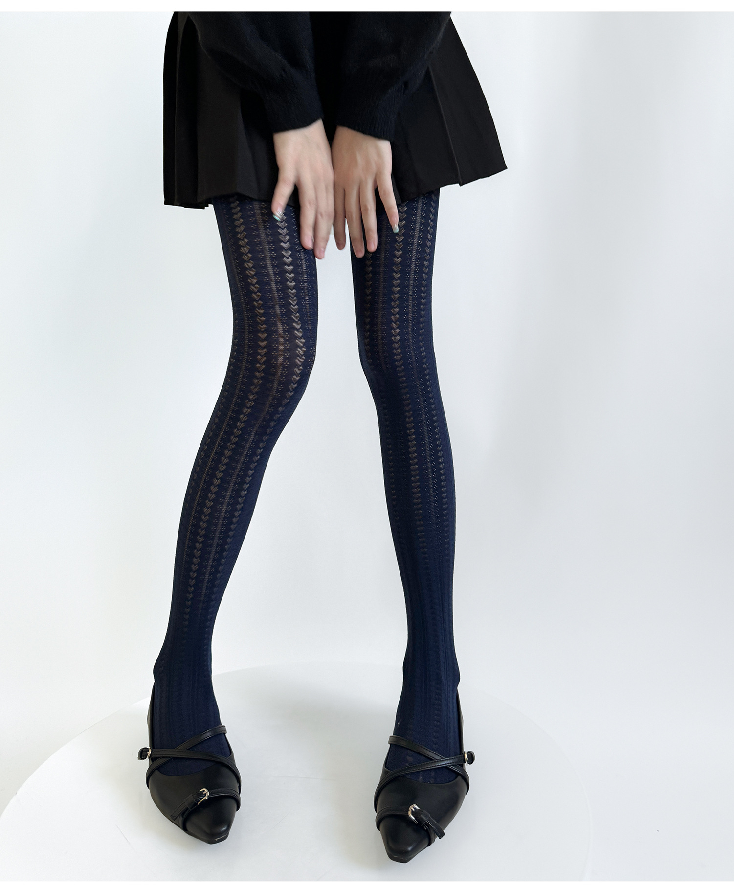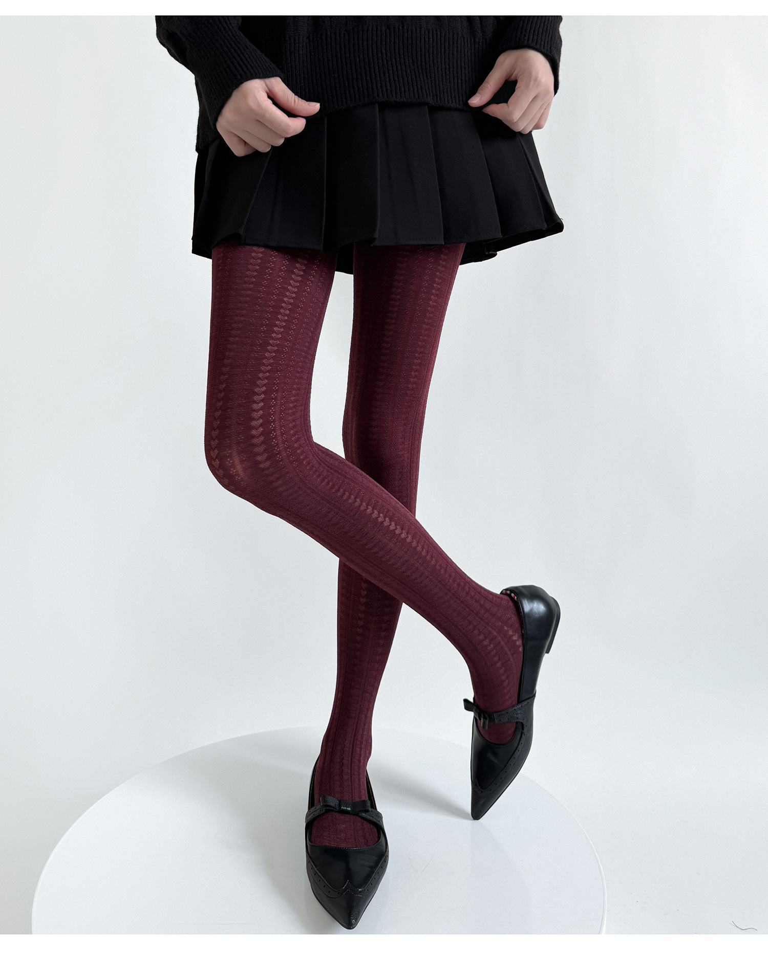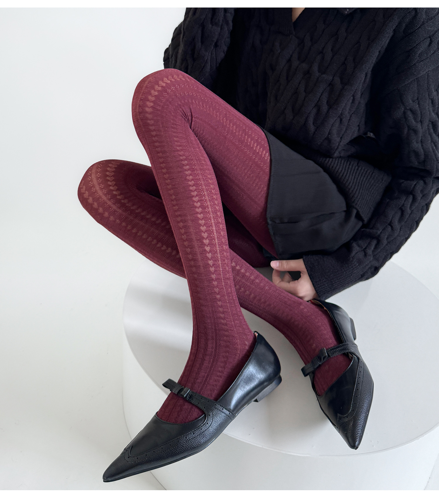 가을과 겨울 틈새 레트로 사랑 어두운 패턴 3 차원 수직 패턴 자카드 슬림베이스 양말 여성의 봄과 가을 단색 맞춤형 실크 스타킹스토어 가기
