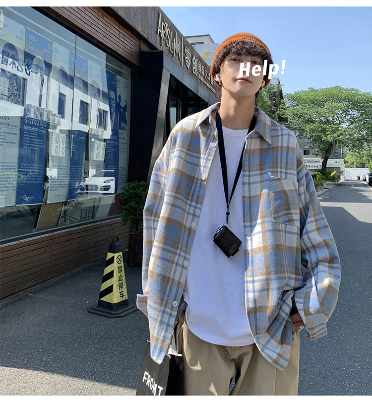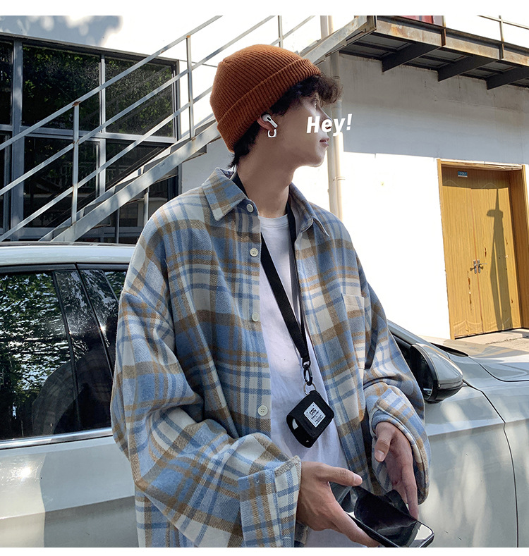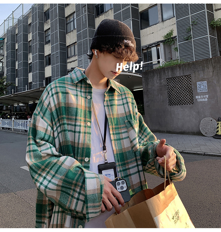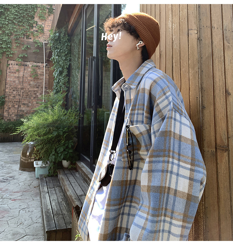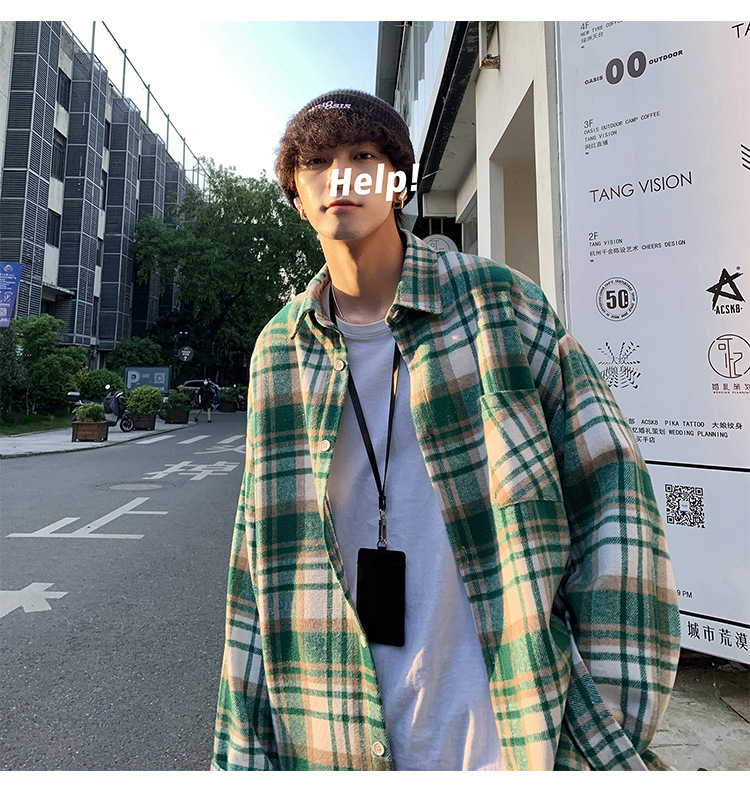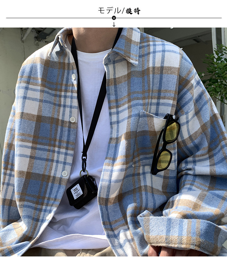 프로필 격자 무늬 셔츠 남자의 가을 새로운 미국 스타일 오버 사이즈 하이 엔드 느낌 새로운 모양의 느슨한 긴팔 셔츠 재킷스토어 가기