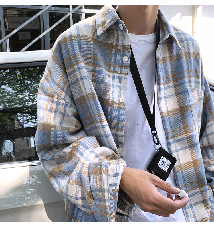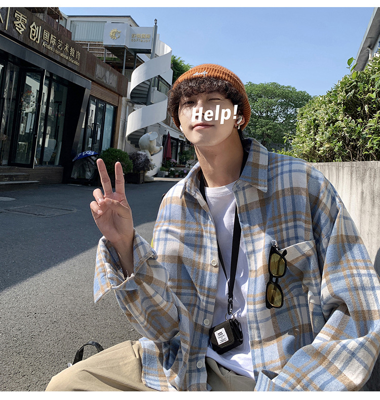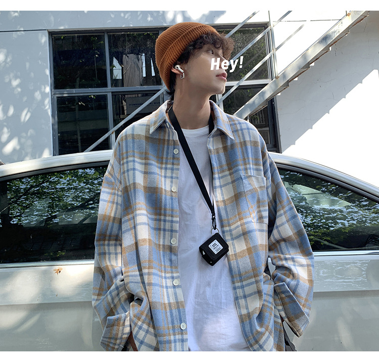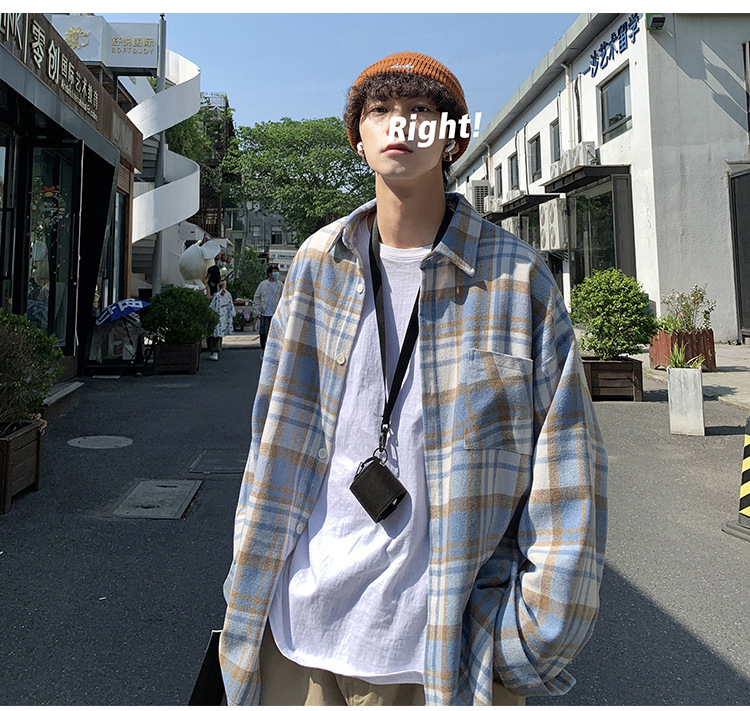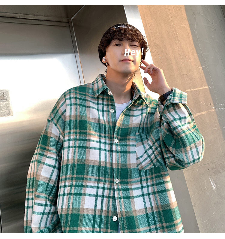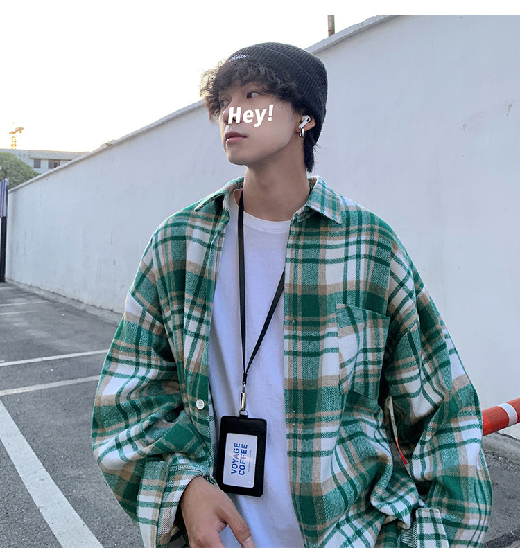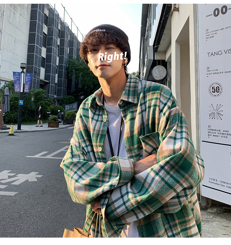 프로필 격자 무늬 셔츠 남자의 가을 새로운 미국 스타일 오버 사이즈 하이 엔드 느낌 새로운 모양의 느슨한 긴팔 셔츠 재킷스토어 가기