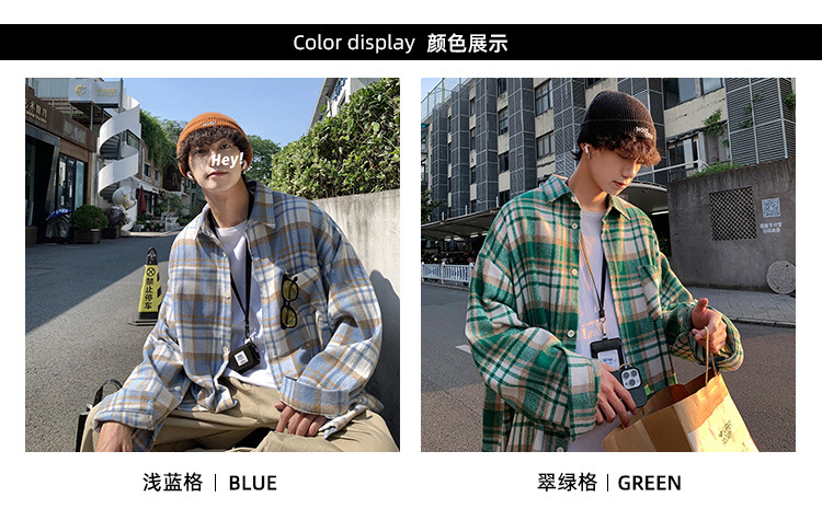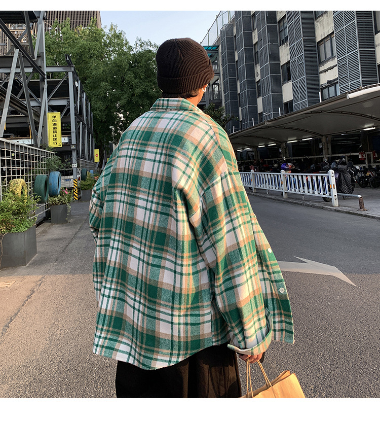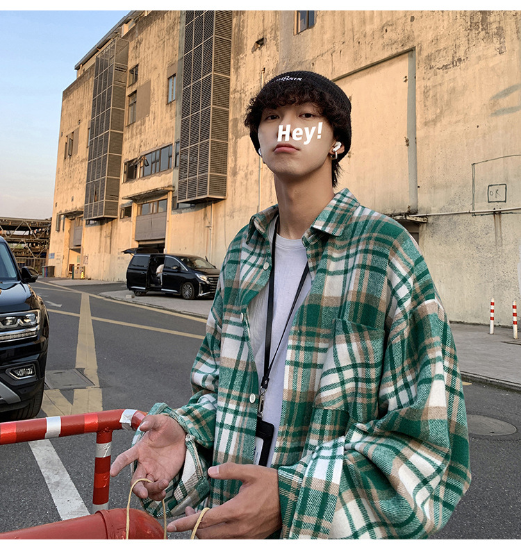 프로필 격자 무늬 셔츠 남자의 가을 새로운 미국 스타일 오버 사이즈 하이 엔드 느낌 새로운 모양의 느슨한 긴팔 셔츠 재킷