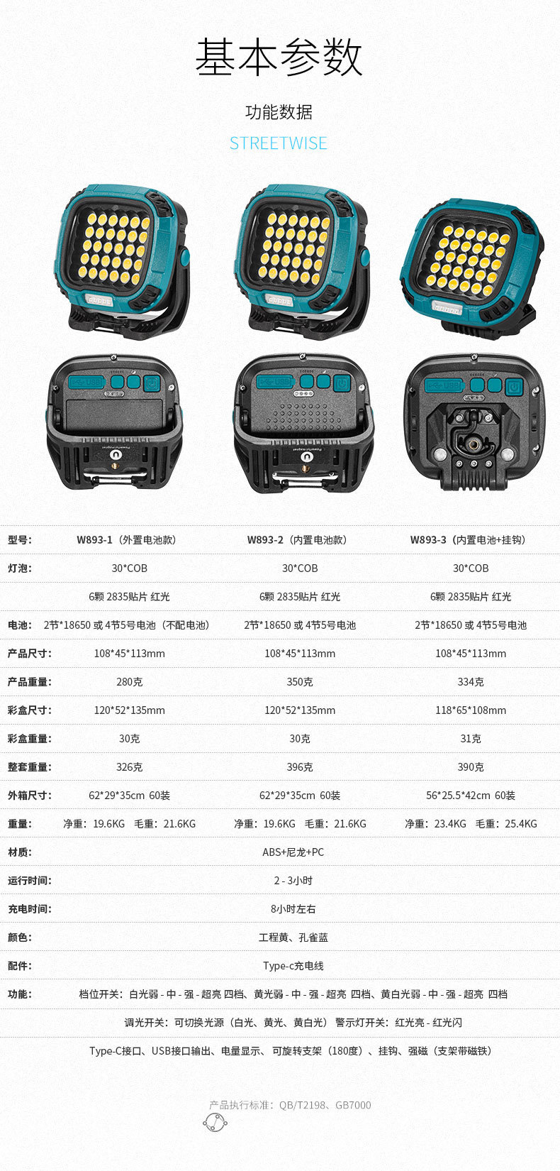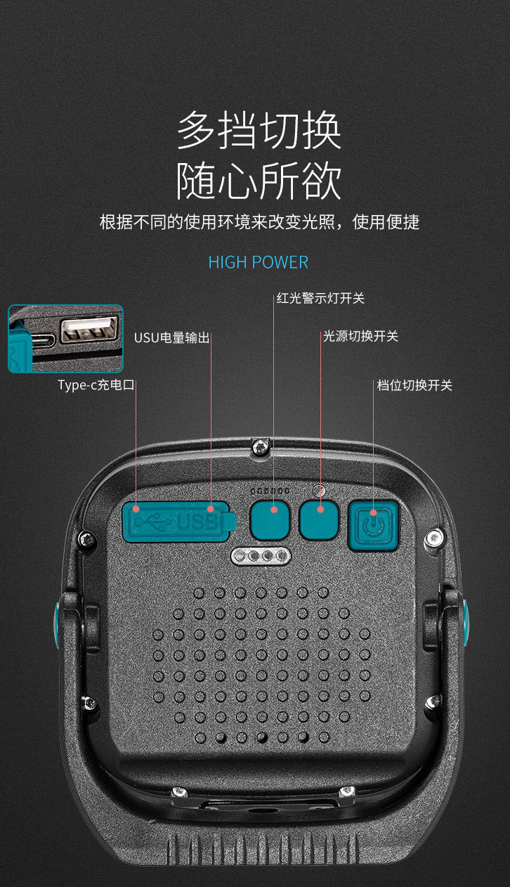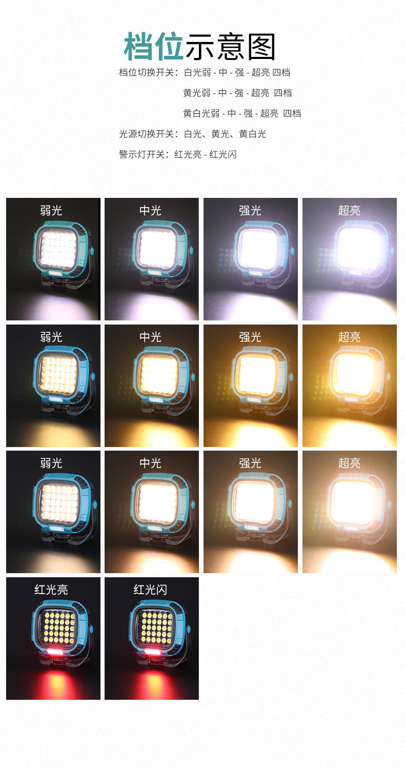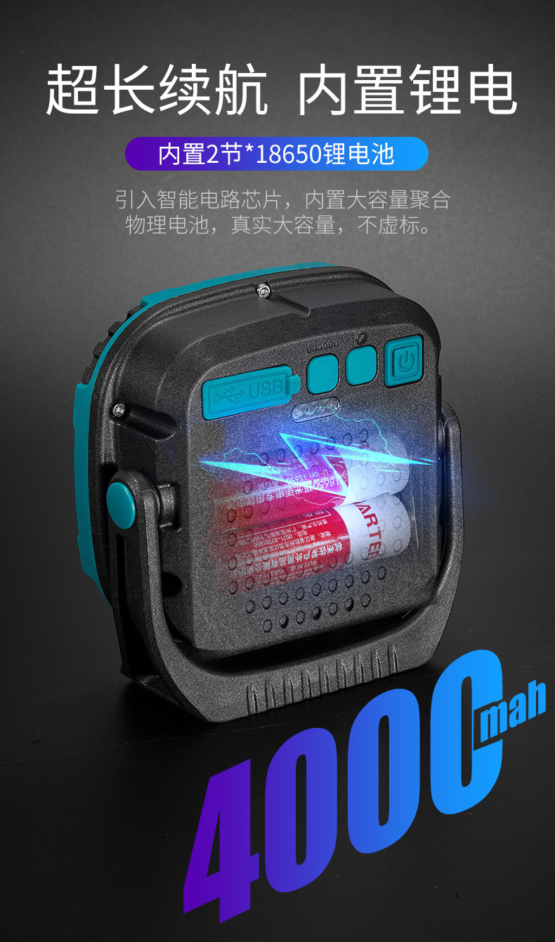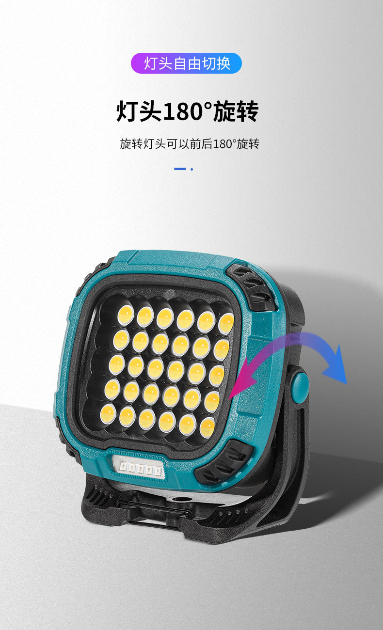 야외 캠핑 램프 강한 가벼운 캠핑 램프 휴대용 충전식 강한 자기 투광 조명 cob 작업 램프 야외 램프